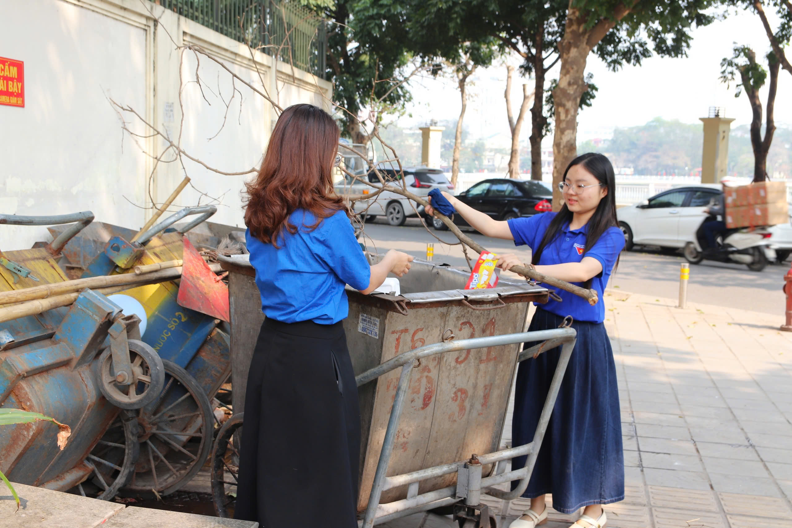 ✨Nhằm hưởng ứng phong trào xây dựng môi trường học đường “Sáng - Xanh - Sạch - Đẹp”, hưởng ứng chào mừng Cuộc bầu cử đại biểu Quốc hội khóa XVI và đại biểu Hội đồng nhân dân các cấp, Chi đoàn Trường THCS Dịch Vọng đã tổ chức ra quân tổng vệ sinh khuôn viên nhà trường.