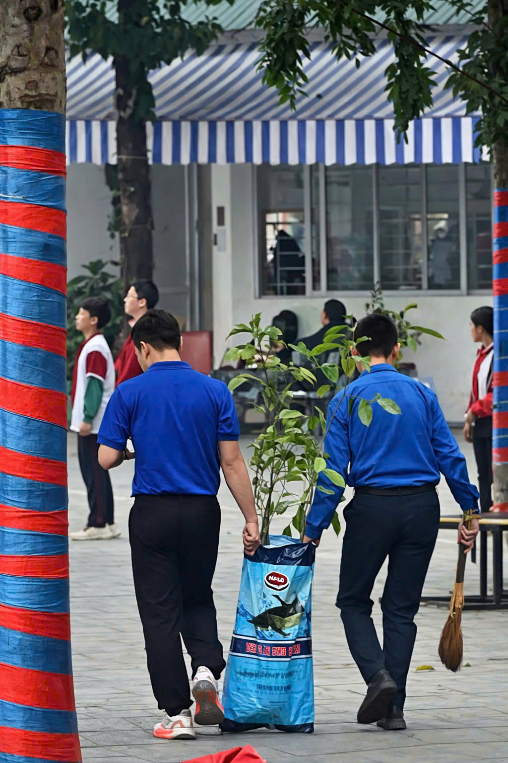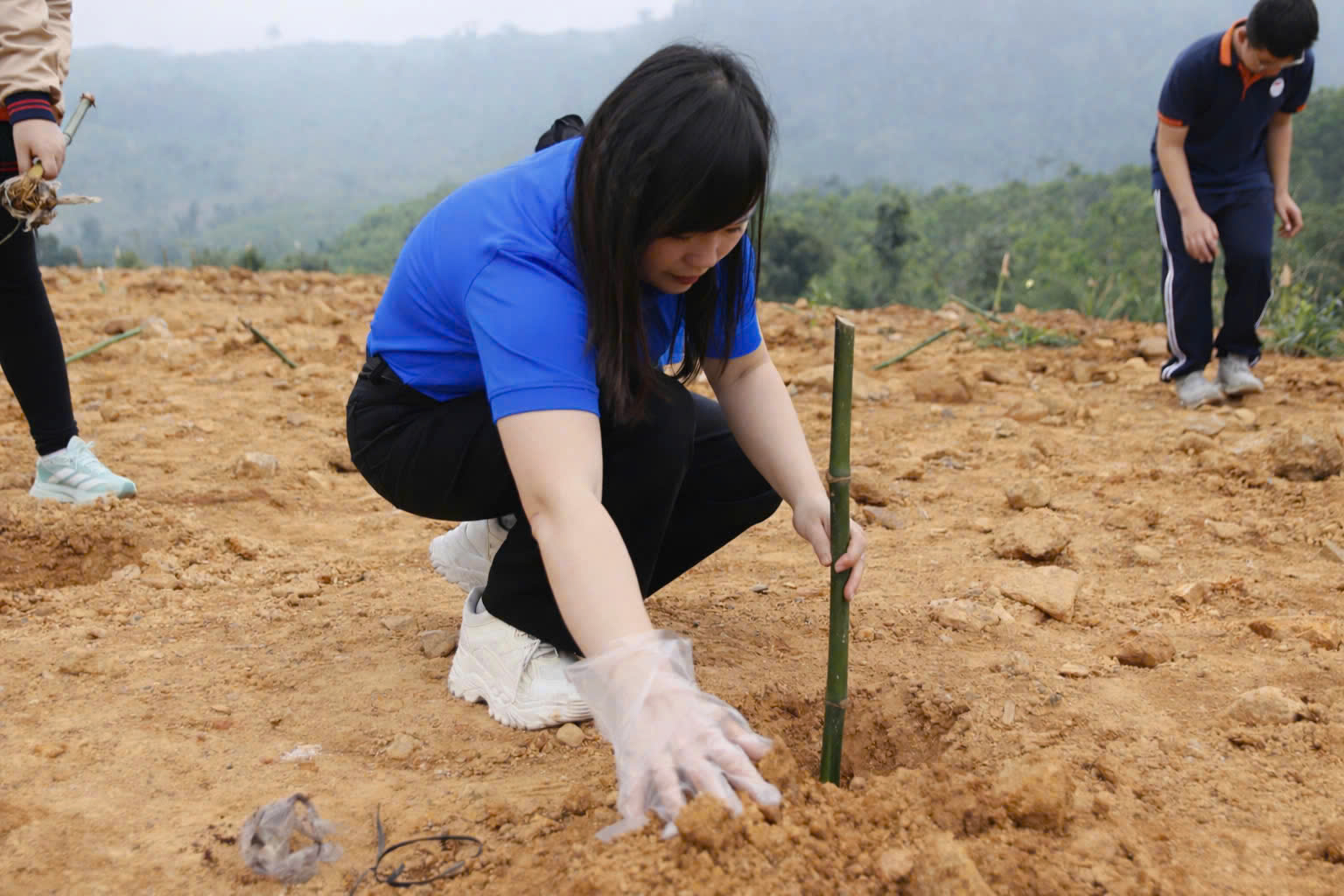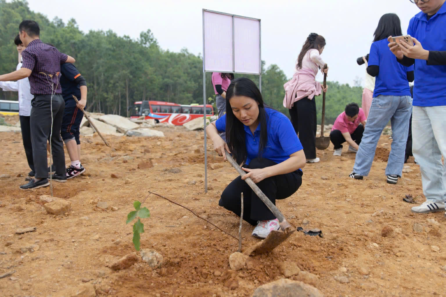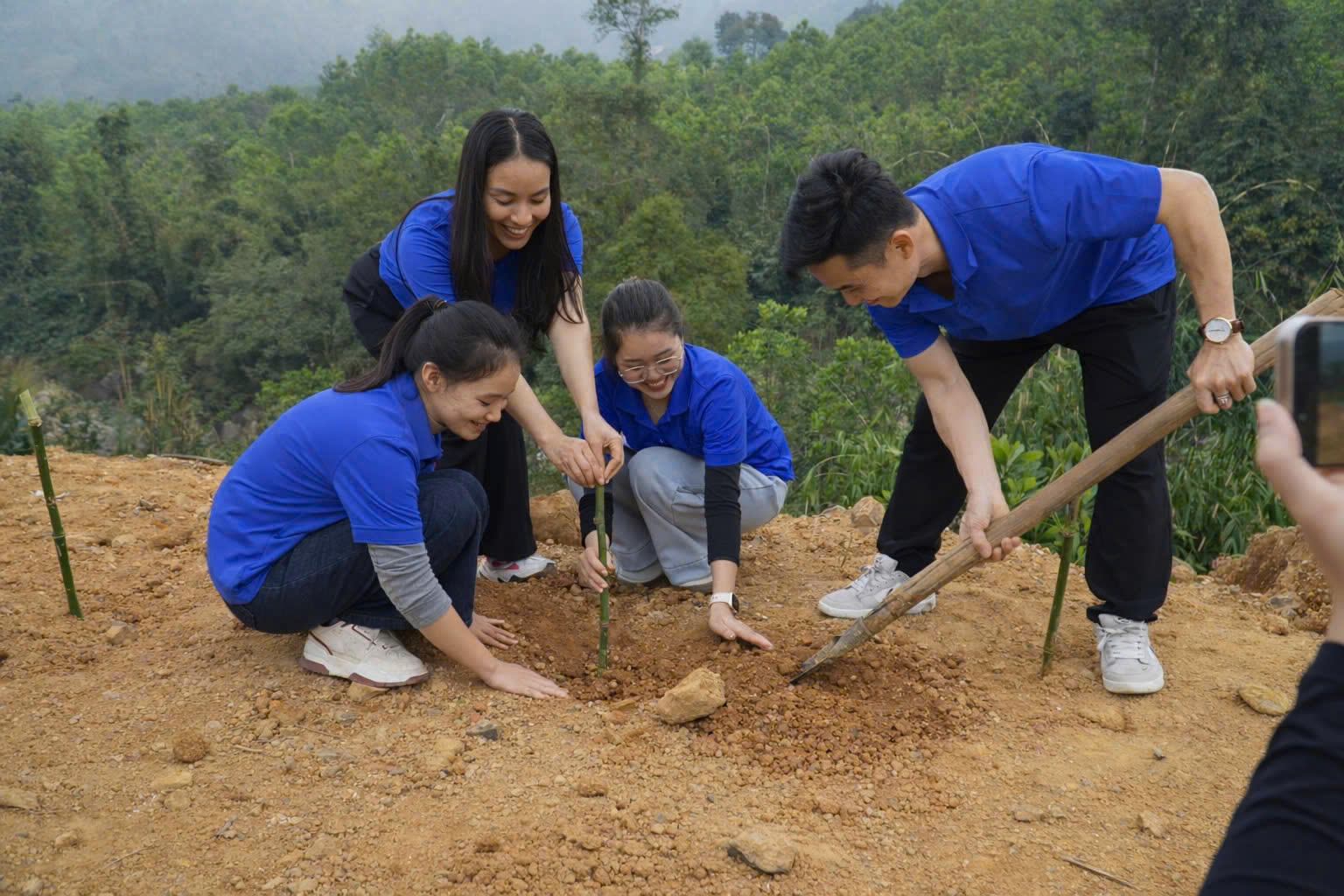 📍Các thầy cô giáo và các em học sinh đã cùng nhau ra quân, trực tiếp trồng các loại cây tre, cây dổi... Đây là những loại cây thiết yếu giúp: