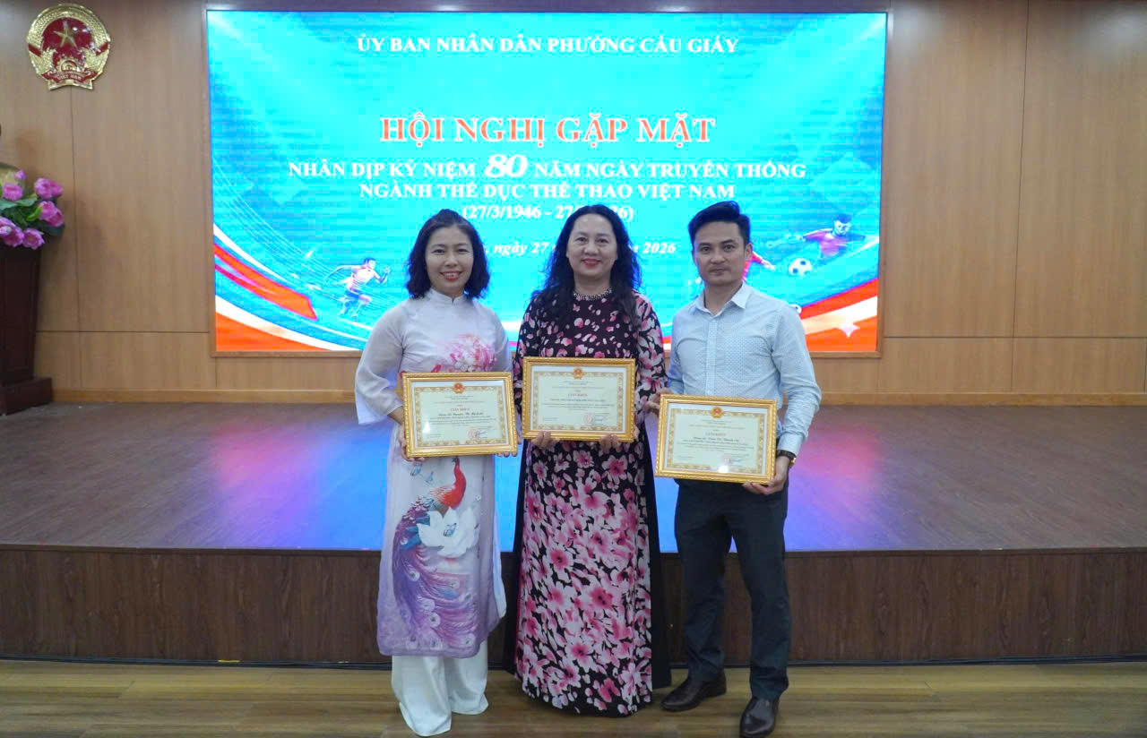 Chiều ngày 27/3/2026, Ủy ban nhân dân phường Cầu Giấy đã long trọng tổ chức Hội nghị gặp mặt “Nhân dịp kỉ niệm 80 năm Ngày truyền thống Ngành Thể dục, thể thao Việt Nam (27/3/1946 – 27/3/2026)”.