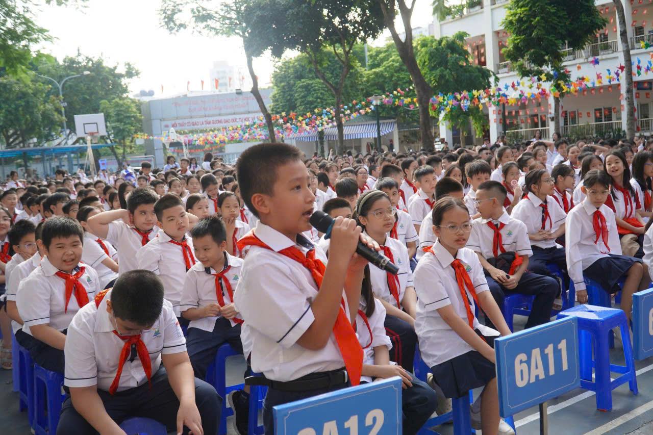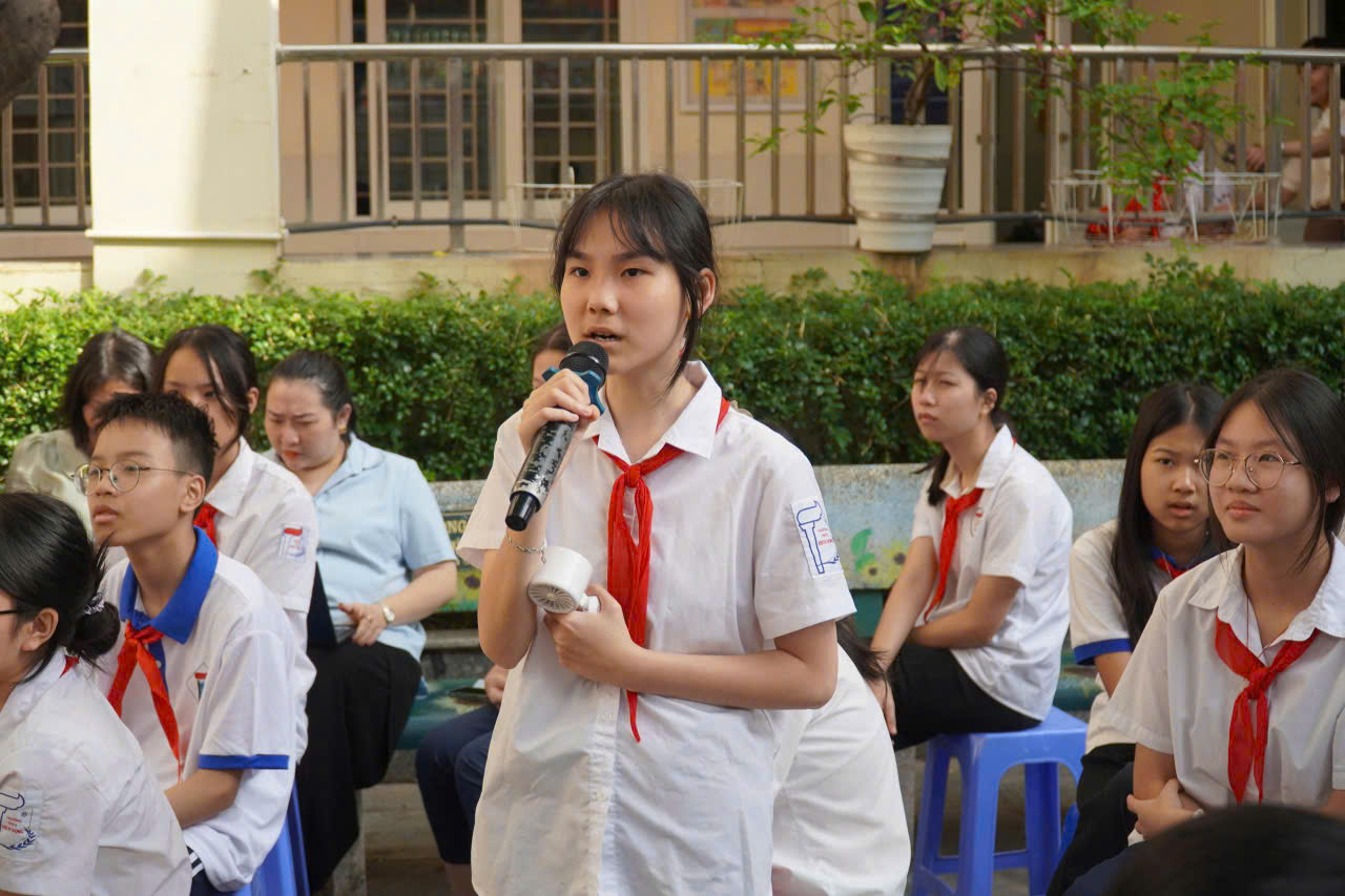 📚 Điểm sáng của chương trình là tiết mục giới thiệu tác phẩm “Mưa đỏ” – tiểu thuyết sử thi của nhà văn Chu Lai được học sinh lớp 7A2 thể hiện xuất sắc, tái hiện sinh động hình ảnh người lính trẻ anh dũng trong kháng chiến. Không chỉ là bài học lịch sử, “Mưa đỏ” còn là lời nhắn gửi đầy cảm hứng về lòng quả cảm, lý tưởng sống và khát vọng vươn lên của thế hệ hôm nay.