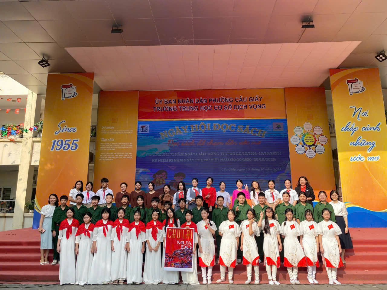 Nhân dịp kỷ niệm 71 năm Ngày Giải phóng Thủ đô (10/10/1954 – 10/10/2025) và 95 năm Ngày thành lập Hội Liên hiệp Phụ nữ Việt Nam (20/10/1930 – 20/10/2025), Trường THCS Dịch Vọng tổ chức Ngày hội đọc sách với chủ đề: “Đọc sách để chạm đến ước mơ”. Sự kiện là không gian tri thức, là nơi khơi nguồn cảm hứng và thắp sáng những ước mơ đẹp đẽ trong trái tim các em học sinh.