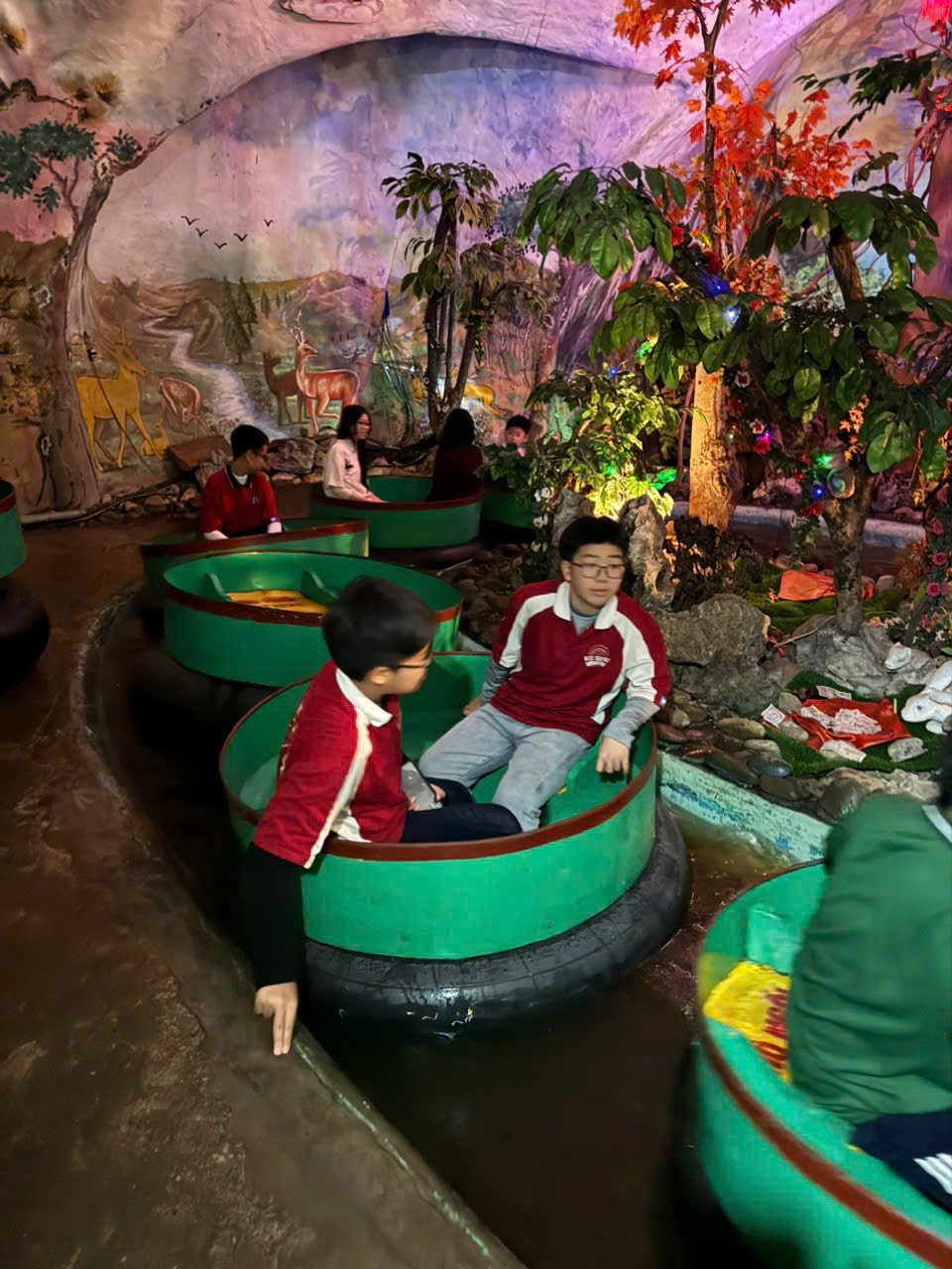 🌺 Trong chuyến đi, các em rất hào hứng khi được tham quan nhiều điểm đến đặc sắc như động Huyền Thoại Cung, động Thế Giới Cổ Tích, động Chuyện Tình Ba Cây Thông, khu tâm linh Chùa Thiêng Thác Vàng, cùng vườn động vật hoang dã. Bên cạnh đó, các em học sinh đã có những giây phút vô cùng vui vẻ, phấn khích khi được tham gia nhiều trò chơi như tàu điện xoáy 3 vòng, xe điện đụng, xem phim 7D, săn thú trên rừng, cùng một số trò vận động mang cảm giác mạnh khác.
