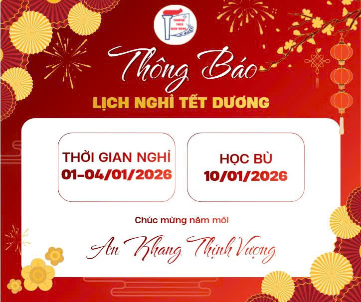 Nhà trường thông báo lịch nghỉ Tết Dương Lịch như sau: