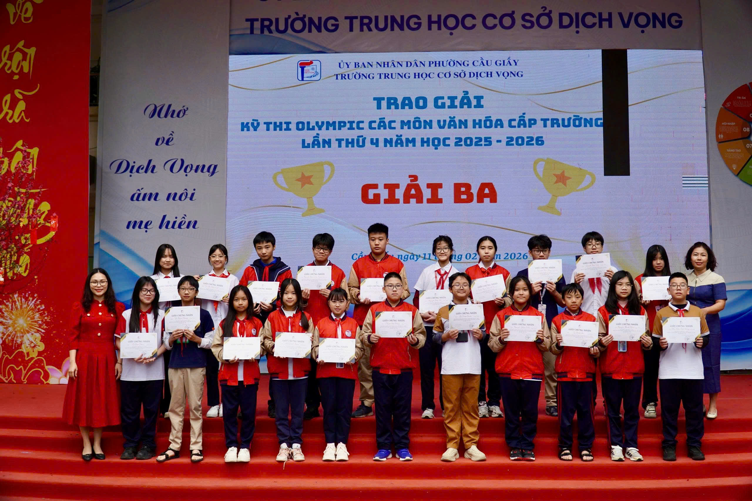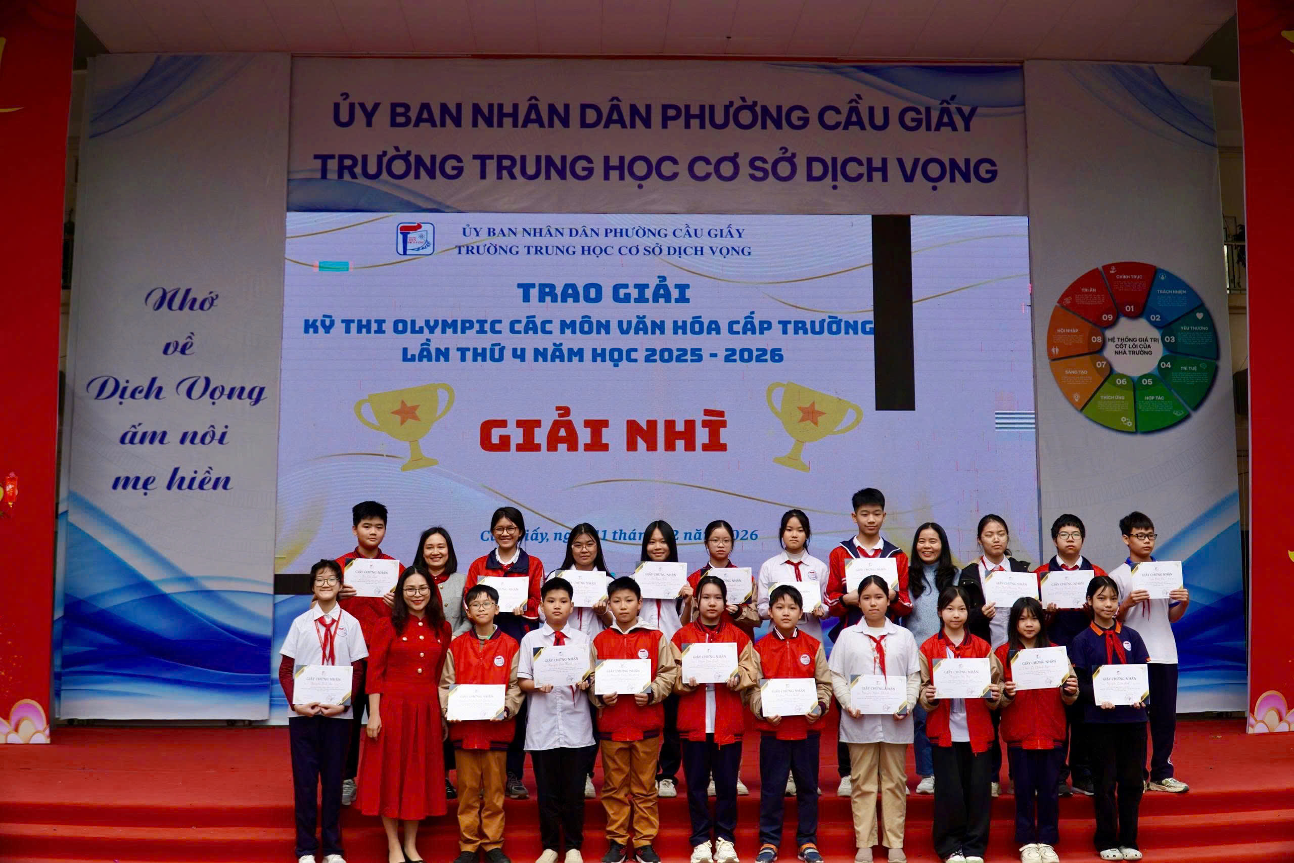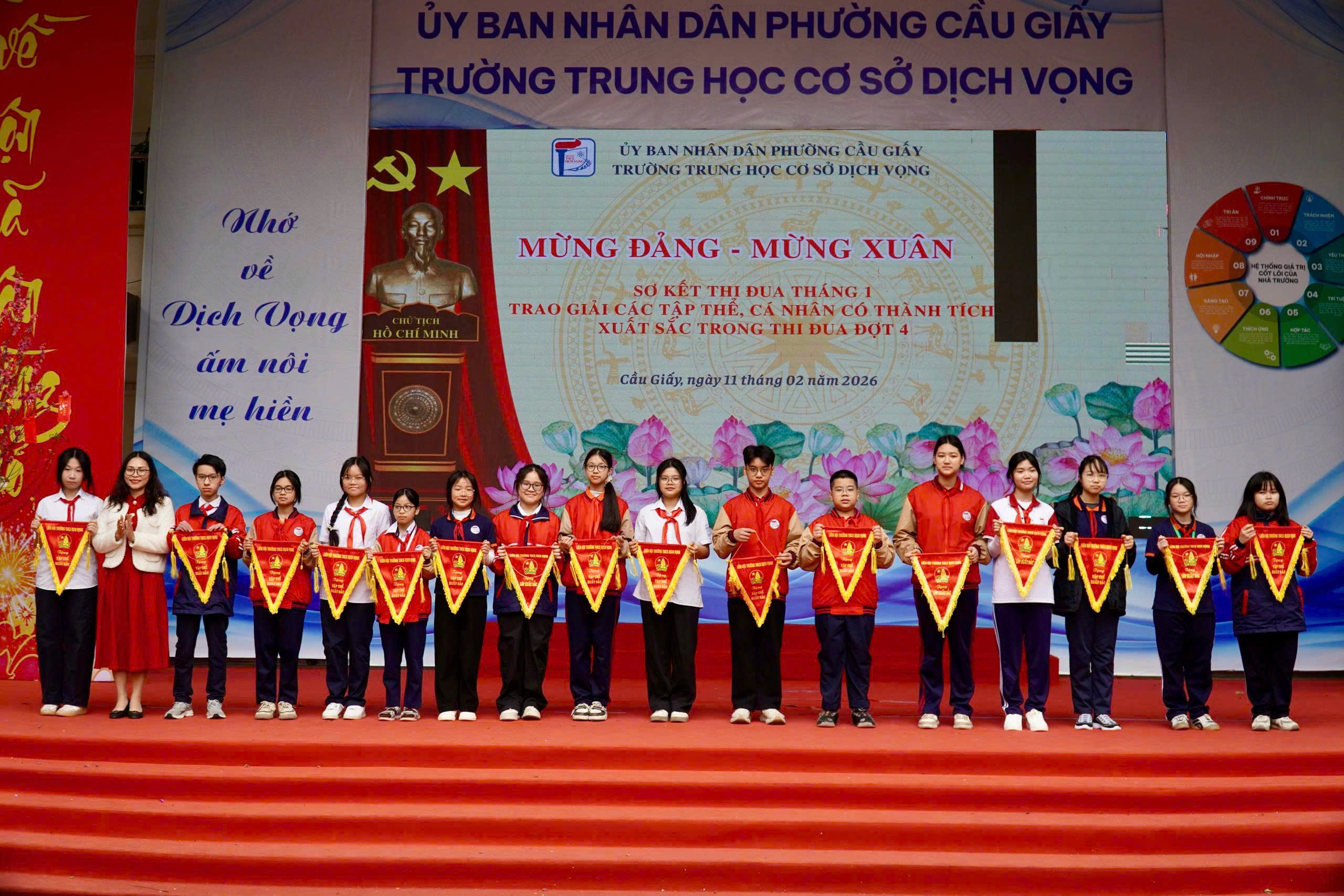 🎉 Trong không khí rộn ràng của những ngày giáp Tết, khi sắc xuân đang gõ cửa từng lớp học, thầy và trò Trường THCS Dịch Vọng cùng hòa chung niềm vui trong chương trình “Mừng Đảng – Mừng Xuân” – một dấu🌸 MỪNG ĐẢNG – MỪNG XUÂN 2026: KHƠI DẬY KHÁT VỌNG – LAN TỎA NIỀM TIN🌸 mốc ý nghĩa khép lại chặng đường nỗ lực và mở ra hành trình mới đầy khát vọng.