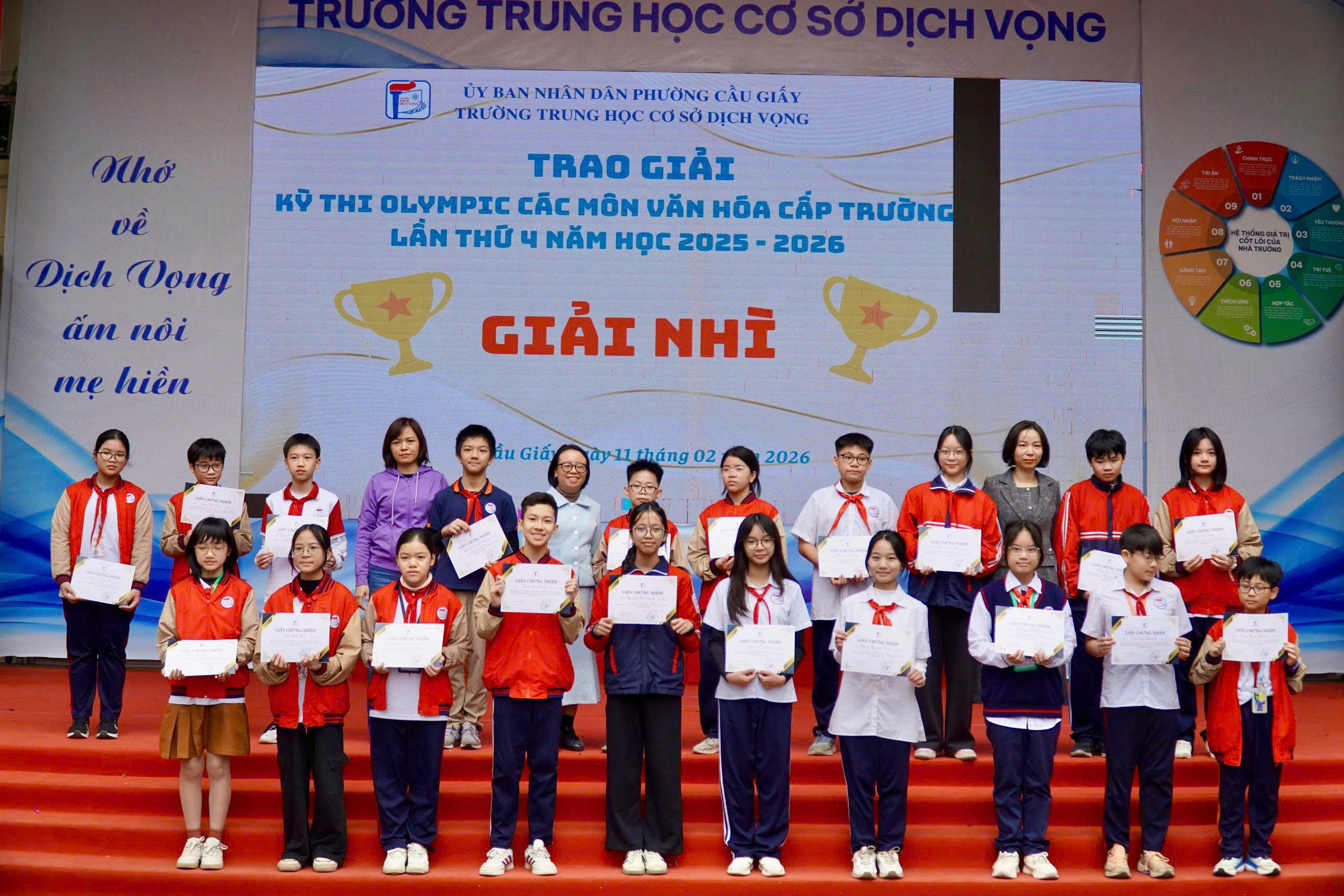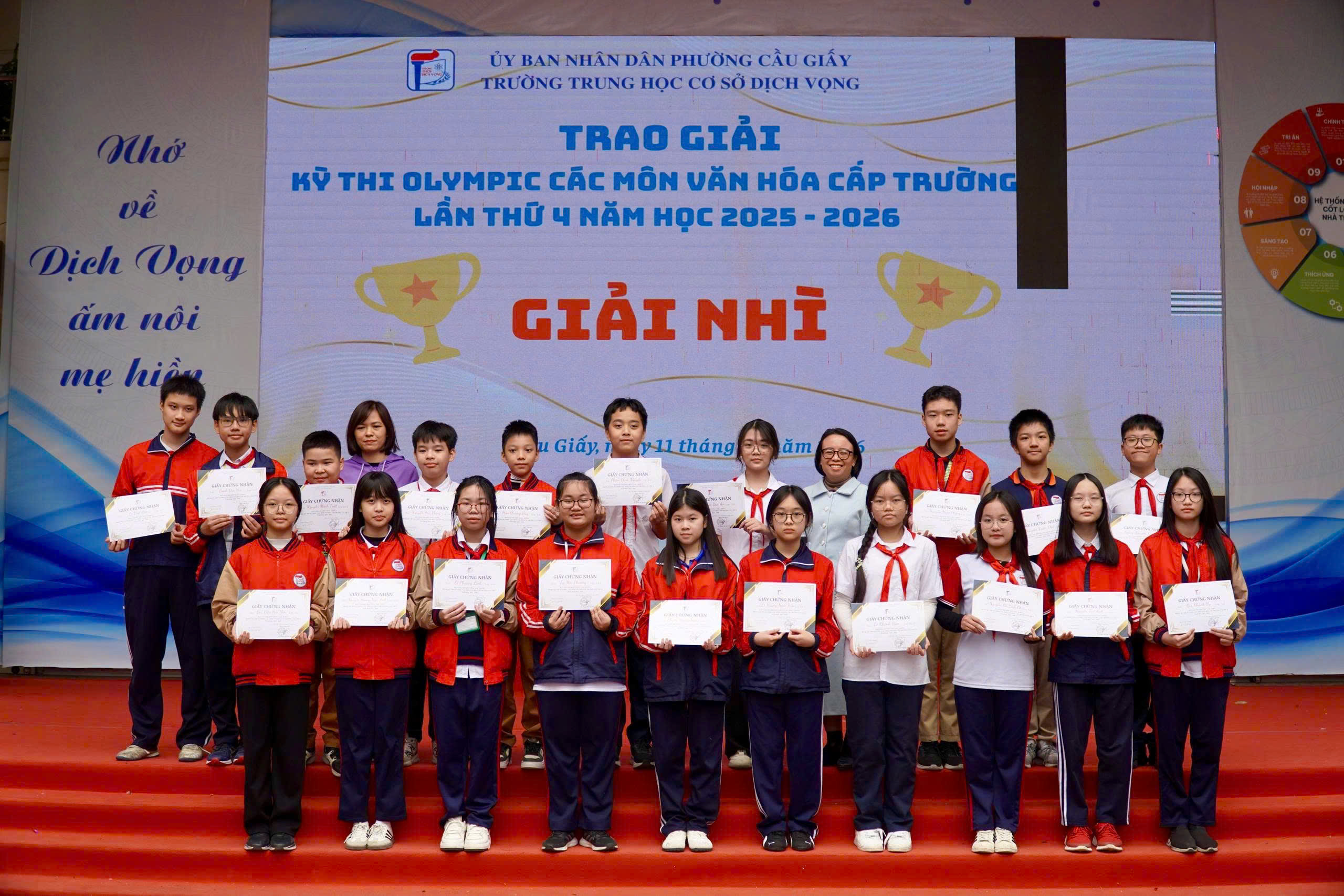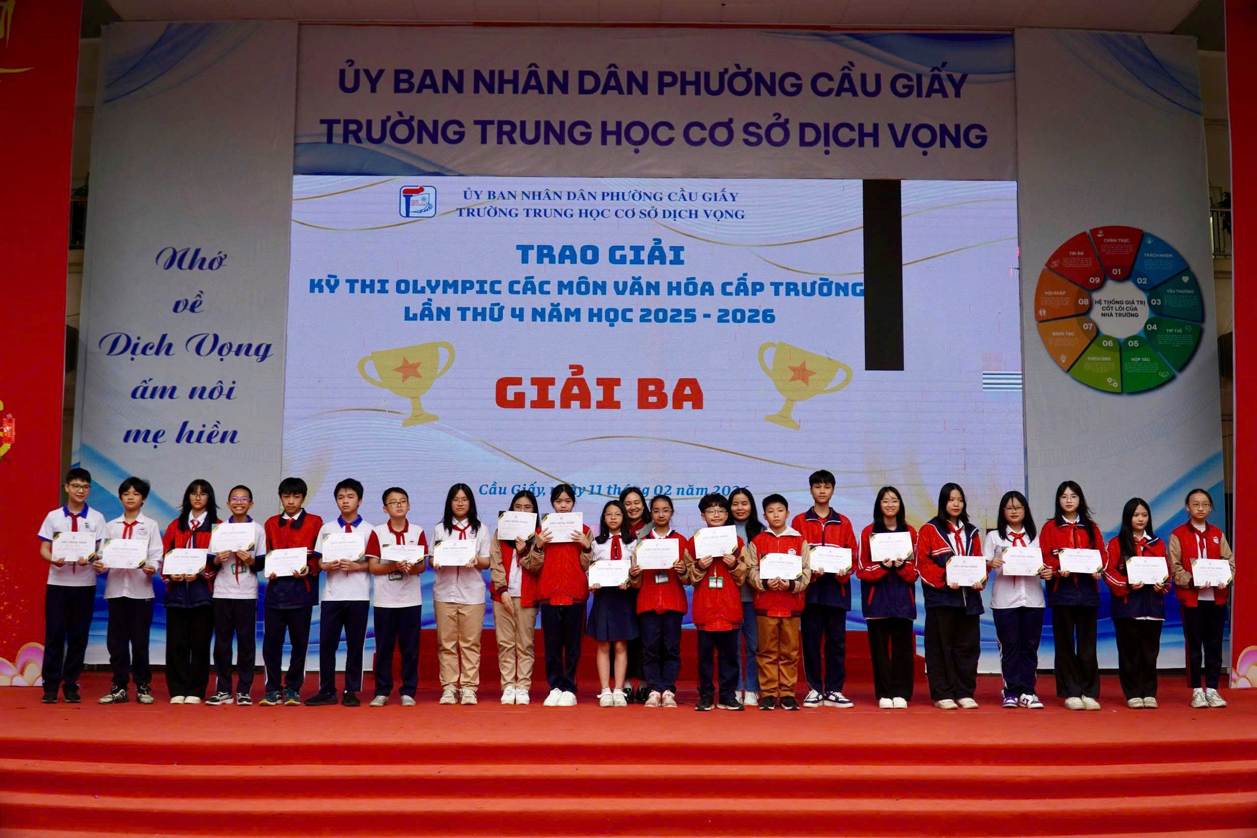 🎉 Trong không khí rộn ràng của những ngày giáp Tết, khi sắc xuân đang gõ cửa từng lớp học, thầy và trò Trường THCS Dịch Vọng cùng hòa chung niềm vui trong chương trình “Mừng Đảng – Mừng Xuân” – một dấu🌸 MỪNG ĐẢNG – MỪNG XUÂN 2026: KHƠI DẬY KHÁT VỌNG – LAN TỎA NIỀM TIN🌸 mốc ý nghĩa khép lại chặng đường nỗ lực và mở ra hành trình mới đầy khát vọng.