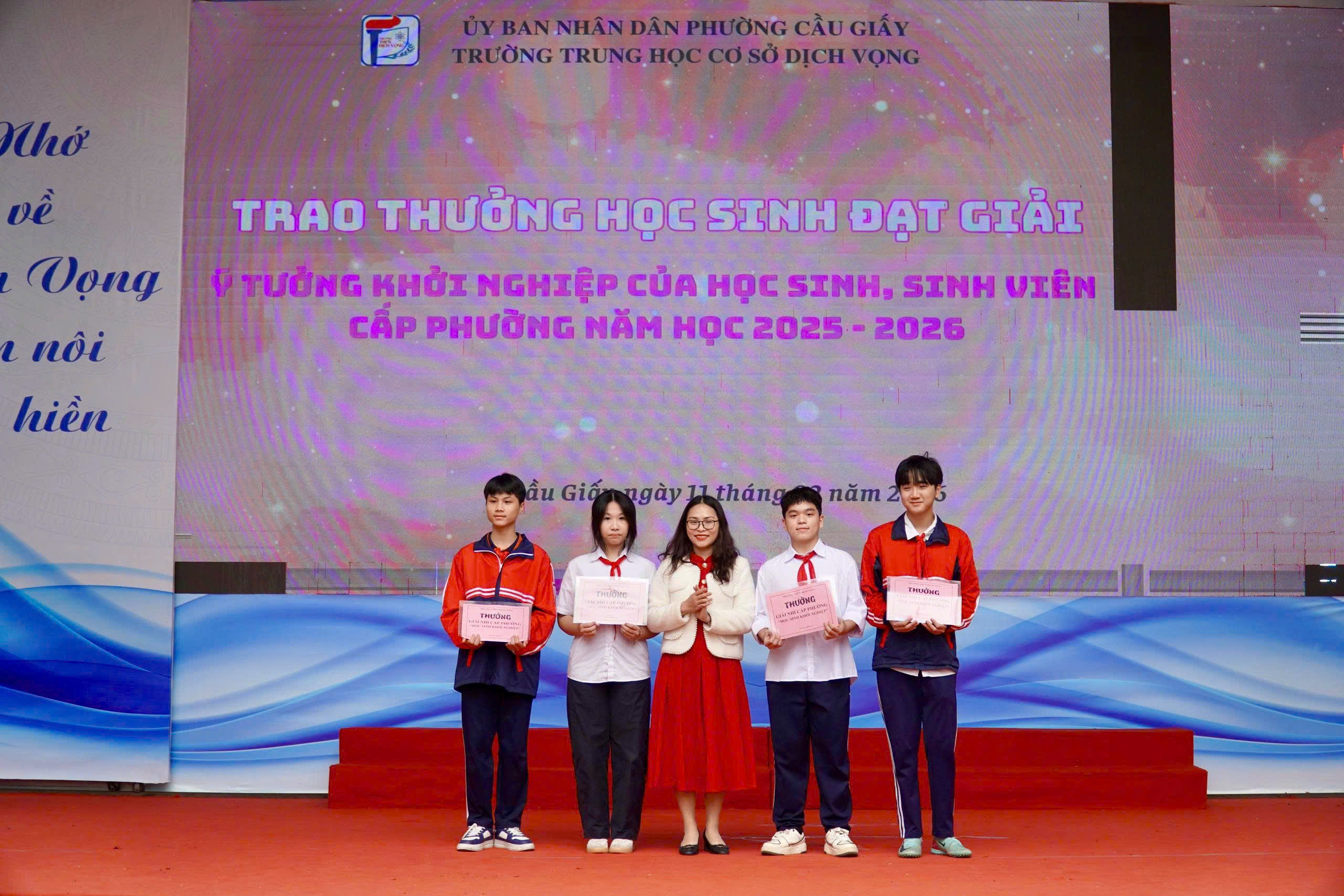 💡 Tinh thần sáng tạo của tuổi trẻ Dịch Vọng tiếp tục được khẳng định khi học sinh đạt giải Ý tưởng khởi nghiệp cấp phường được xướng tên. Đó không chỉ là một giải thưởng, mà còn là minh chứng cho bản lĩnh, tư duy đổi mới và khát vọng vươn xa của thế hệ học sinh hôm nay.