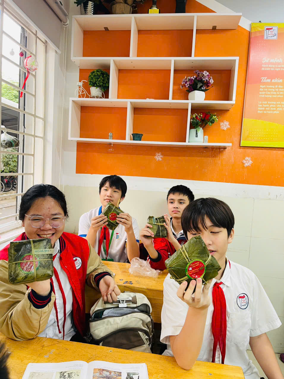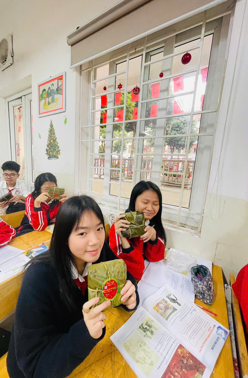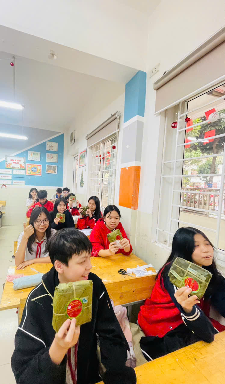 Niềm vui ngày Tết giản dị mà ấm áp – ánh mắt rạng rỡ, nụ cười hồn nhiên của các em học sinh khi cùng nhau thưởng thức bánh chưng truyền thống. Tết đến thật gần trong từng khoảnh khắc yêu thương tại Trường THCS Dịch Vọng.