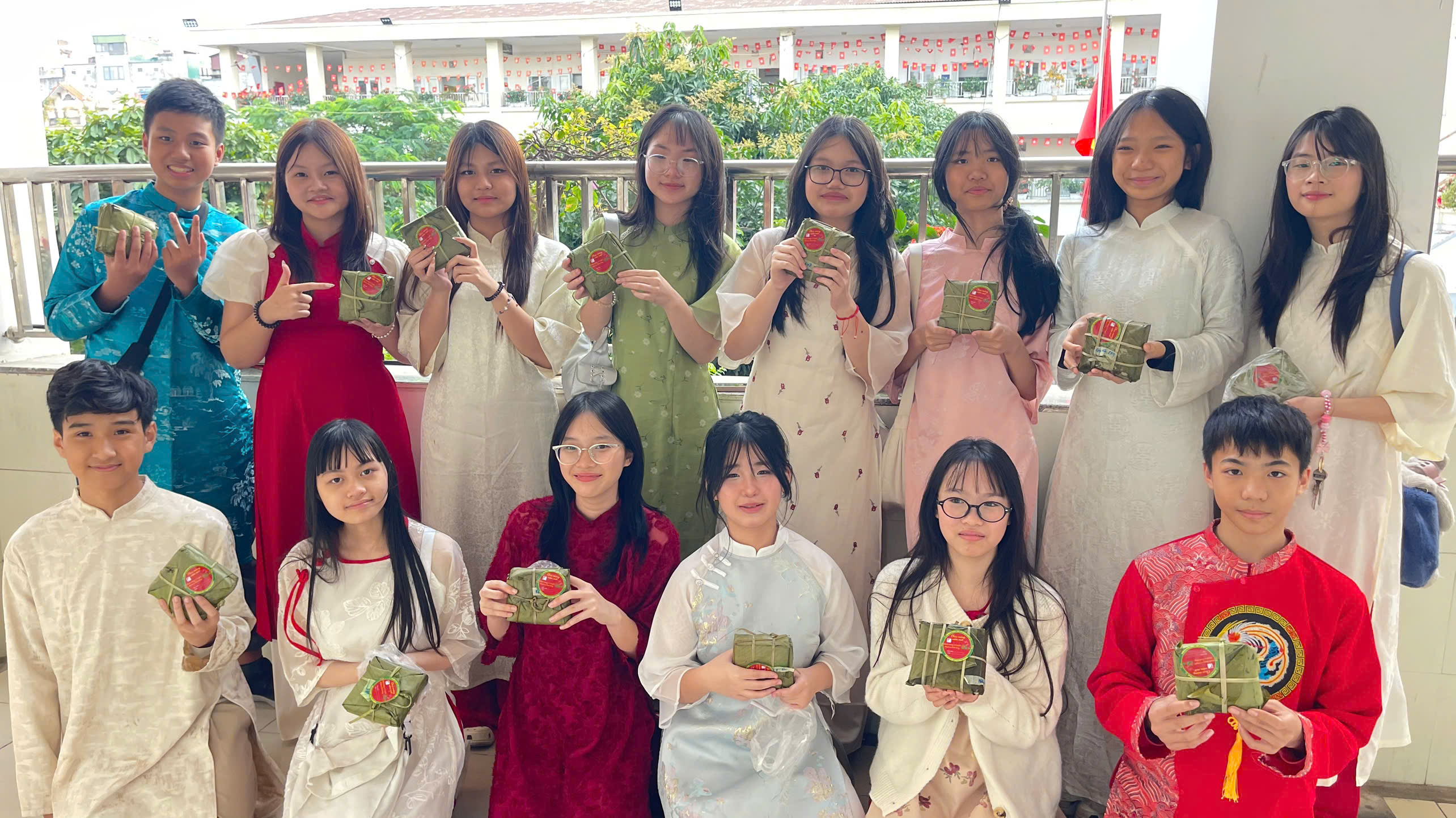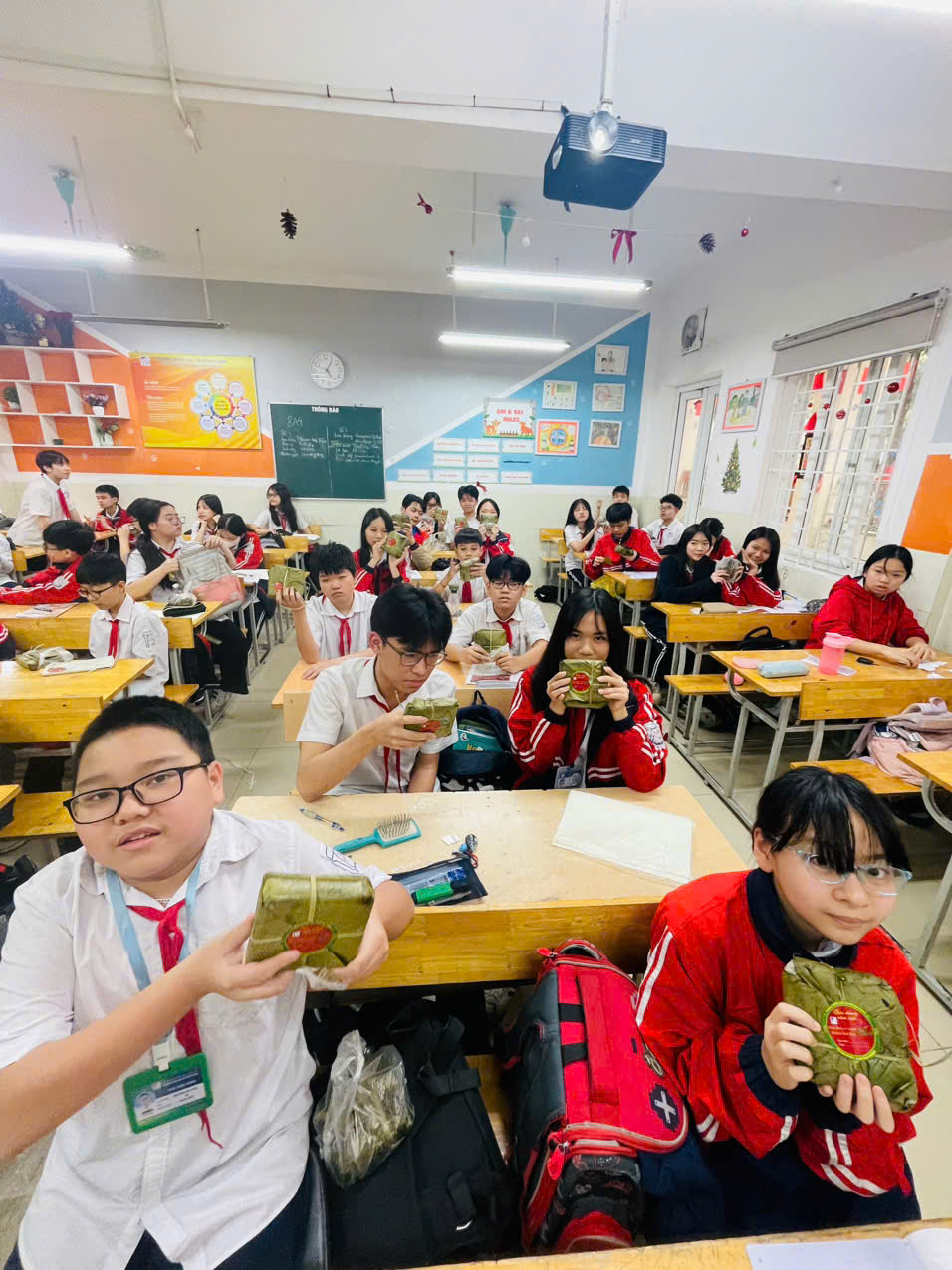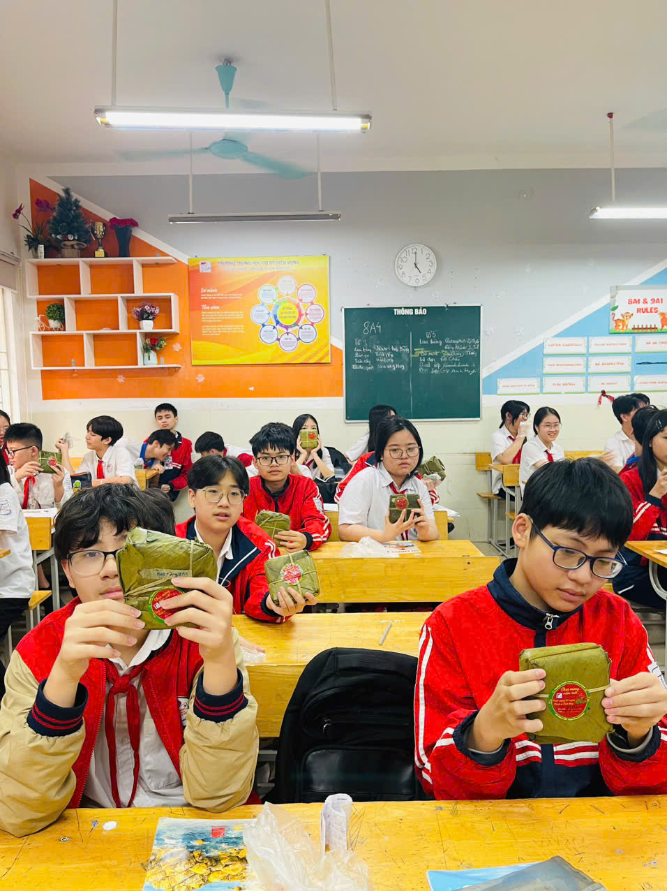 Niềm vui ngày Tết giản dị mà ấm áp – ánh mắt rạng rỡ, nụ cười hồn nhiên của các em học sinh khi cùng nhau thưởng thức bánh chưng truyền thống. Tết đến thật gần trong từng khoảnh khắc yêu thương tại Trường THCS Dịch Vọng.