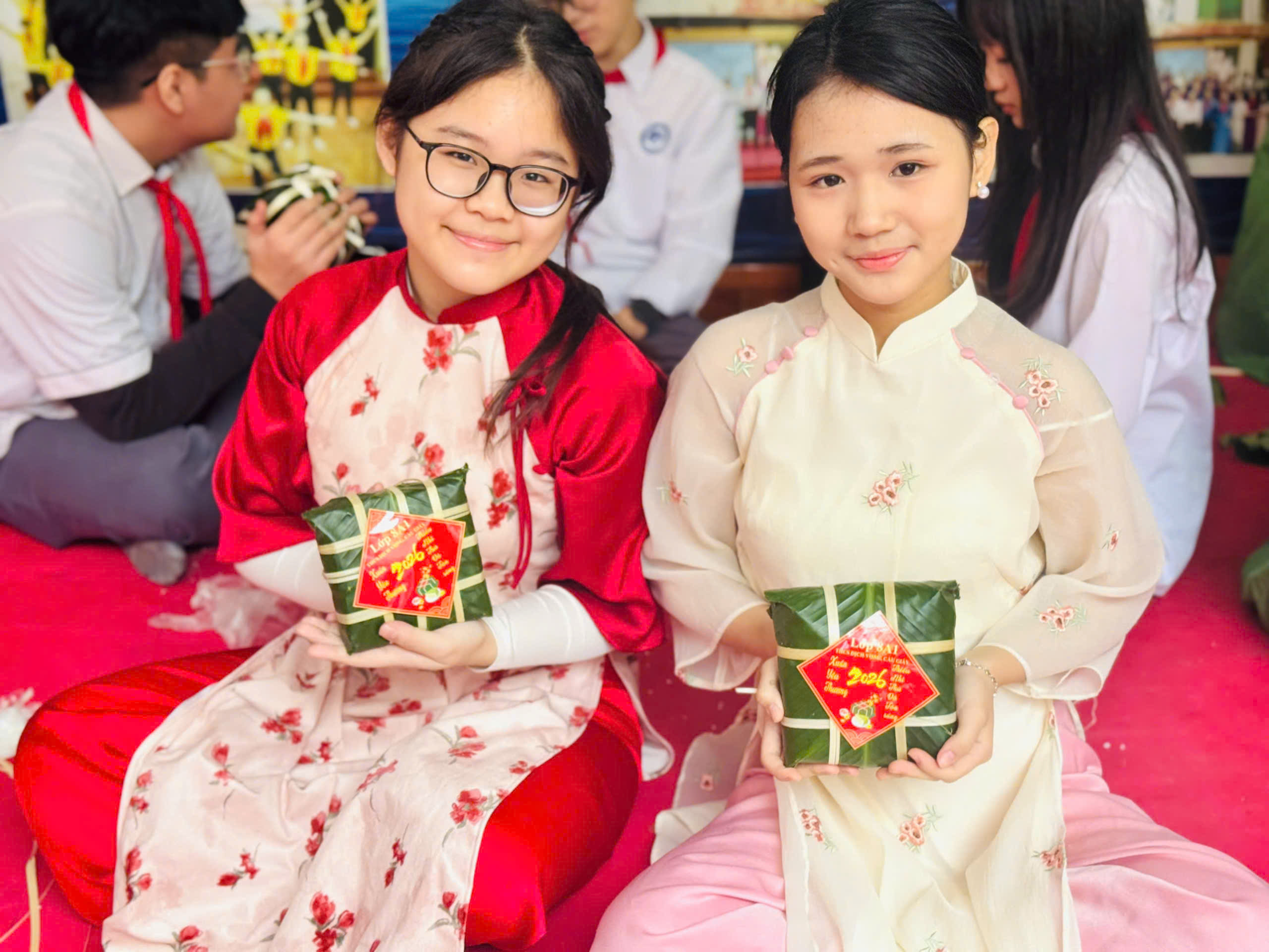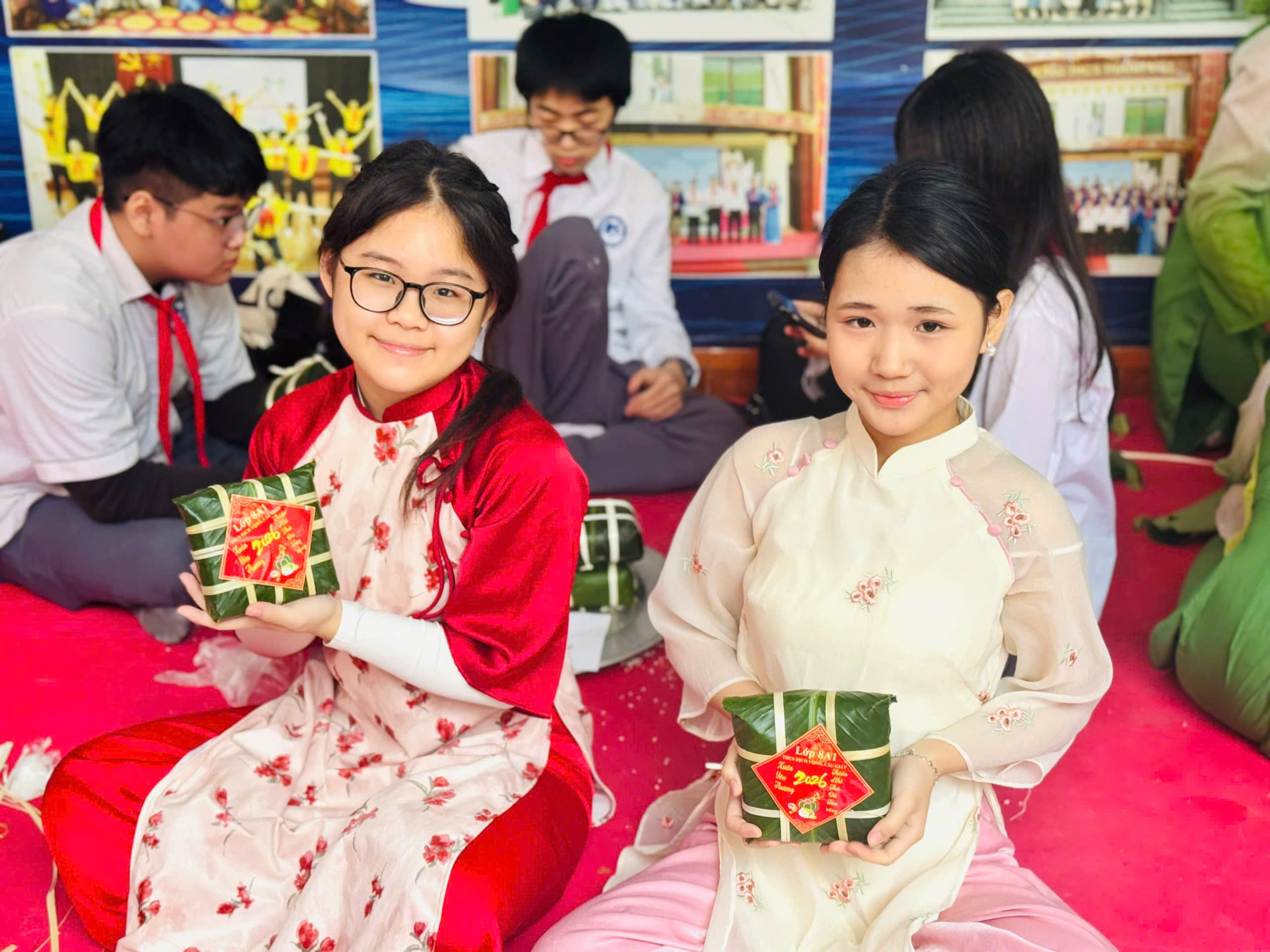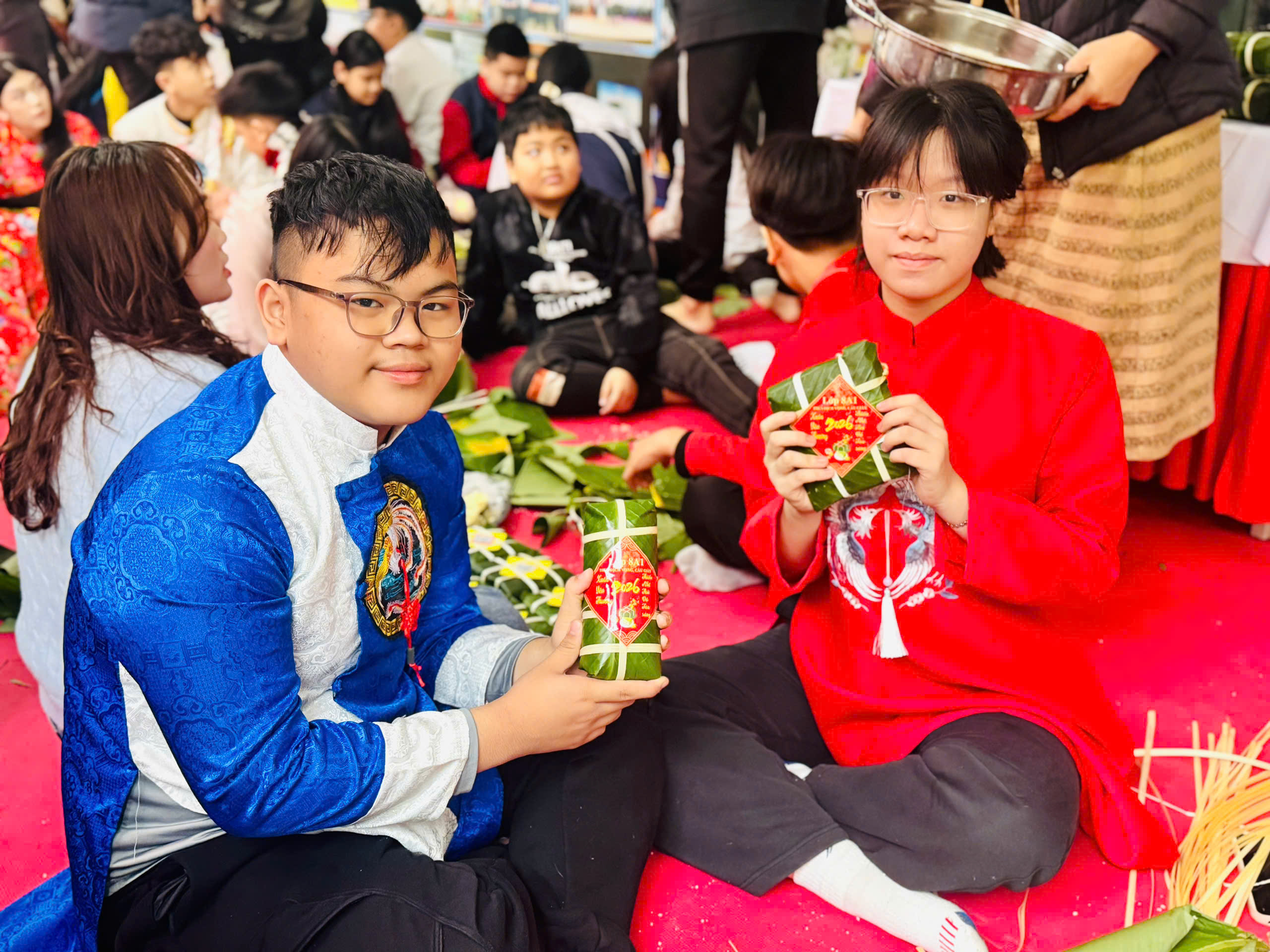 Đại diện cho nhà trường, các em học sinh lớp 8A1 đã tham gia cuộc thi với tinh thần hào hứng, tự tin và khéo léo. Dưới đôi bàn tay tỉ mỉ, những chiếc bánh chưng vuông vắn, đẹp mắt không chỉ thể hiện sự khéo tay mà còn gửi gắm tình yêu với nét đẹp văn hóa truyền thống dân tộc.