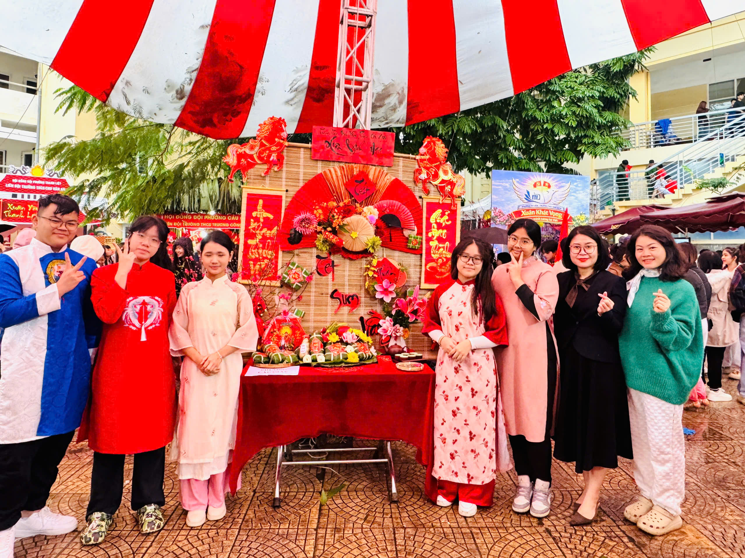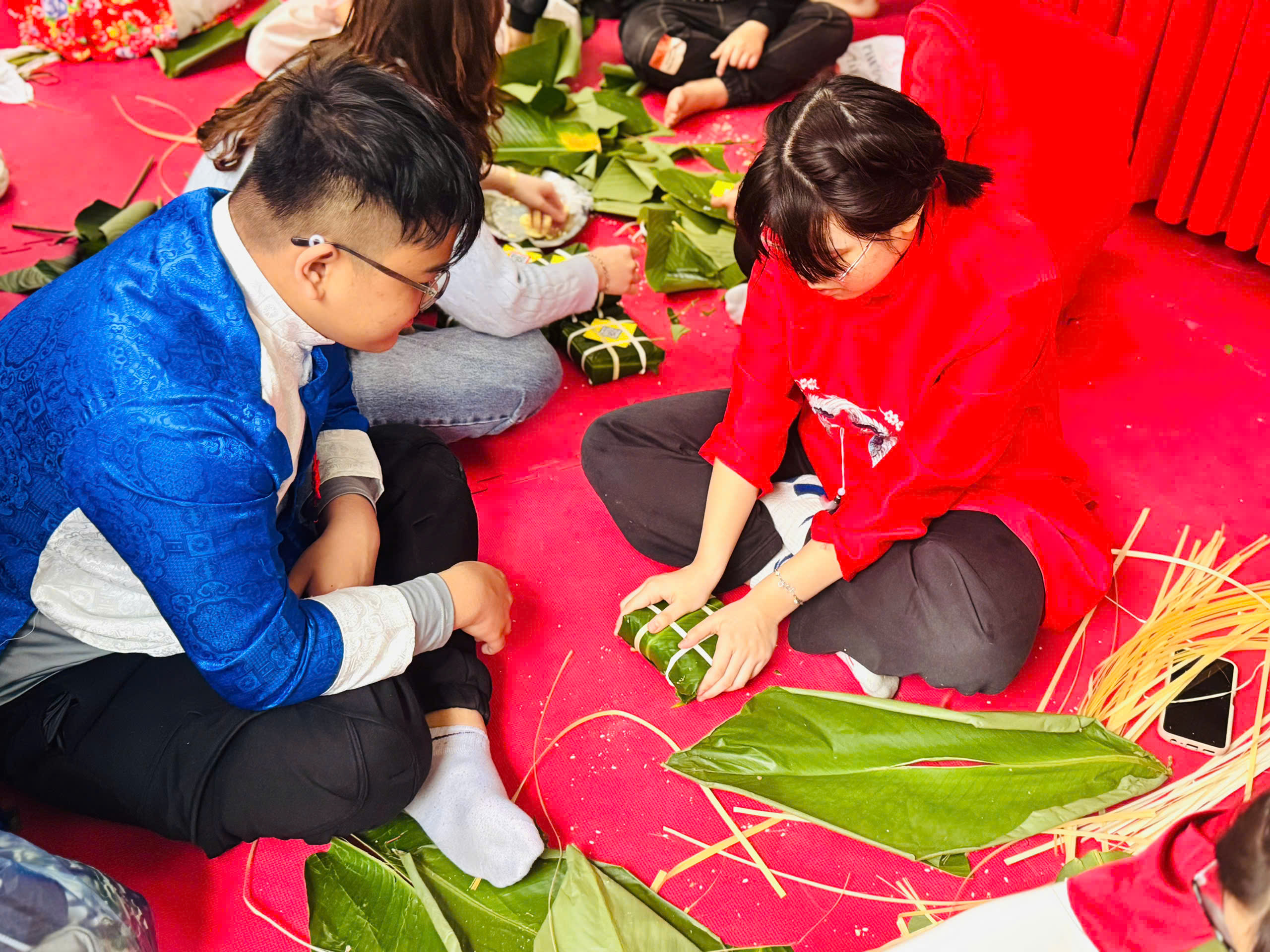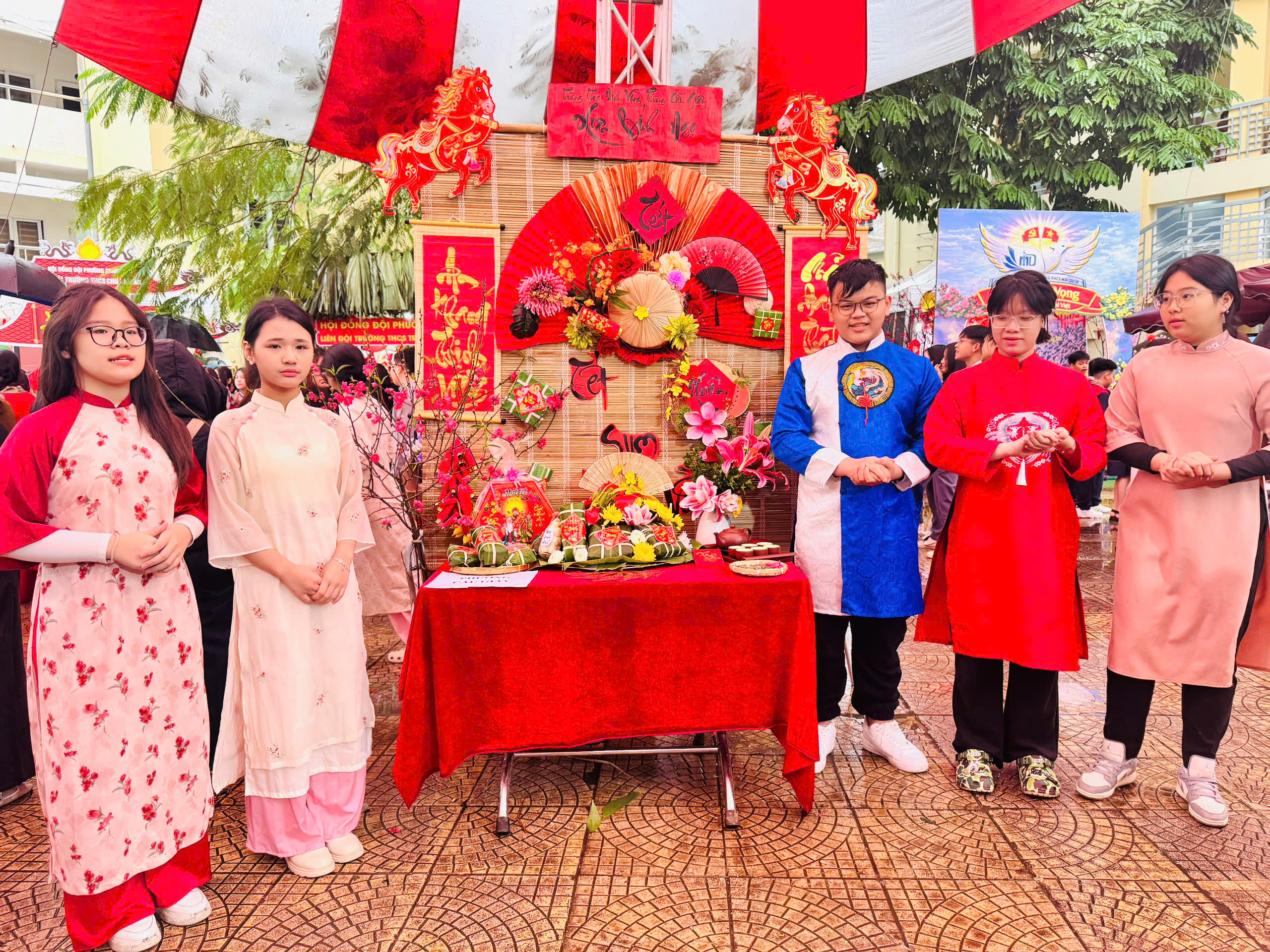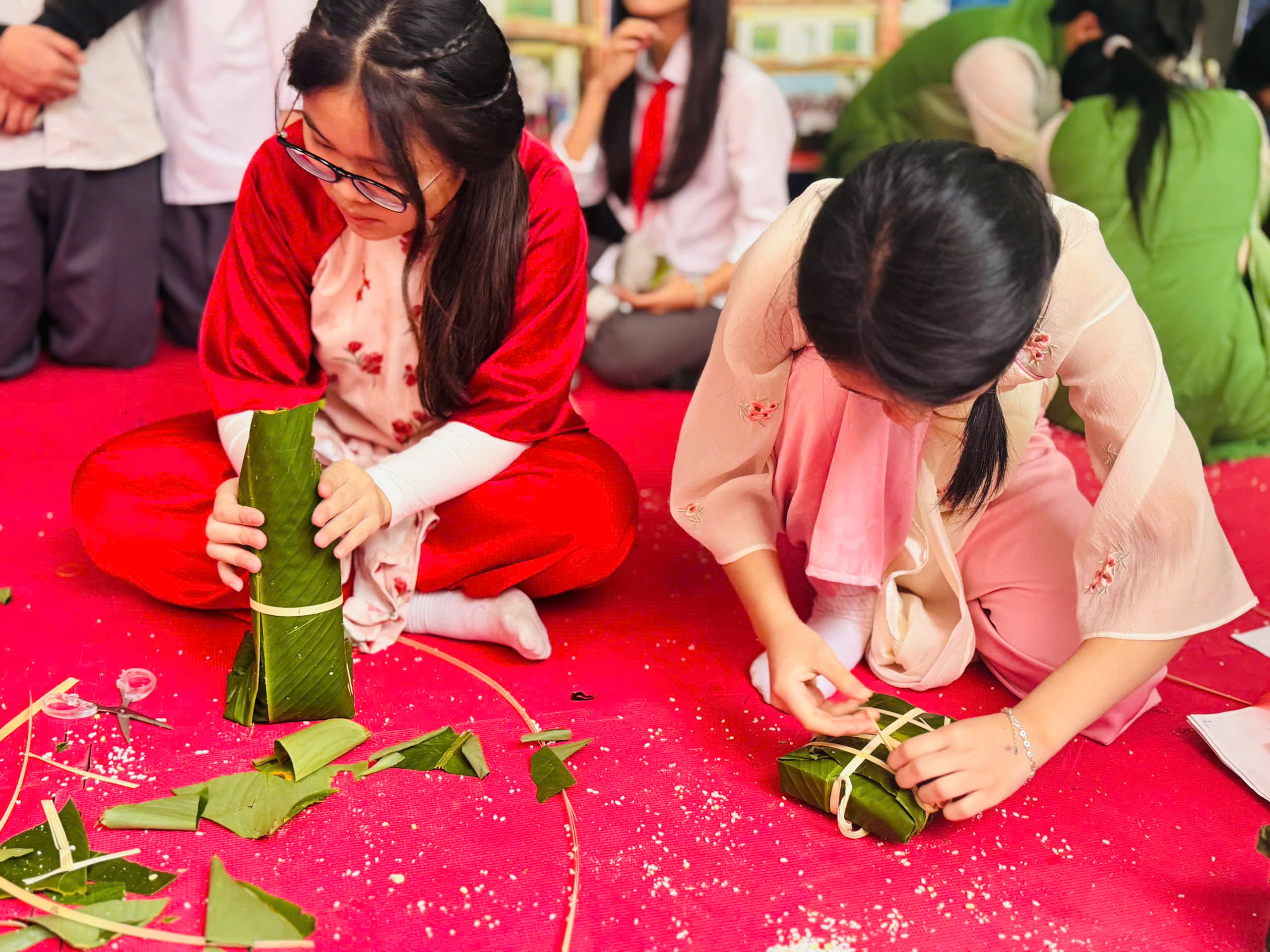 Đại diện cho nhà trường, các em học sinh lớp 8A1 đã tham gia cuộc thi với tinh thần hào hứng, tự tin và khéo léo. Dưới đôi bàn tay tỉ mỉ, những chiếc bánh chưng vuông vắn, đẹp mắt không chỉ thể hiện sự khéo tay mà còn gửi gắm tình yêu với nét đẹp văn hóa truyền thống dân tộc.