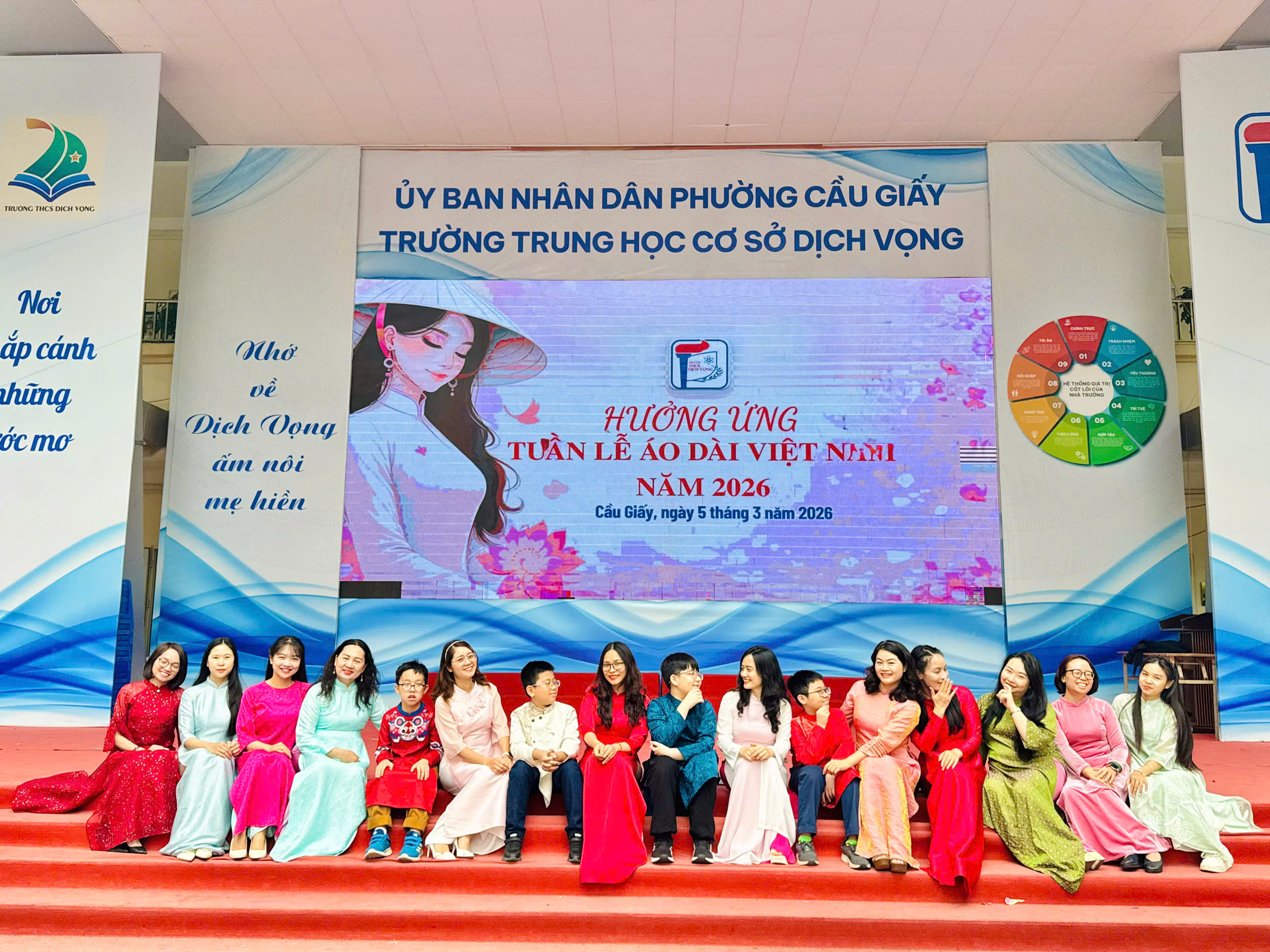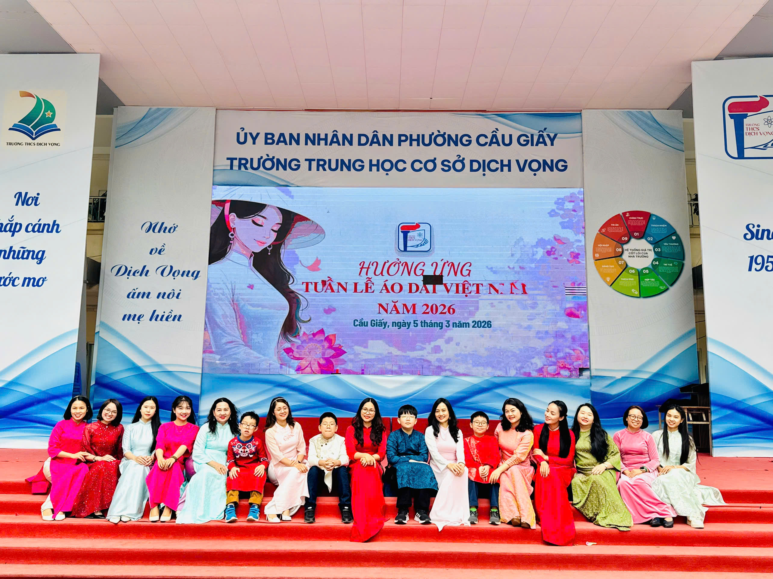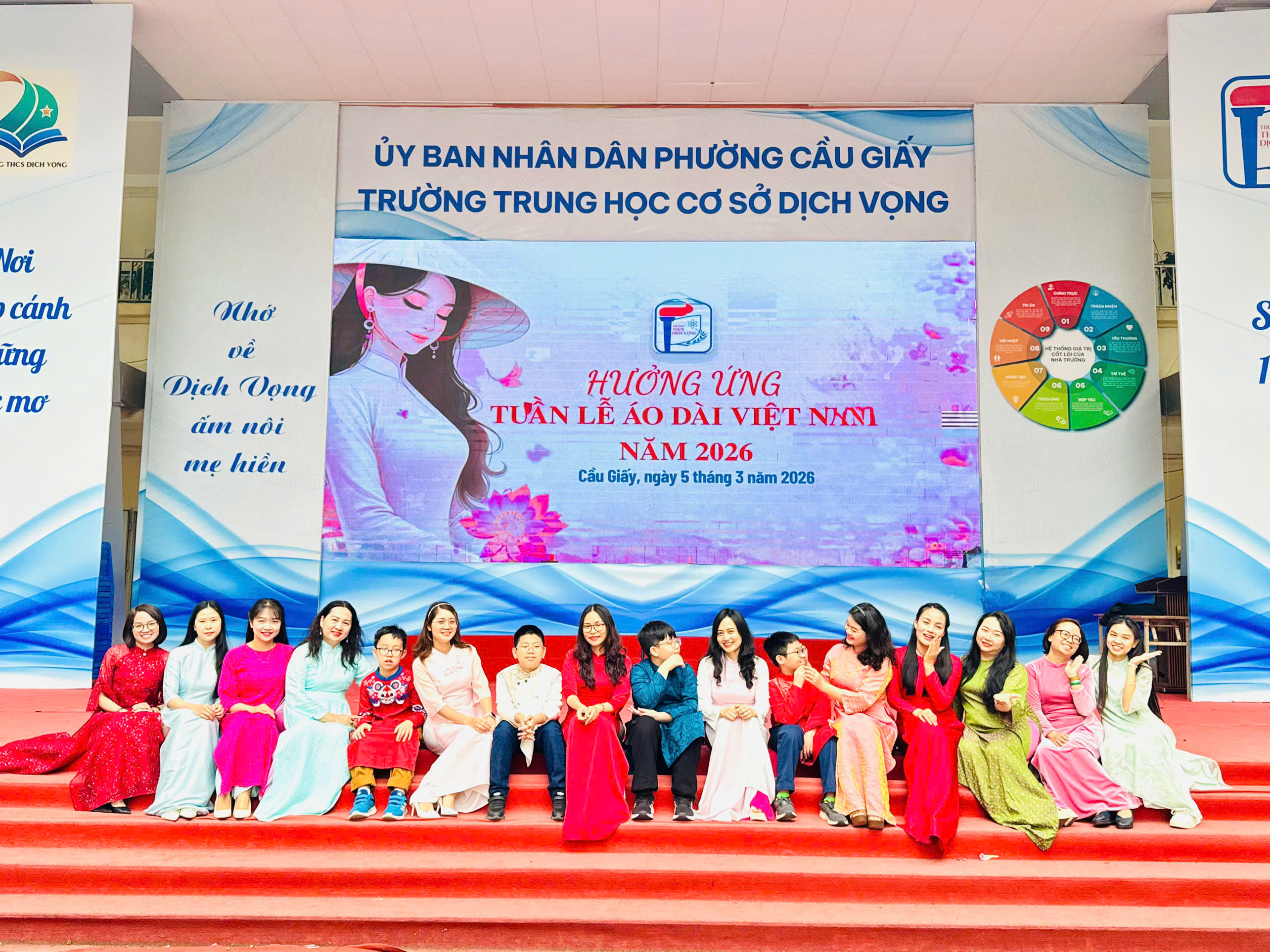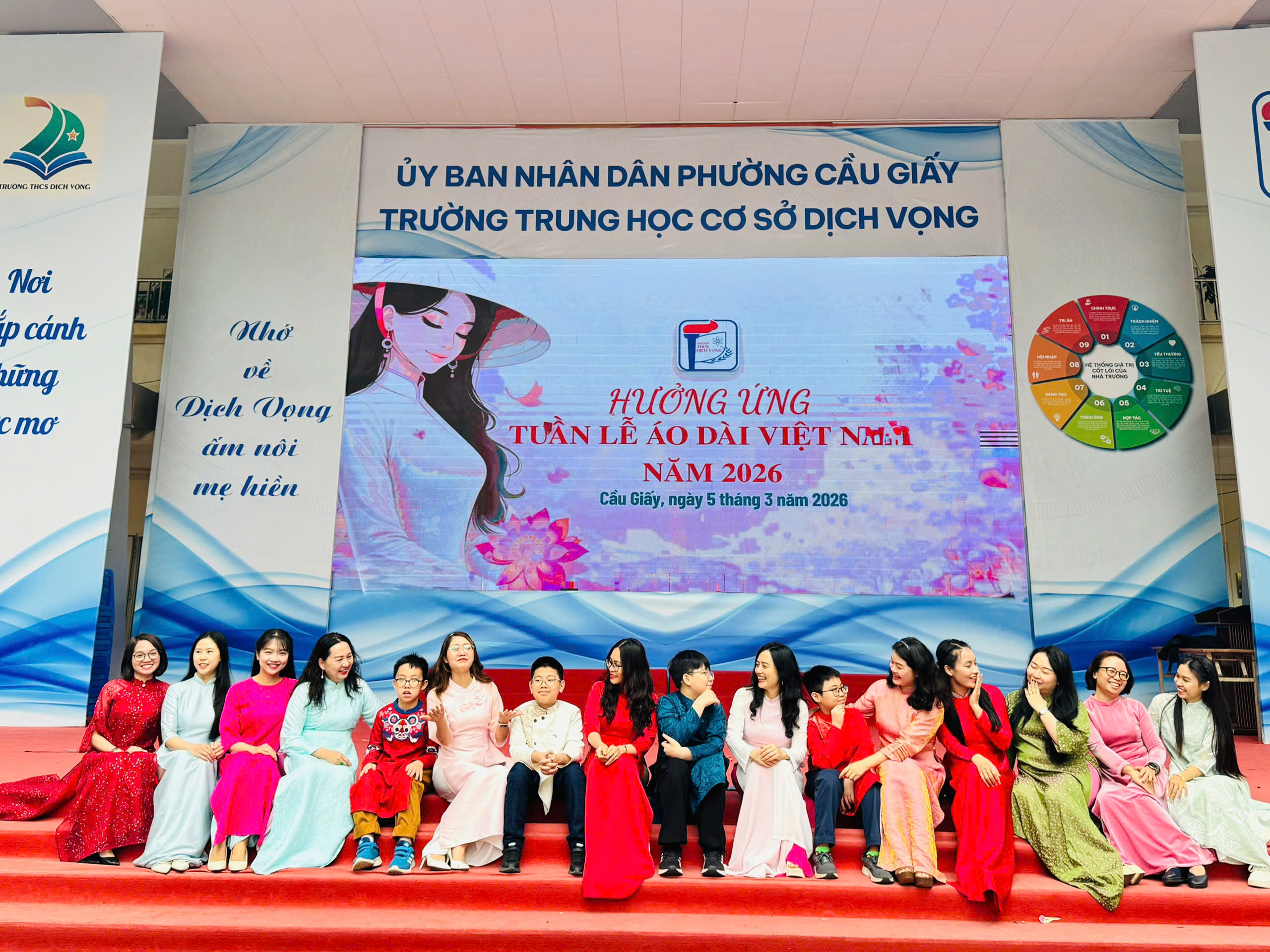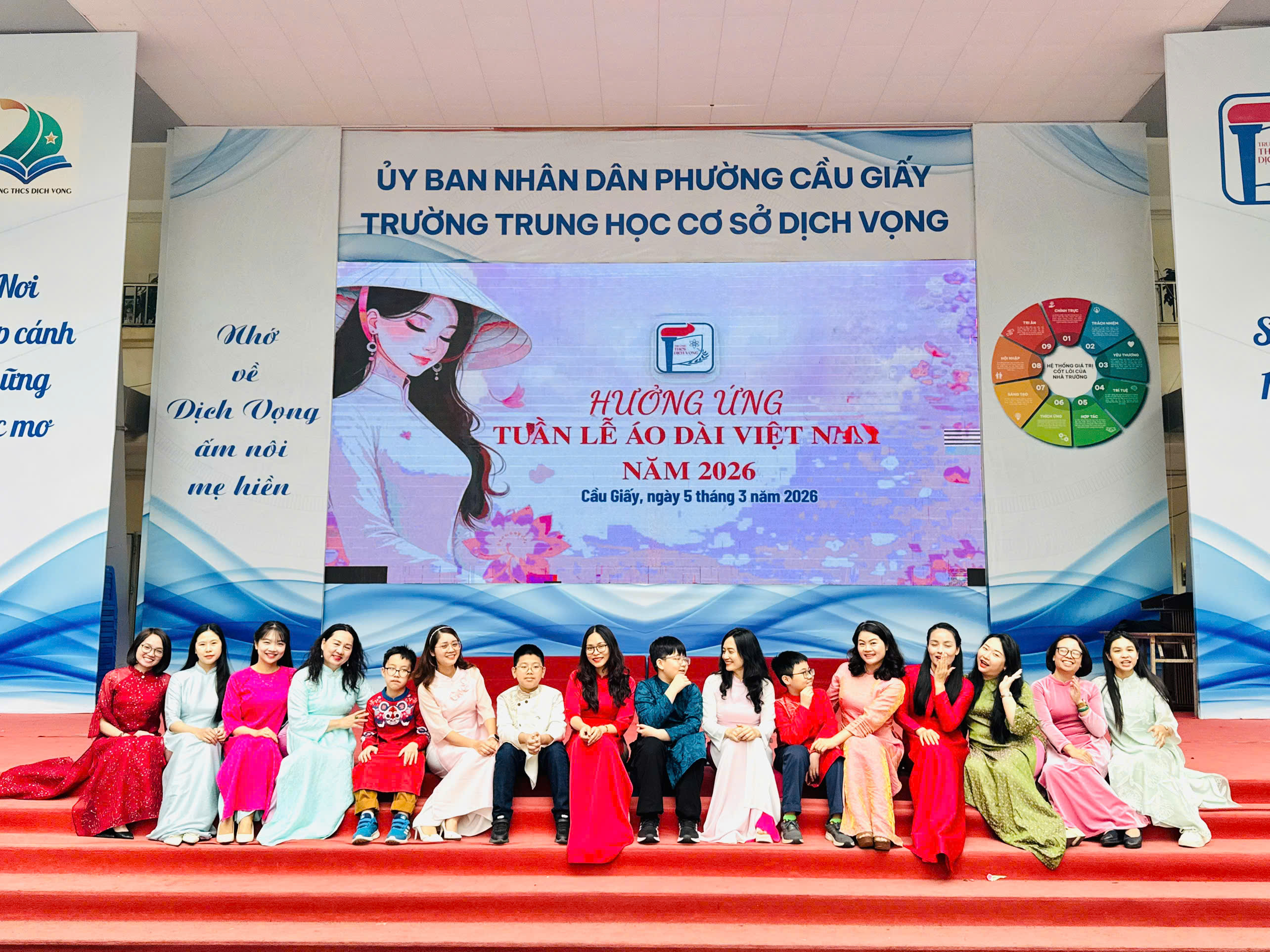 🌷Hòa chung không khí hân hoan kỷ niệm 116 năm Ngày Quốc tế Phụ nữ (08/3/1910 – 08/3/2026), thầy và trò Trường THCS Dịch Vọng đã tích cực hưởng ứng Tuần lễ Áo dài với nhiều hoạt động ý nghĩa, lan tỏa vẻ đẹp truyền thống và tôn vinh giá trị của người phụ nữ Việt Nam.