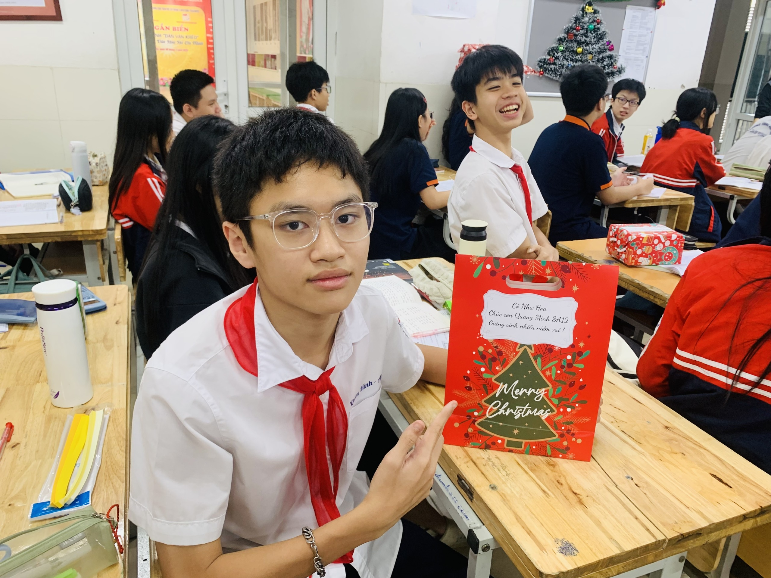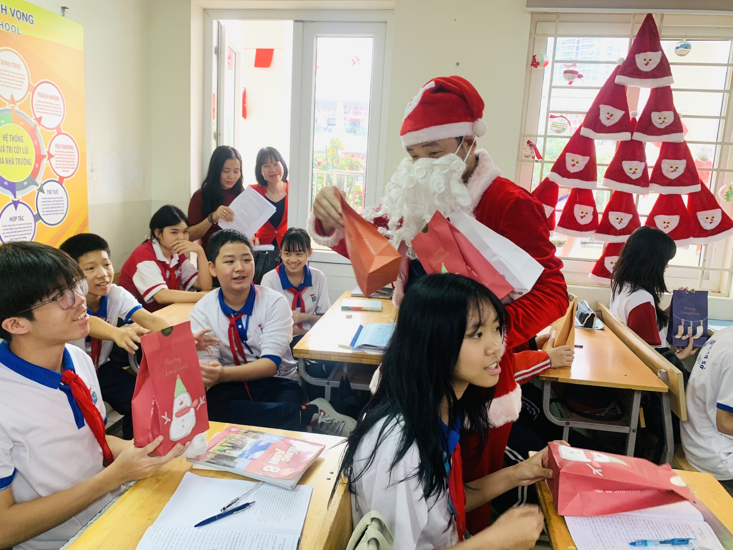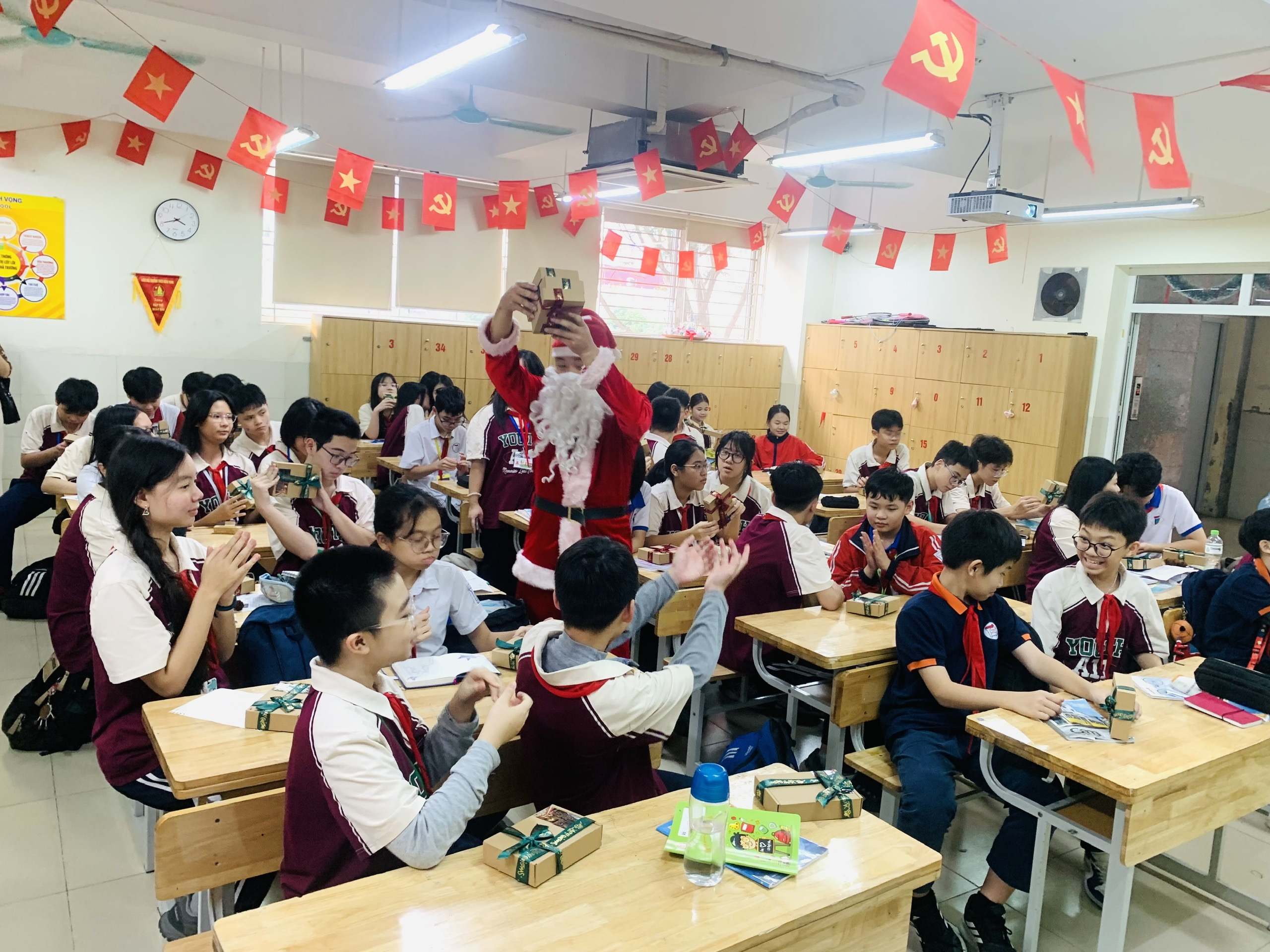 🎁🎅💕Với mong muốn mang đến cho các em học sinh mùa Giáng sinh an lành và hạnh phúc, các thầy cô trong Ban giám hiệu cùng các “ông già Noel” của nhà trường đã đến từng lớp học chúc mừng và trao tận tay các em những món quà nhỏ xinh do phụ huynh và bạn bè chuẩn bị, gửi gắm bao yêu thương trong dịp lễ này.
