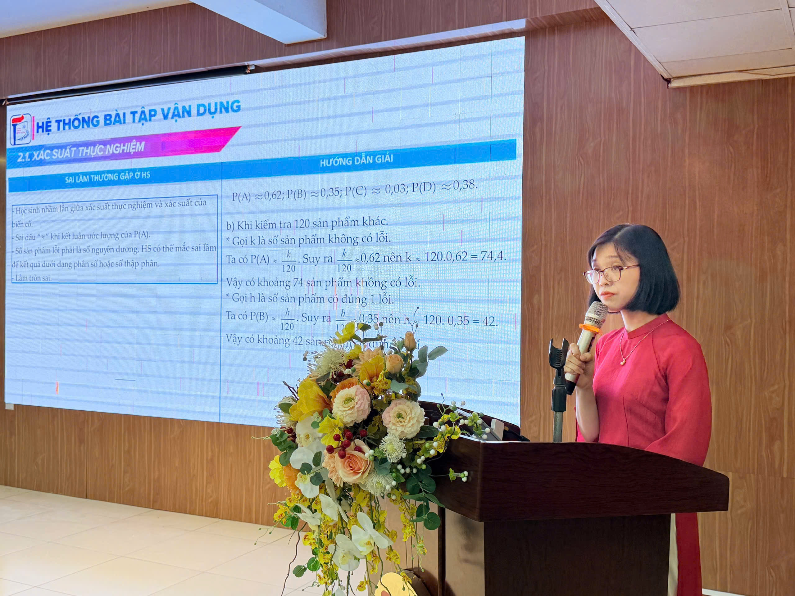 💡 Đại diện tổ Tự nhiên 1, cô giáo Nguyễn Thị Hân đã trình bày chuyên đề “Xác suất” với nội dung rõ ràng, logic và dễ tiếp cận. Chuyên đề tập trung hệ thống hóa các dạng bài từ cơ bản đến nâng cao; hướng dẫn cách trình bày lời giải mạch lạc qua các ví dụ minh họa; đồng thời chỉ ra những lỗi sai thường gặp và giới thiệu hệ thống bài tập tiêu biểu, được chọn lọc từ các đề thi (chuyên và không chuyên), bám sát chương trình GDPT 2018.