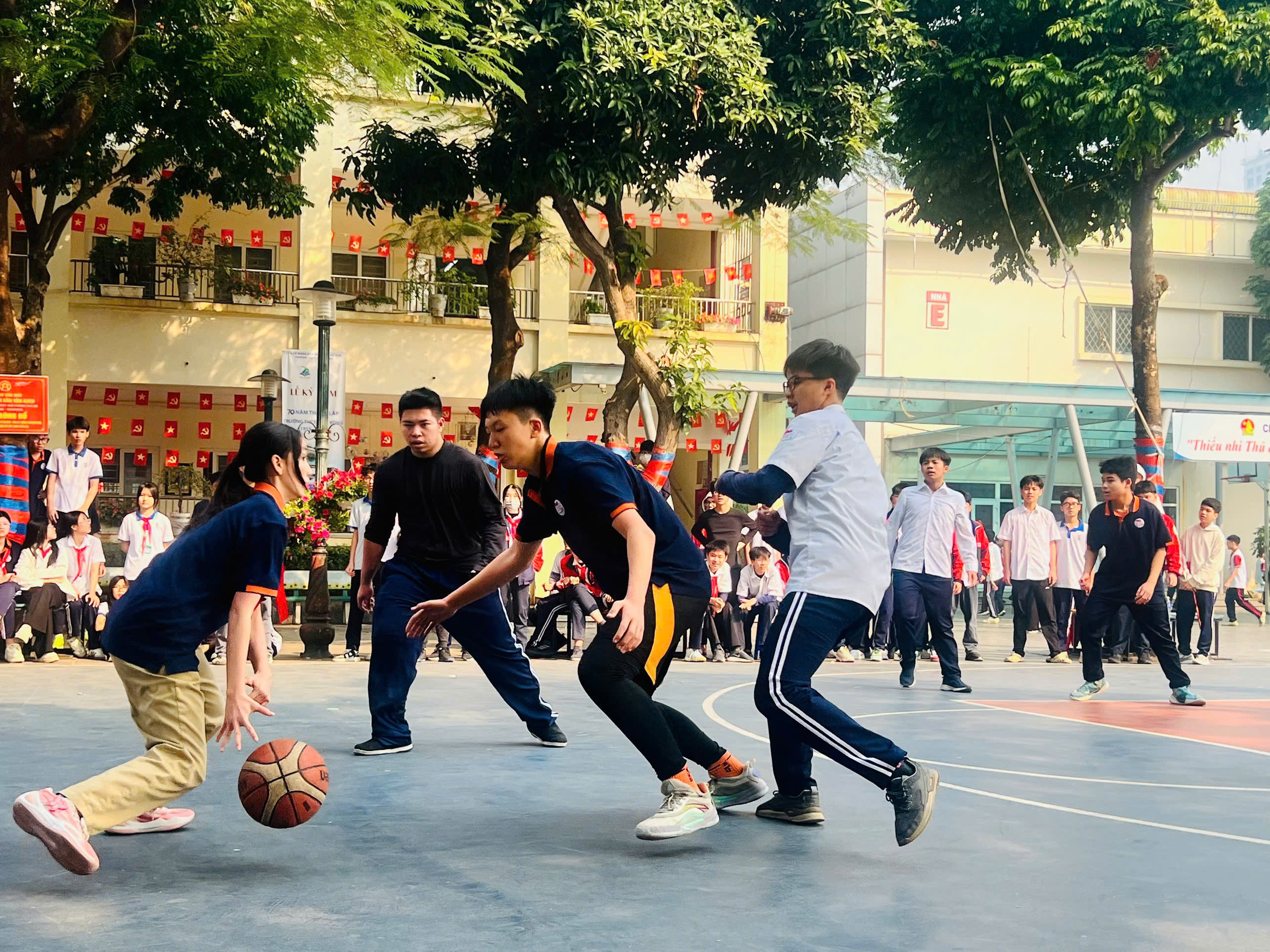 🏀 Giải bóng rổ khối 9 thổi bùng sức trẻ Dịch Vọng bằng những pha dẫn bóng tốc độ, phối hợp đồng đội ăn ý và các cú ném rổ đầy cảm xúc. Mỗi trận đấu là một màn tranh tài sôi động, thể hiện rõ bản lĩnh và tinh thần đoàn kết của học sinh cuối cấp.
