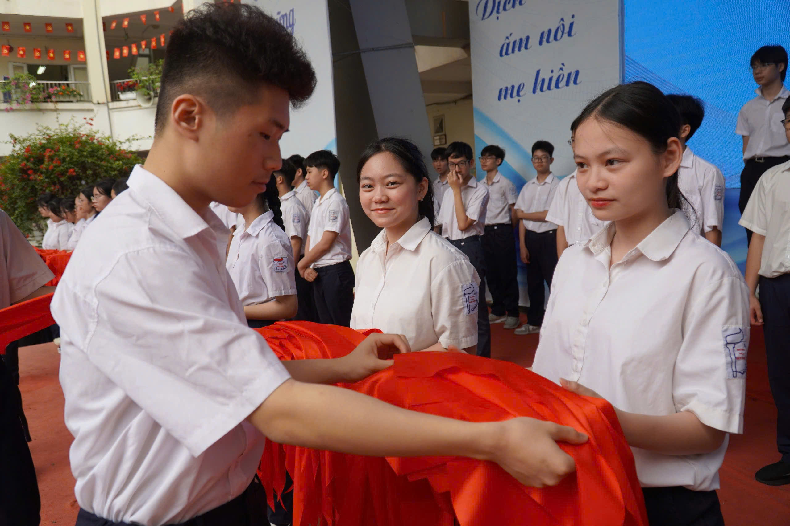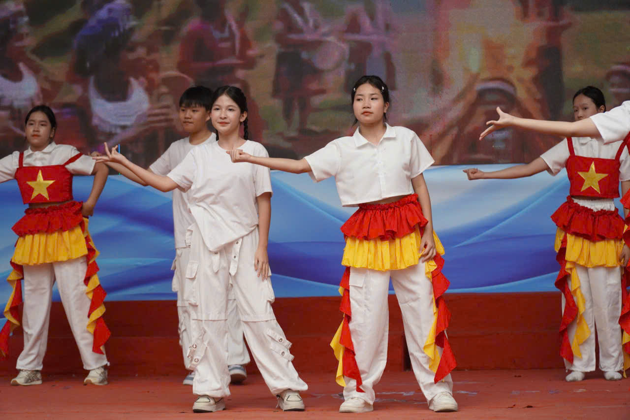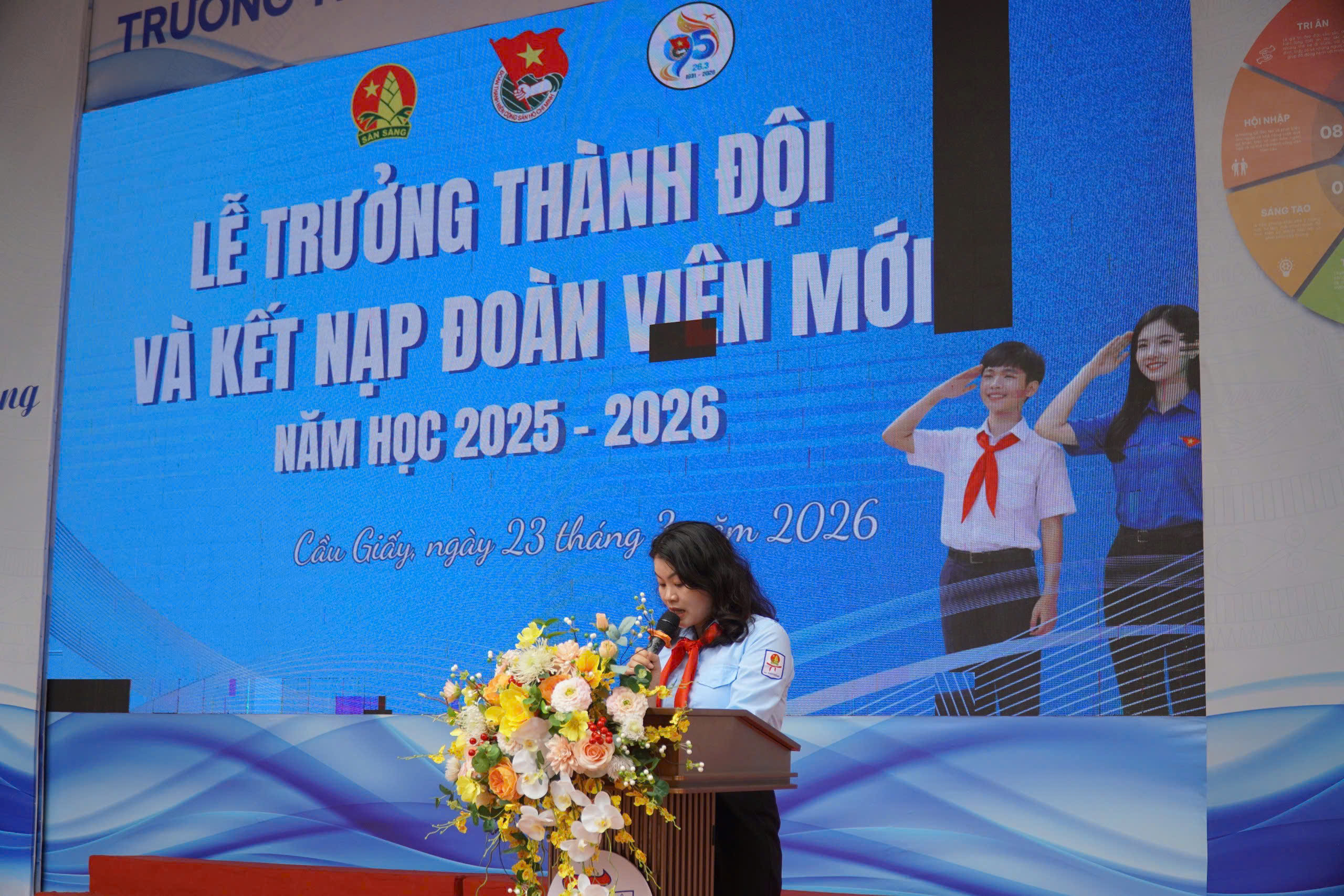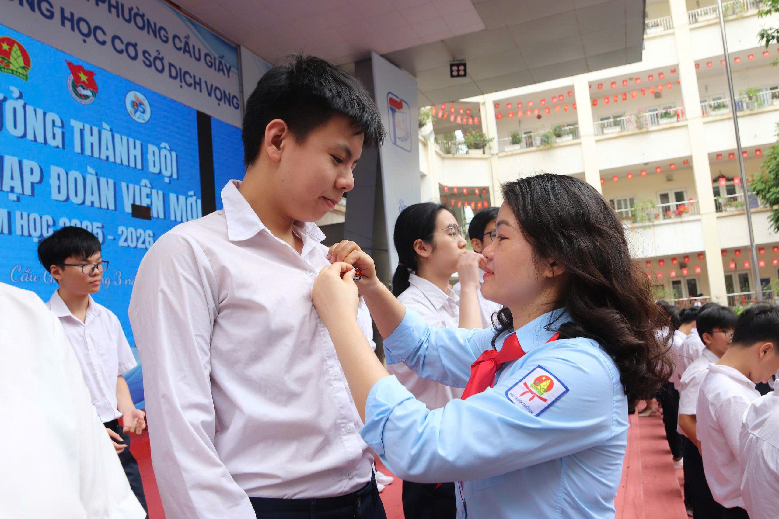 Một trong những khoảnh khắc xúc động của ngày hội là hoạt động trao tặng khăn quàng đỏ với sự tham gia của 511 em đội viên trưởng thành khối 9, trao lại khăn quàng cho các em đội viên khối 6, 7. Hình ảnh trao gửi chiếc khăn quàng – biểu tượng thiêng liêng của Đội – không chỉ đánh dấu sự trưởng thành của các anh chị lớp lớn mà còn thể hiện sự tiếp nối truyền thống, gửi gắm niềm tin và trách nhiệm cho thế hệ kế tiếp.