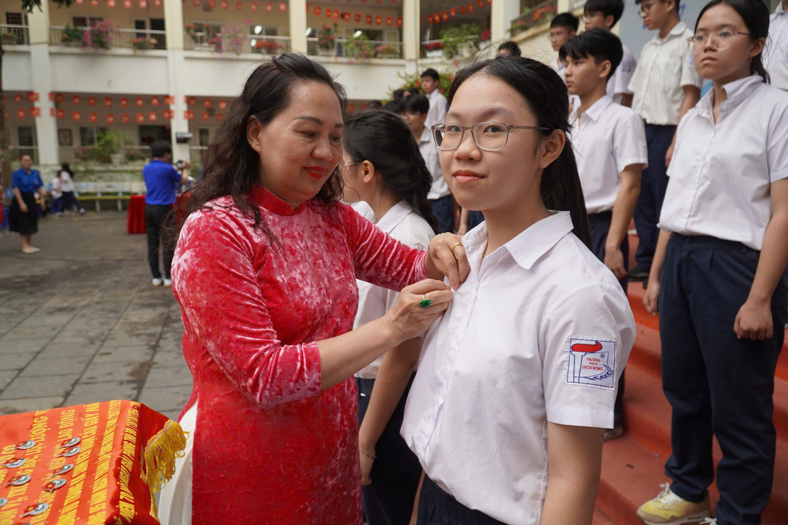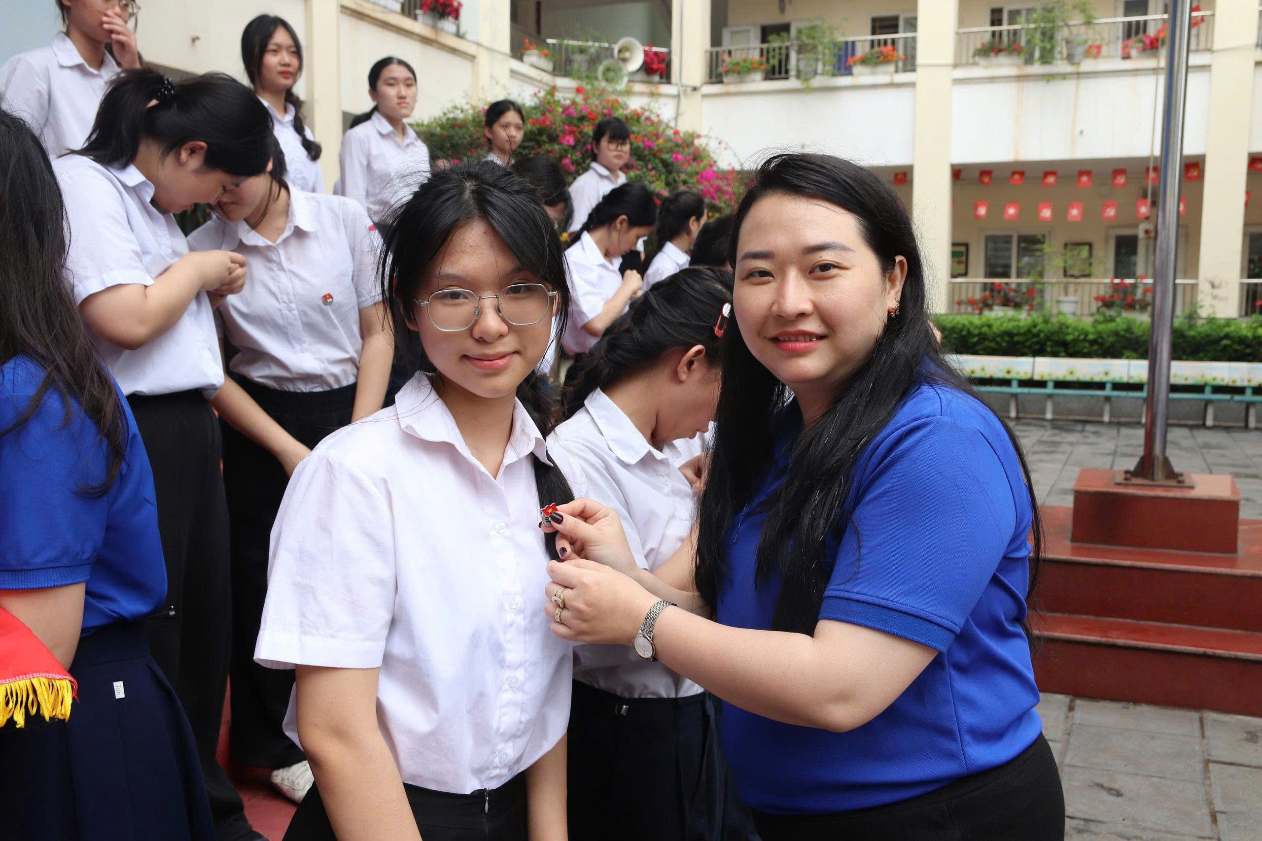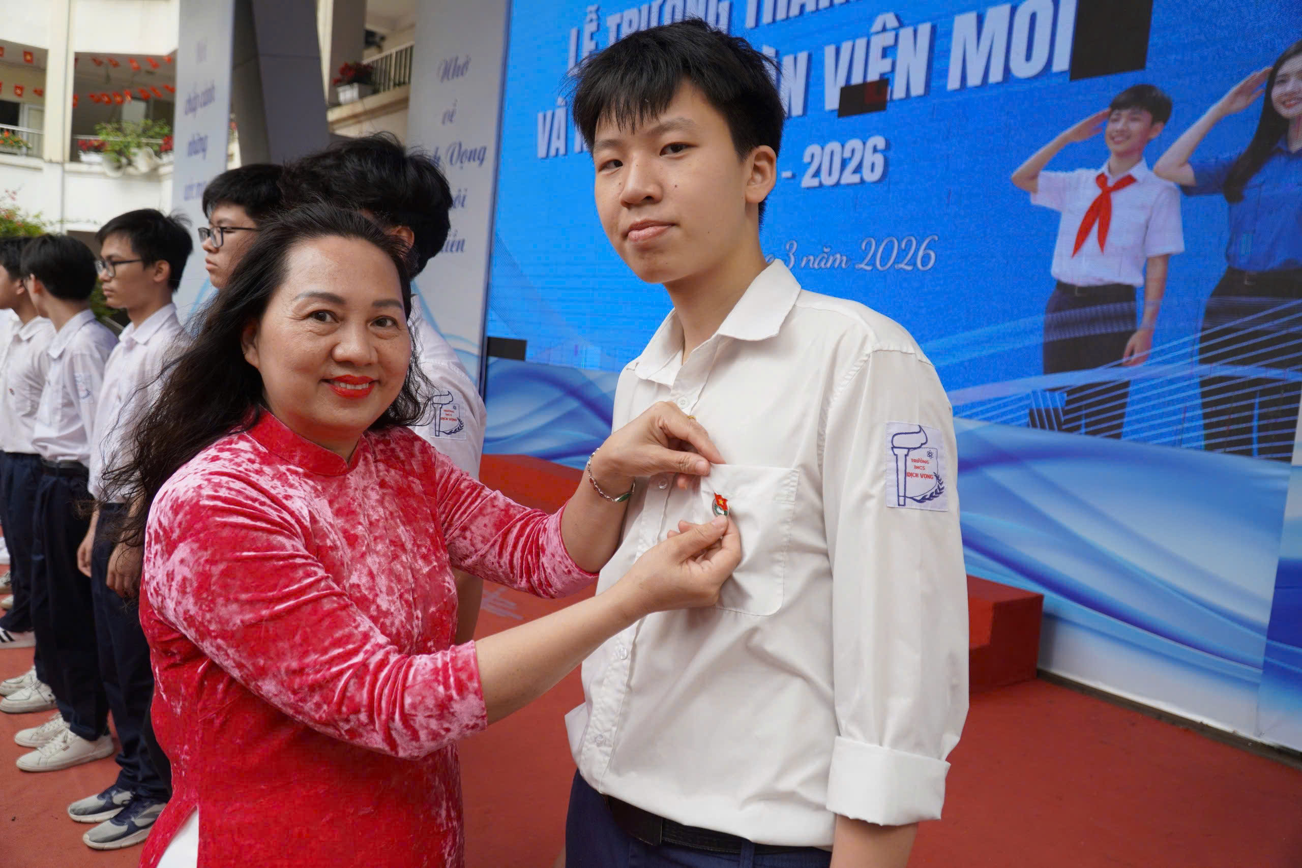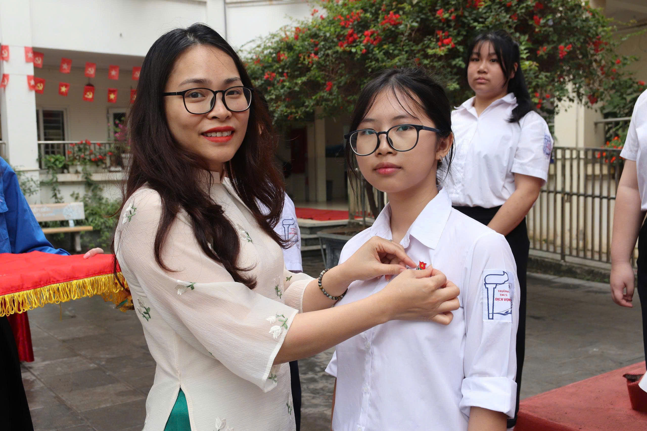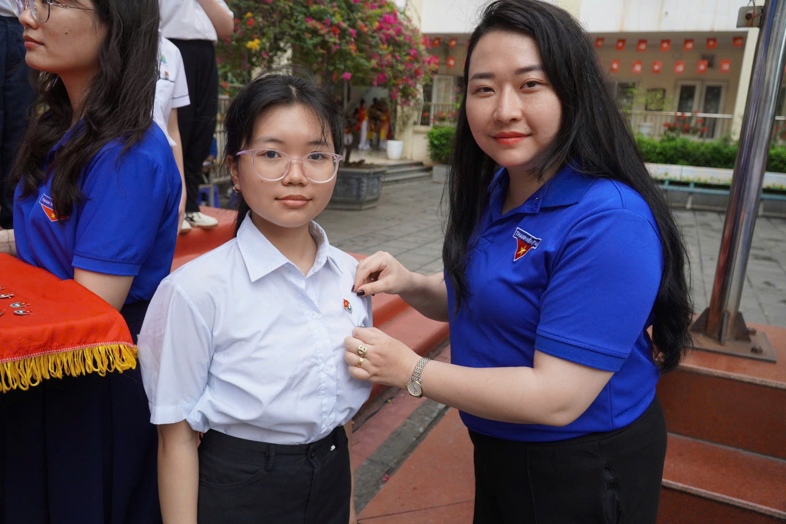 Một trong những khoảnh khắc xúc động của ngày hội là hoạt động trao tặng khăn quàng đỏ với sự tham gia của 511 em đội viên trưởng thành khối 9, trao lại khăn quàng cho các em đội viên khối 6, 7. Hình ảnh trao gửi chiếc khăn quàng – biểu tượng thiêng liêng của Đội – không chỉ đánh dấu sự trưởng thành của các anh chị lớp lớn mà còn thể hiện sự tiếp nối truyền thống, gửi gắm niềm tin và trách nhiệm cho thế hệ kế tiếp.