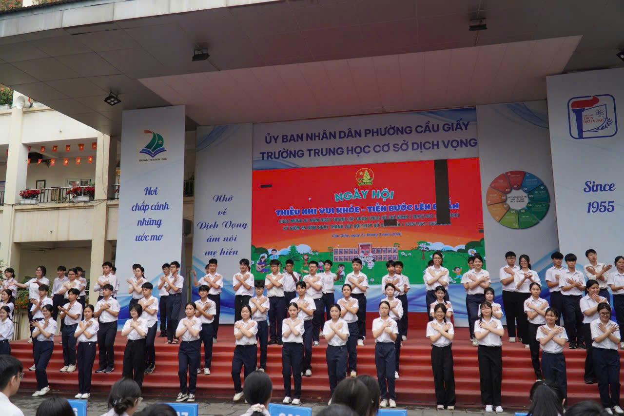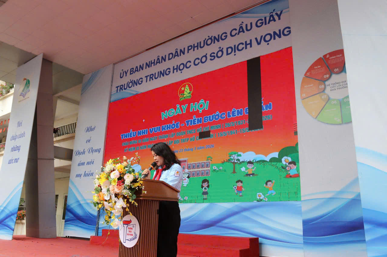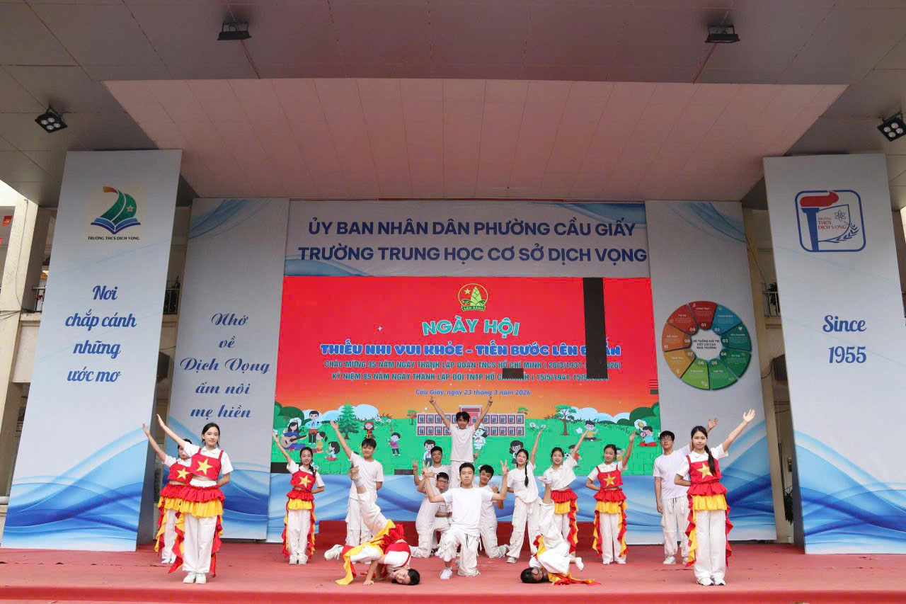 📍 Sáng ngày 23/3/2026, tại sân trường THCS Dịch Vọng, Ngày hội “Thiếu nhi vui khỏe – Tiến bước lên Đoàn” đã được tổ chức trong không khí sôi nổi, hào hứng, thu hút sự tham gia của đông đảo đội viên, học sinh toàn trường.