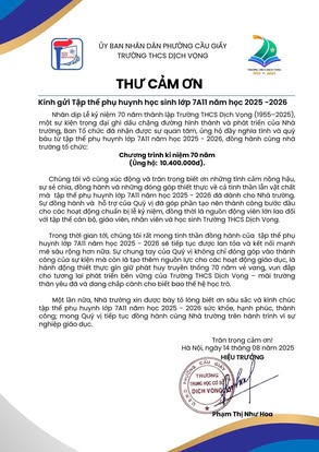 Trường THCS Dịch Vọng trân trọng cảm ơn!