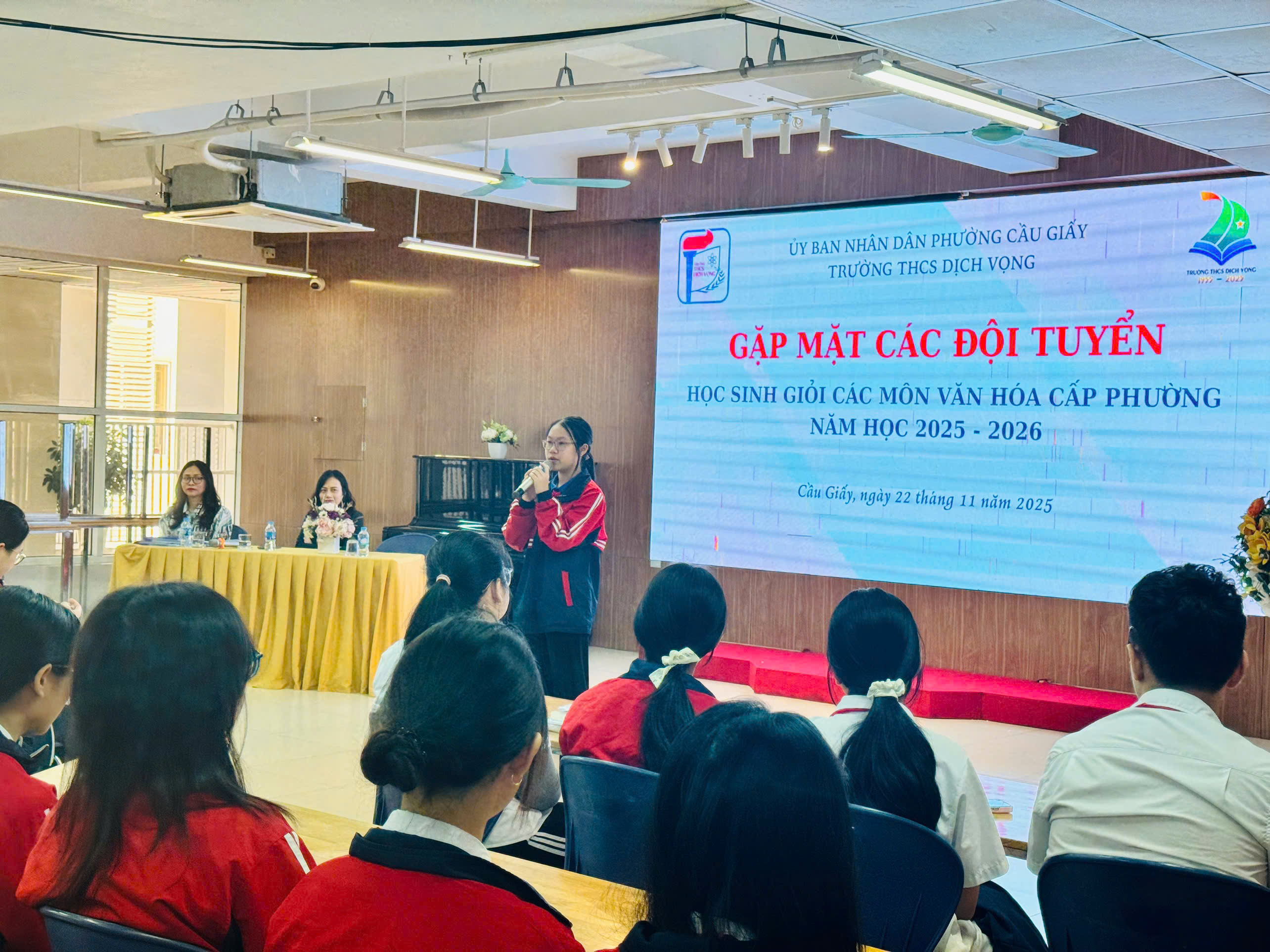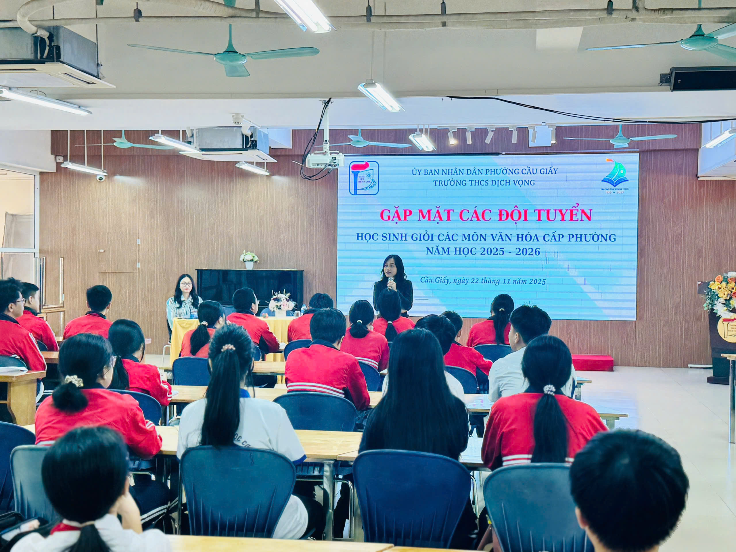 Sáng ngày 22/11, với không gian ấm áp của thư viện trường THCS Dịch Vọng, buổi gặp mặt các đội tuyển học sinh giỏi các môn văn hóa cấp phường năm học 2025 - 2026 đã diễn ra đầy trang trọng và cảm xúc. Đây không chỉ là một sự kiện thường niên, mà còn là dịp để thầy cô và học trò cùng nhìn lại hành trình nỗ lực, khẳng định ý chí và tiếp thêm sức mạnh cho chặng đường phía trước.
