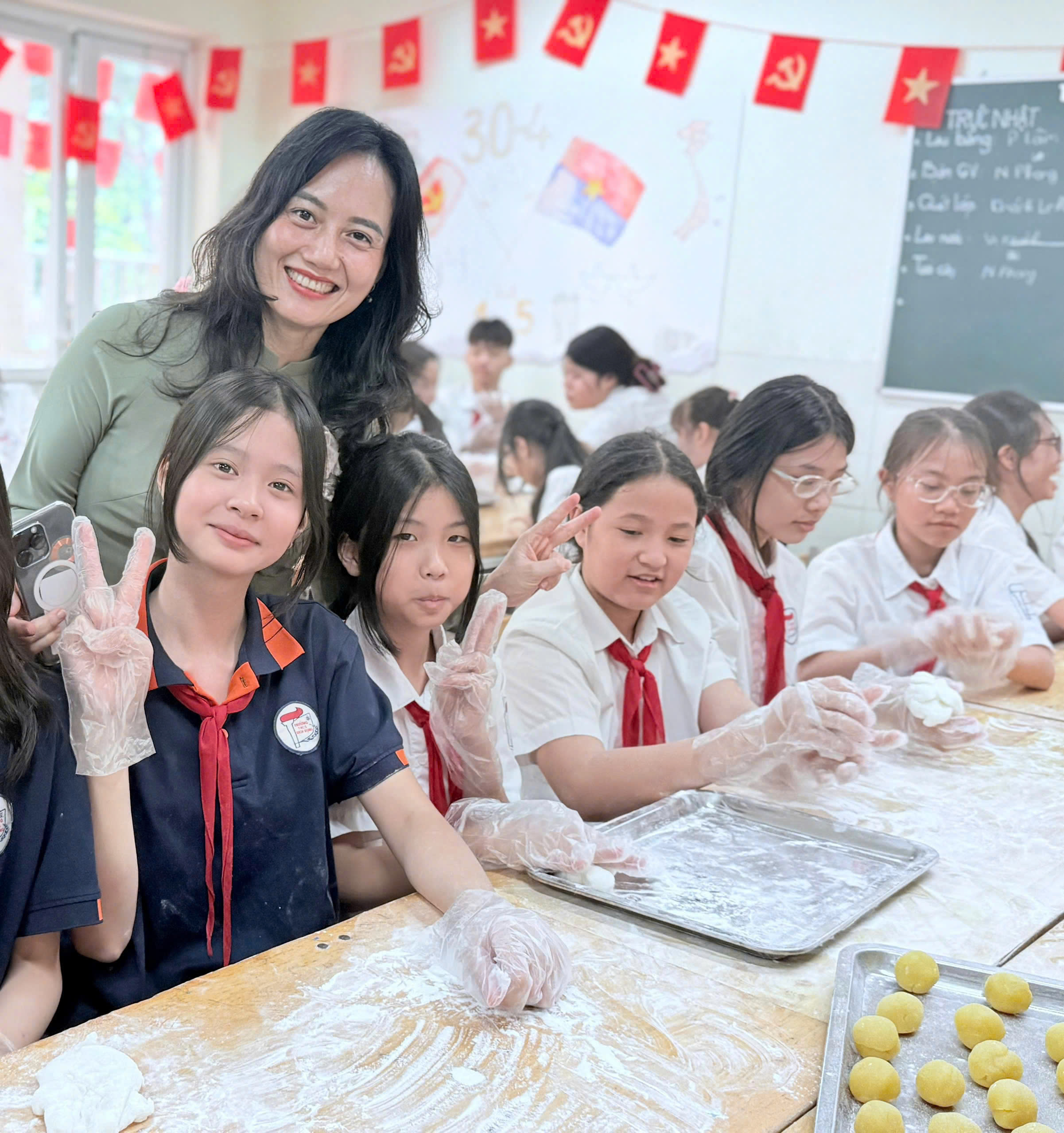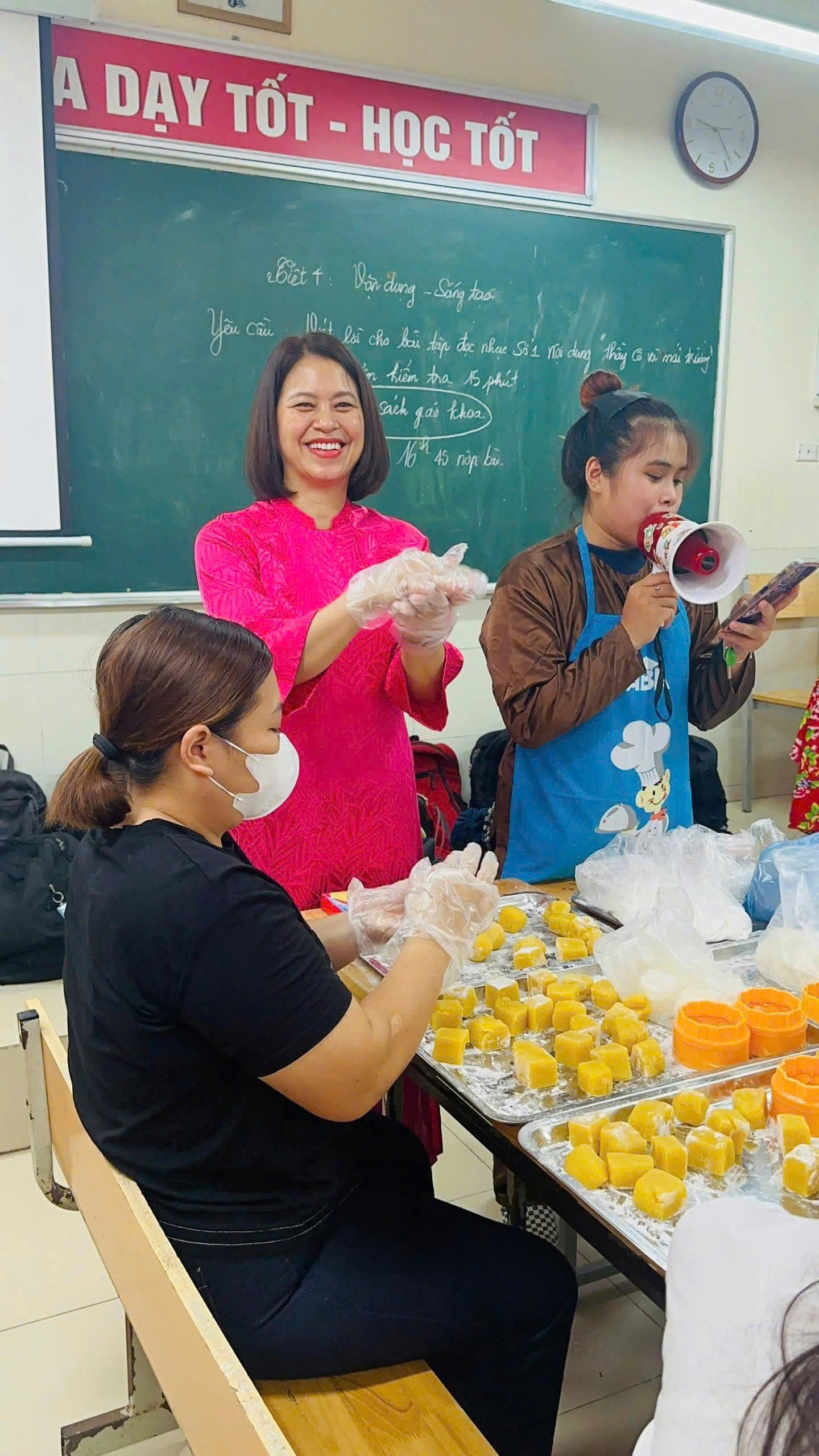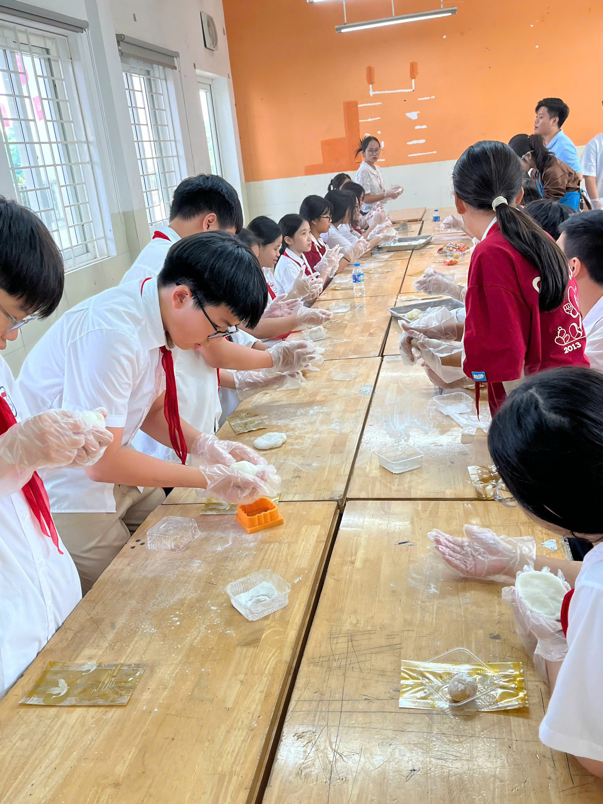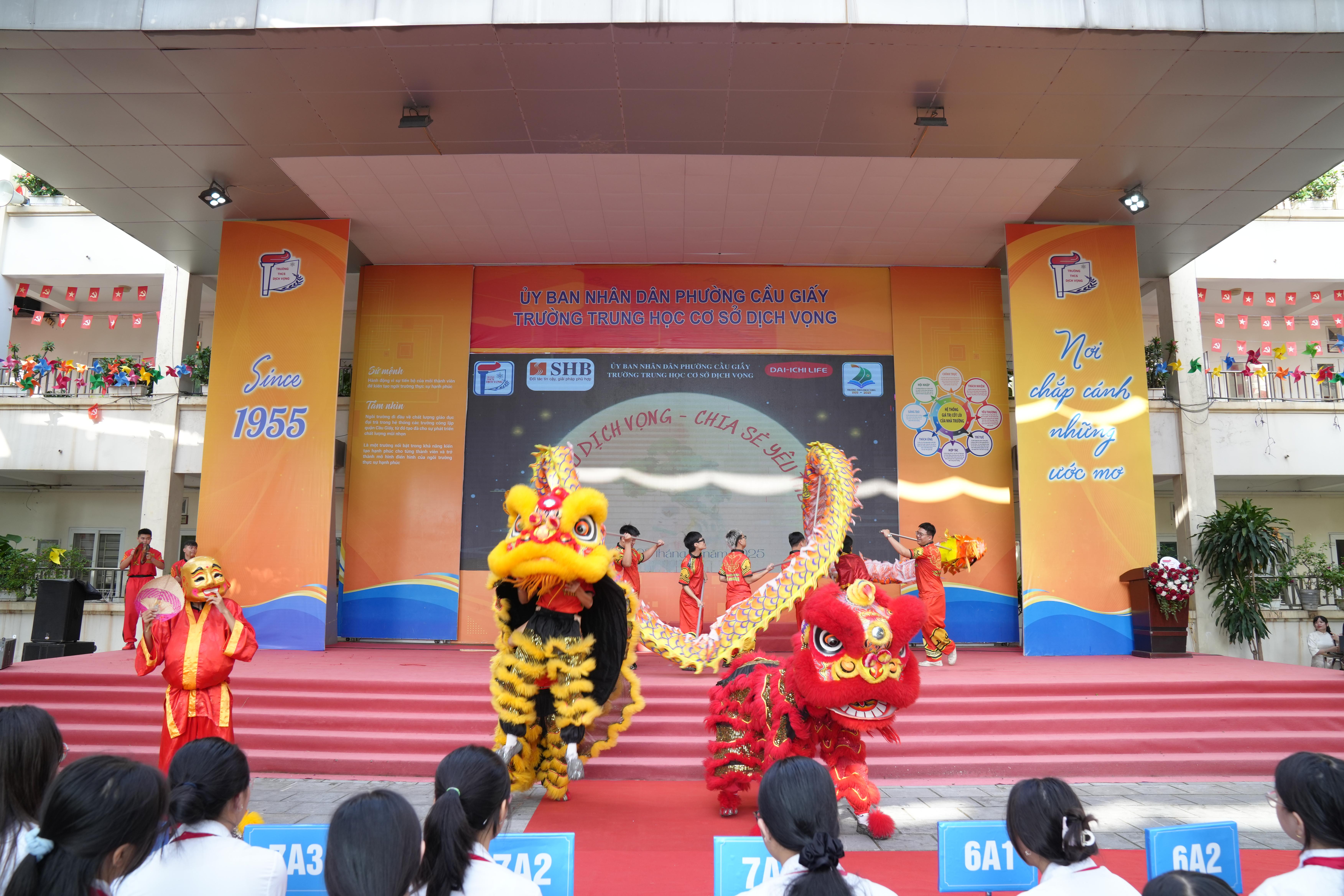 Sân trường trở nên vô cùng náo nhiệt với những tiết mục múa lân sư rồng rộn ràng và các màn biểu diễn xiếc đặc sắc, thu hút sự theo dõi và cổ vũ nhiệt tình của toàn thể học sinh. Không những thế, các em học sinh còn được tự tay làm bánh dẻo truyền thống với tem nhãn riêng do chính các em thiết kế để tặng gia đình, người thân- Món quà nhỏ nhưng chứa chan tình cảm.