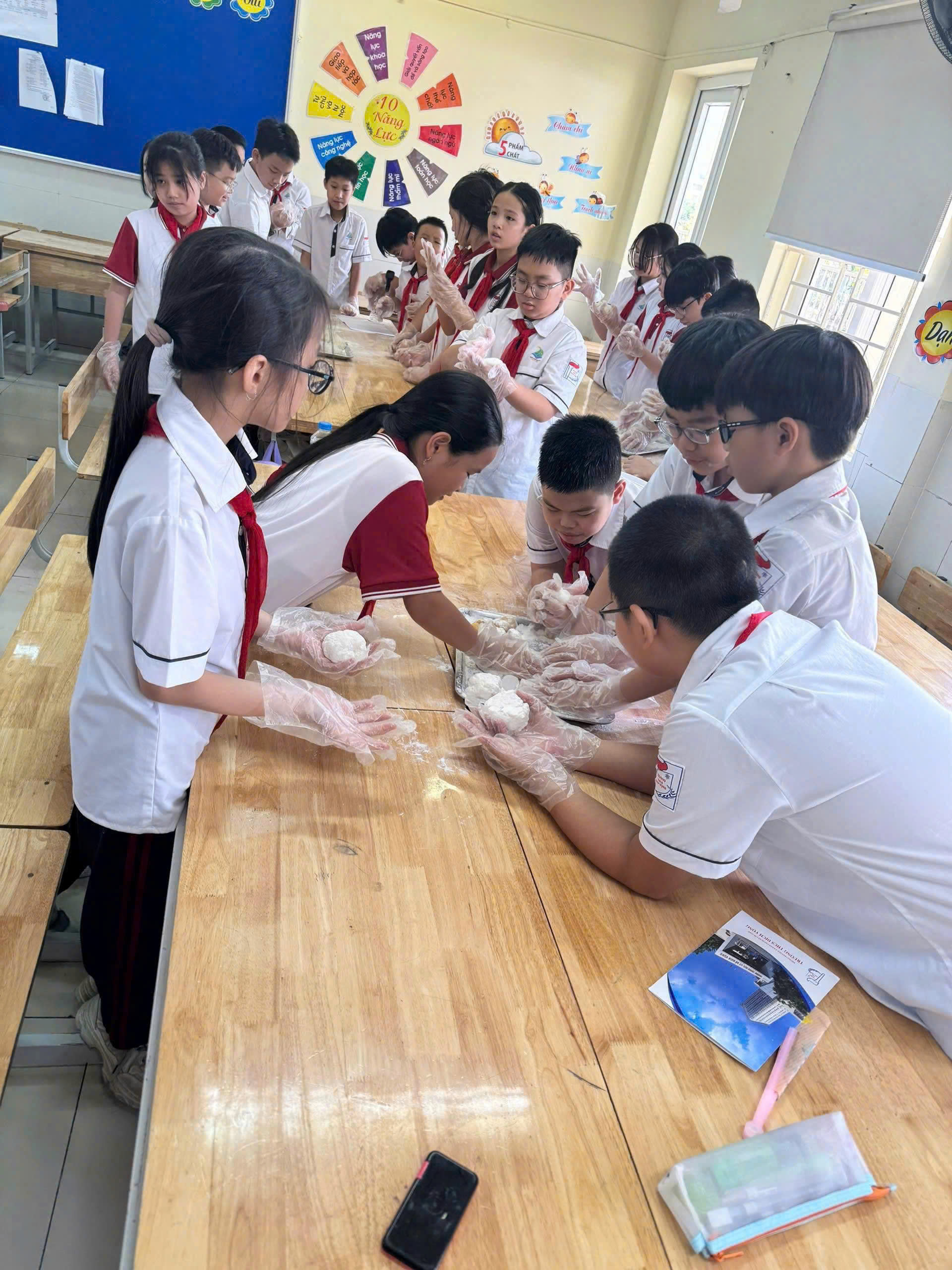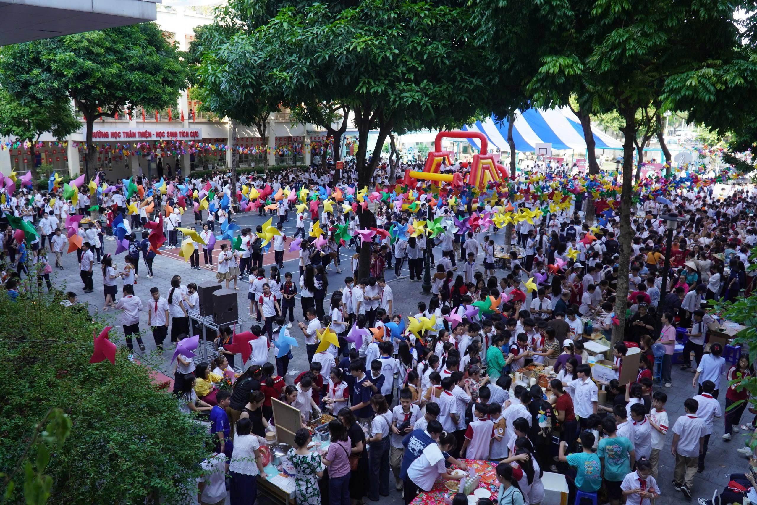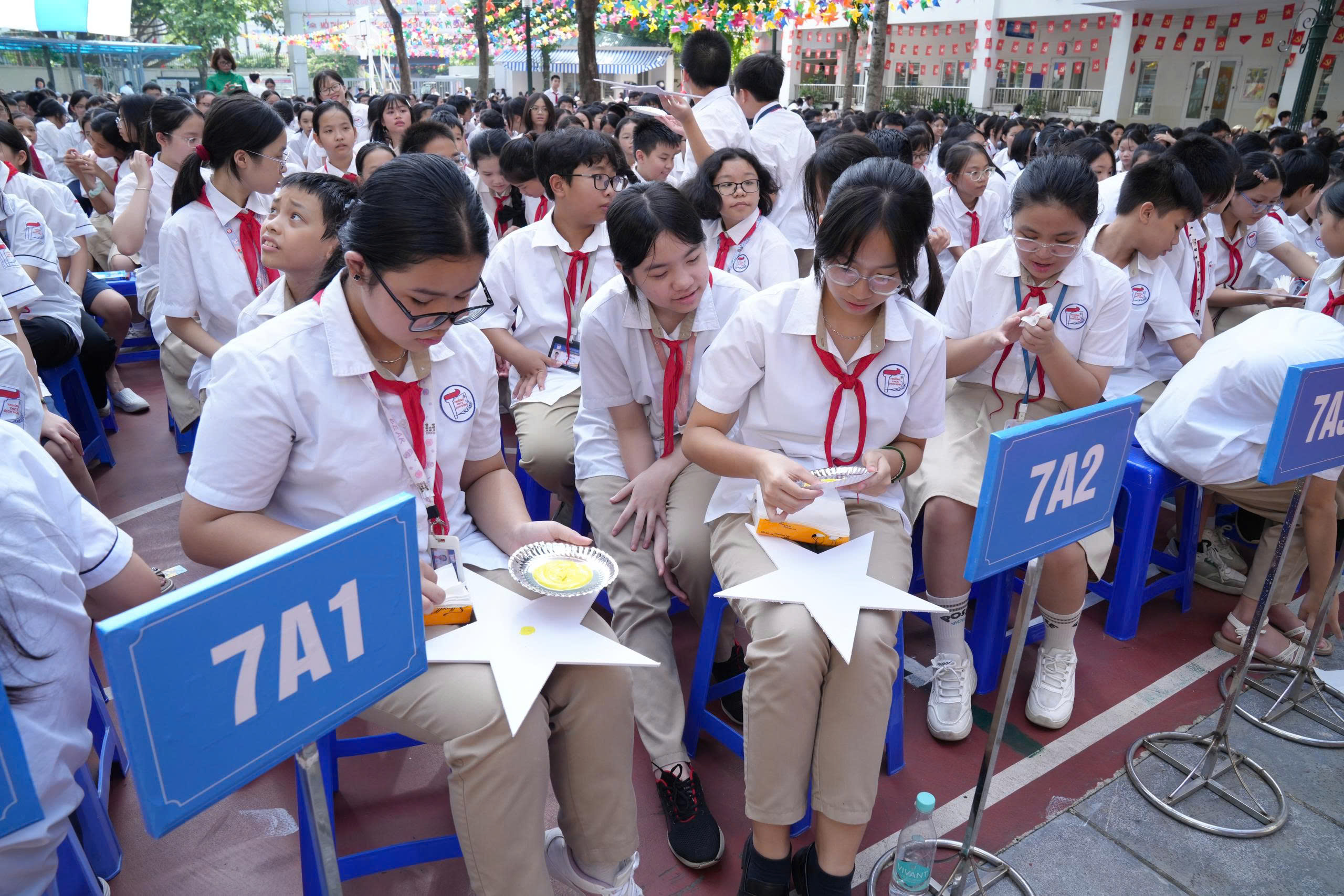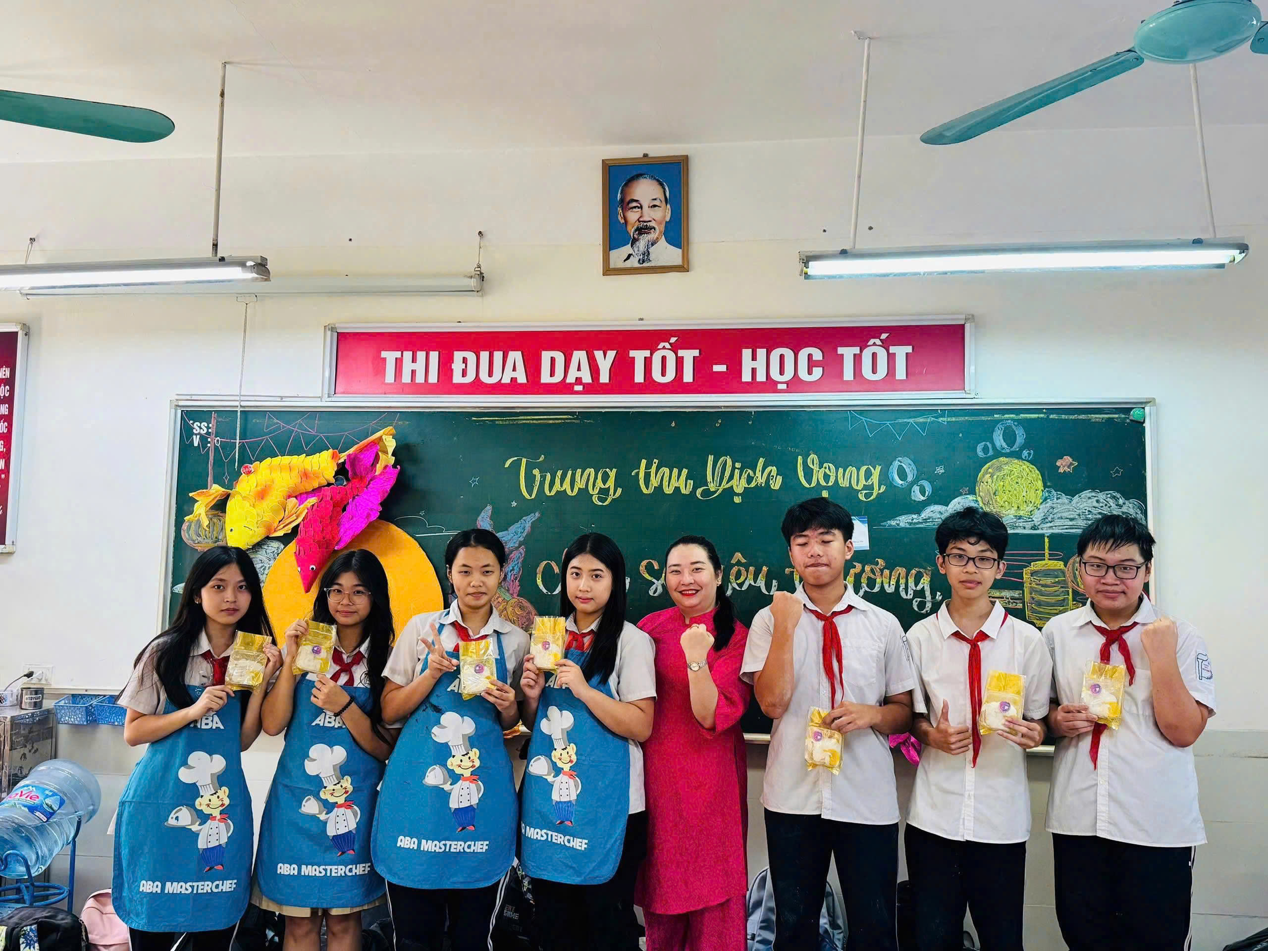 Sân trường trở nên vô cùng náo nhiệt với những tiết mục múa lân sư rồng rộn ràng và các màn biểu diễn xiếc đặc sắc, thu hút sự theo dõi và cổ vũ nhiệt tình của toàn thể học sinh. Không những thế, các em học sinh còn được tự tay làm bánh dẻo truyền thống với tem nhãn riêng do chính các em thiết kế để tặng gia đình, người thân- Món quà nhỏ nhưng chứa chan tình cảm.
