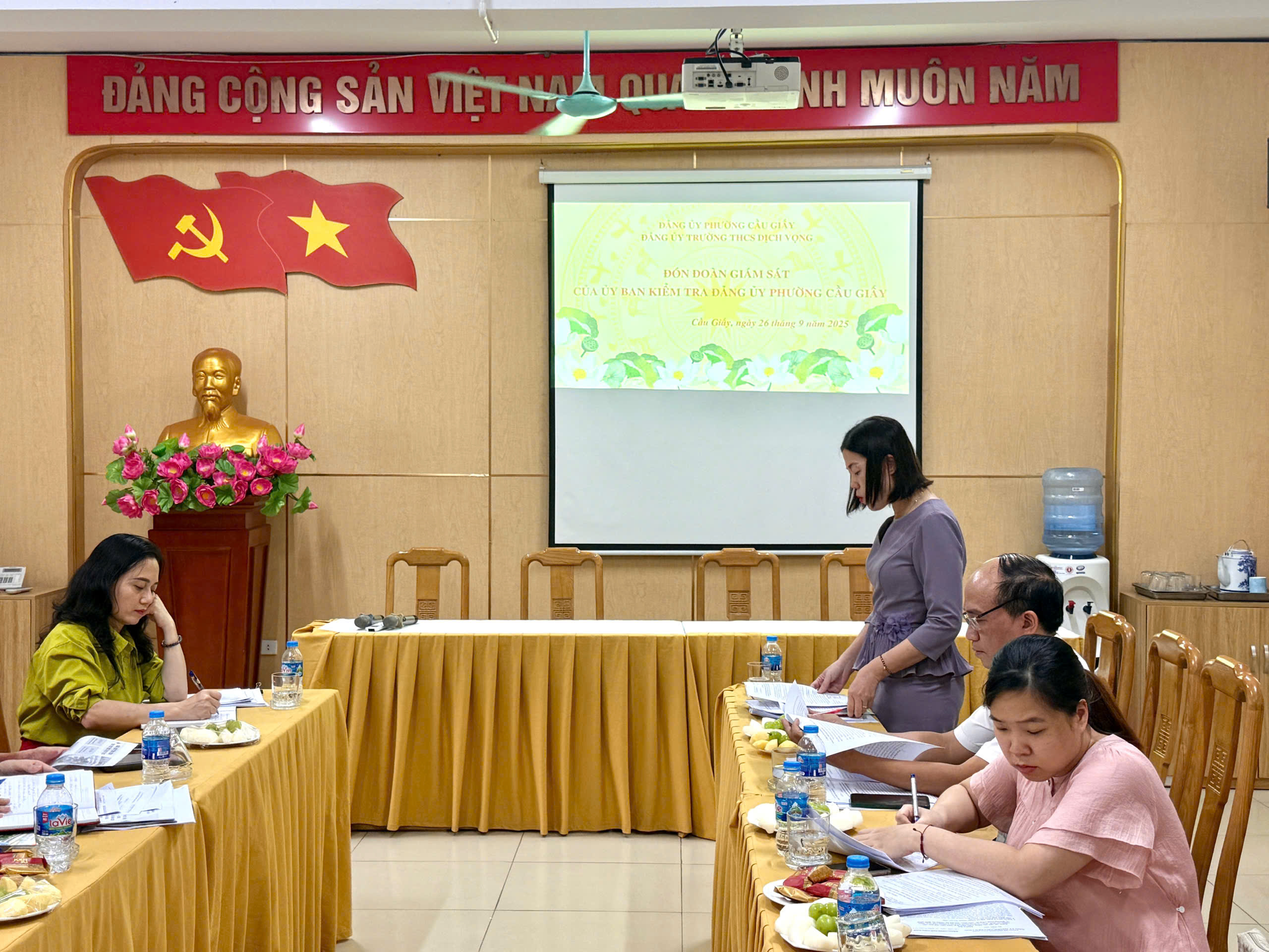 📌Chiều ngày 26/9/2025, Đảng ủy Trường THCS Dịch Vọng đã vinh dự đón tiếp đoàn giám sát của Ủy ban kiểm tra Đảng ủy phường Cầu Giấy về làm việc theo kế hoạch giám sát năm 2025.