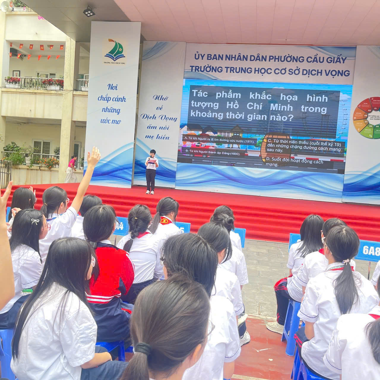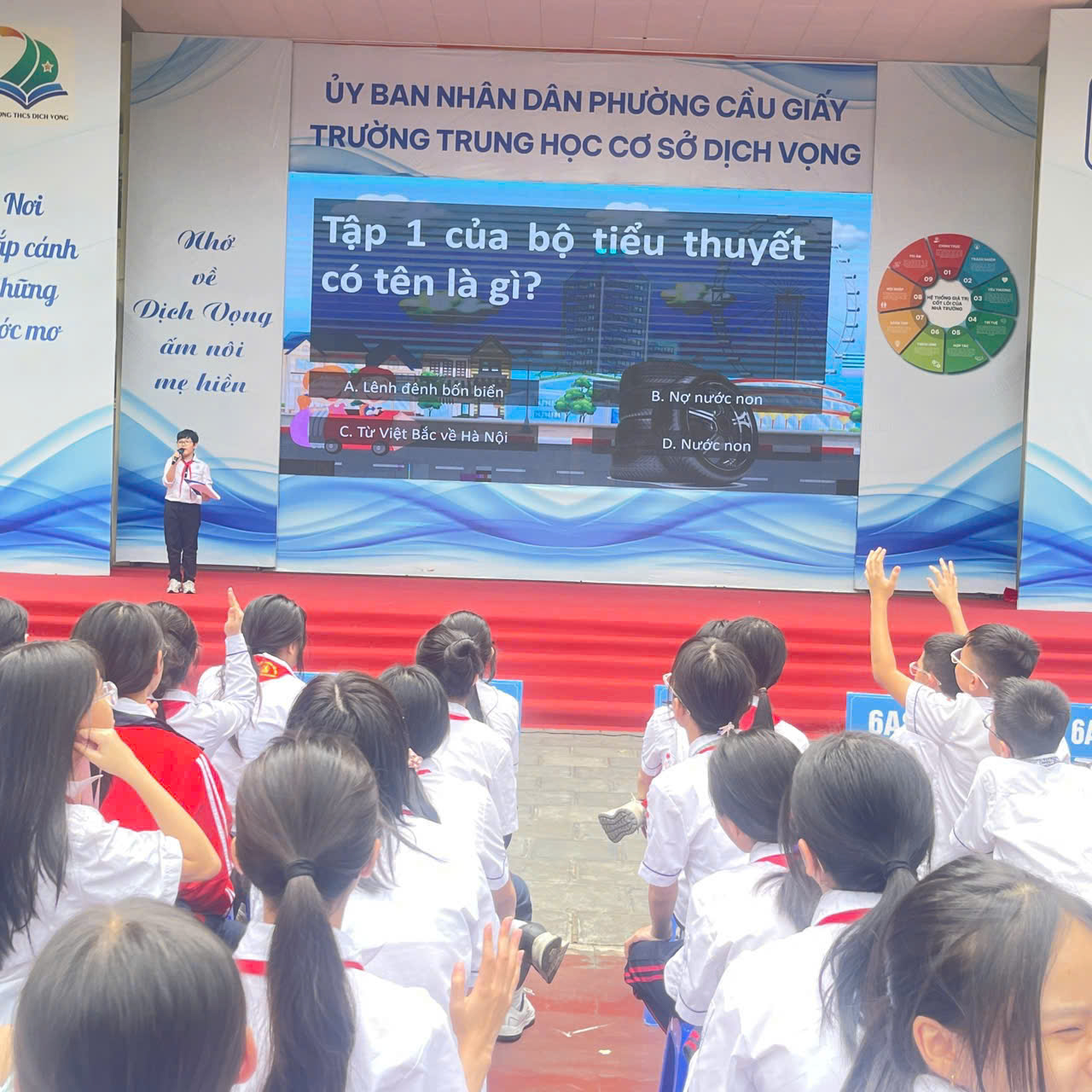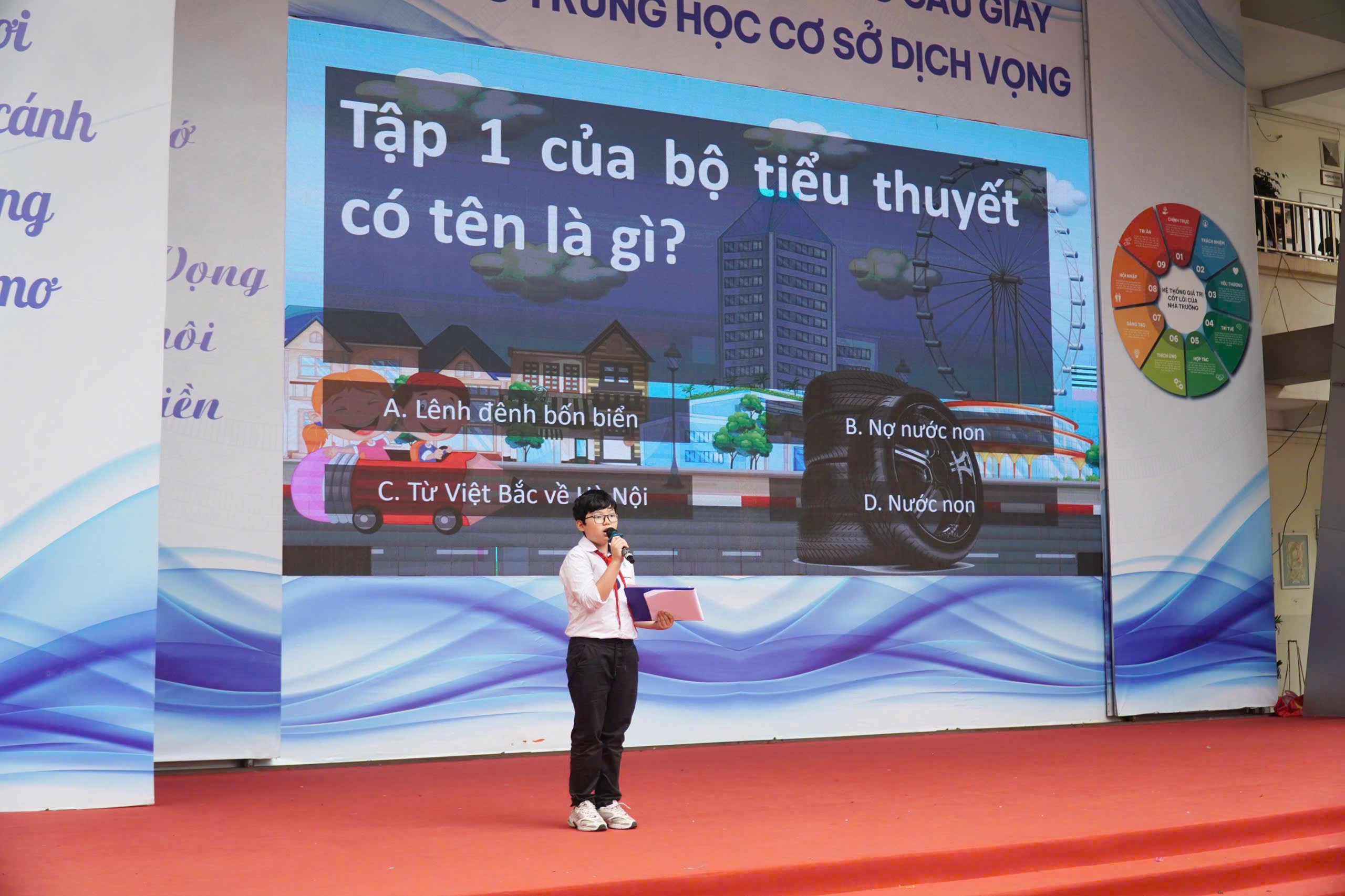 Ngay sau đó, trò chơi "Hành trình vạn dặm" đã thu hút sự tham gia hào hứng của đông đảo học sinh. Những câu hỏi lắt léo về nội dung cuốn sách không làm khó được các bạn học sinh trường Dịch Vọng, tạo nên một không gian giao lưu tri thức đầy sôi nổi.