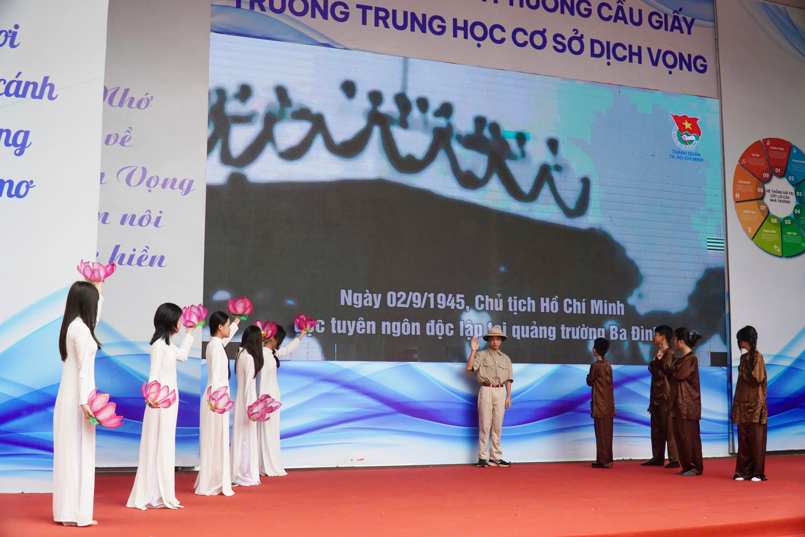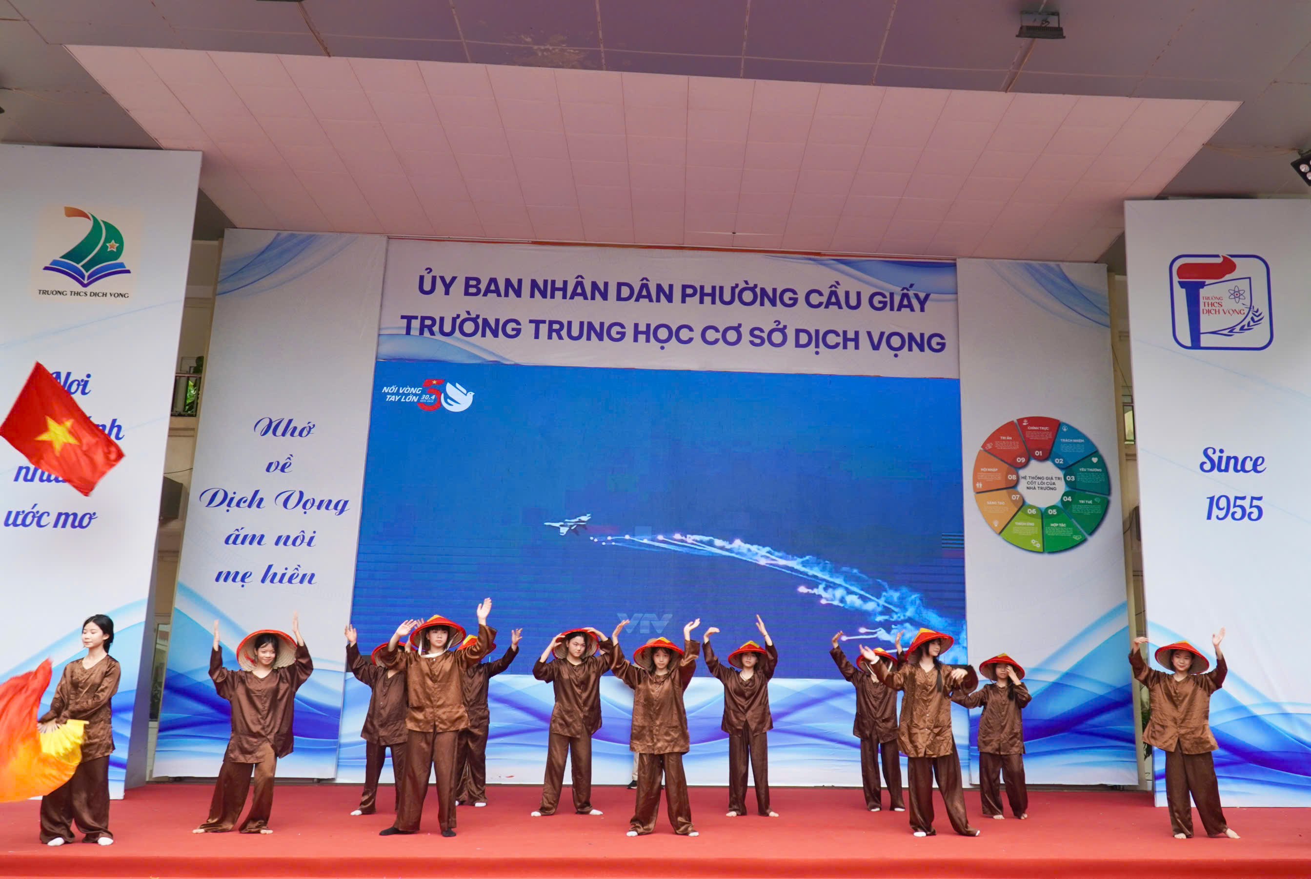🩵 Mở đầu chương trình, không khí sân trường được khuấy động bởi những giai điệu tự hào và những bước nhảy sôi động đến từ hai tiết mục văn nghệ đặc sắc của tập thể lớp 8A3 và 8A12. Những tiết mục không chỉ mang đến niềm vui mà còn khơi gợi lòng yêu nước, niềm tự hào dân tộc trong lòng mỗi học sinh.