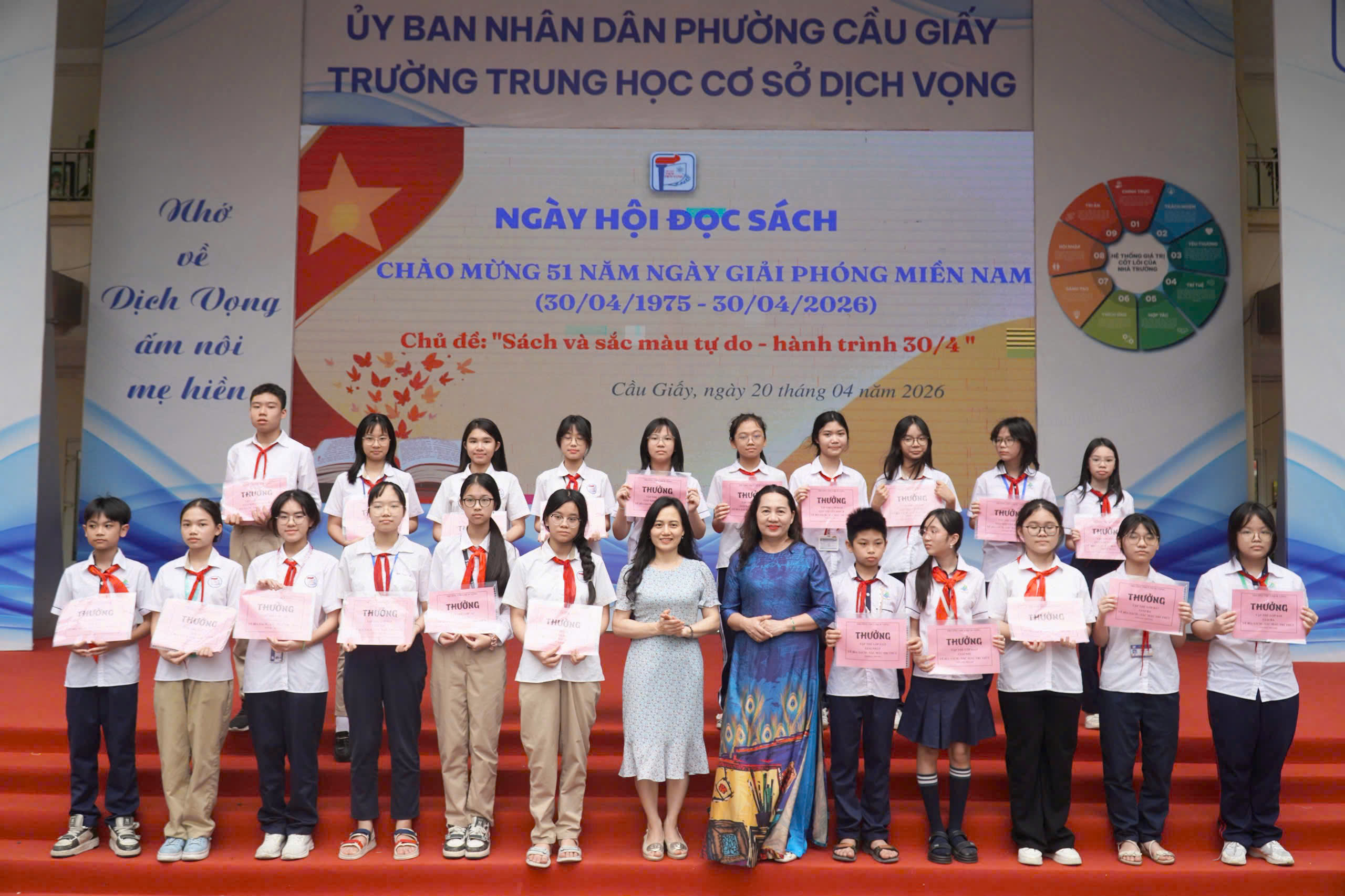 🩵 Trong không khí hào hùng của những ngày tháng Tư lịch sử, hướng tới kỷ niệm 51 năm Ngày Giải phóng miền Nam, thống nhất đất nước (30/4/1975 - 30/4/2026), trường THCS Dịch Vọng đã long trọng tổ chức Ngày hội đọc sách năm học 2025 - 2026 với chủ đề đầy ý nghĩa: "Sách và sắc màu tự do – Hành trình 30/4".
