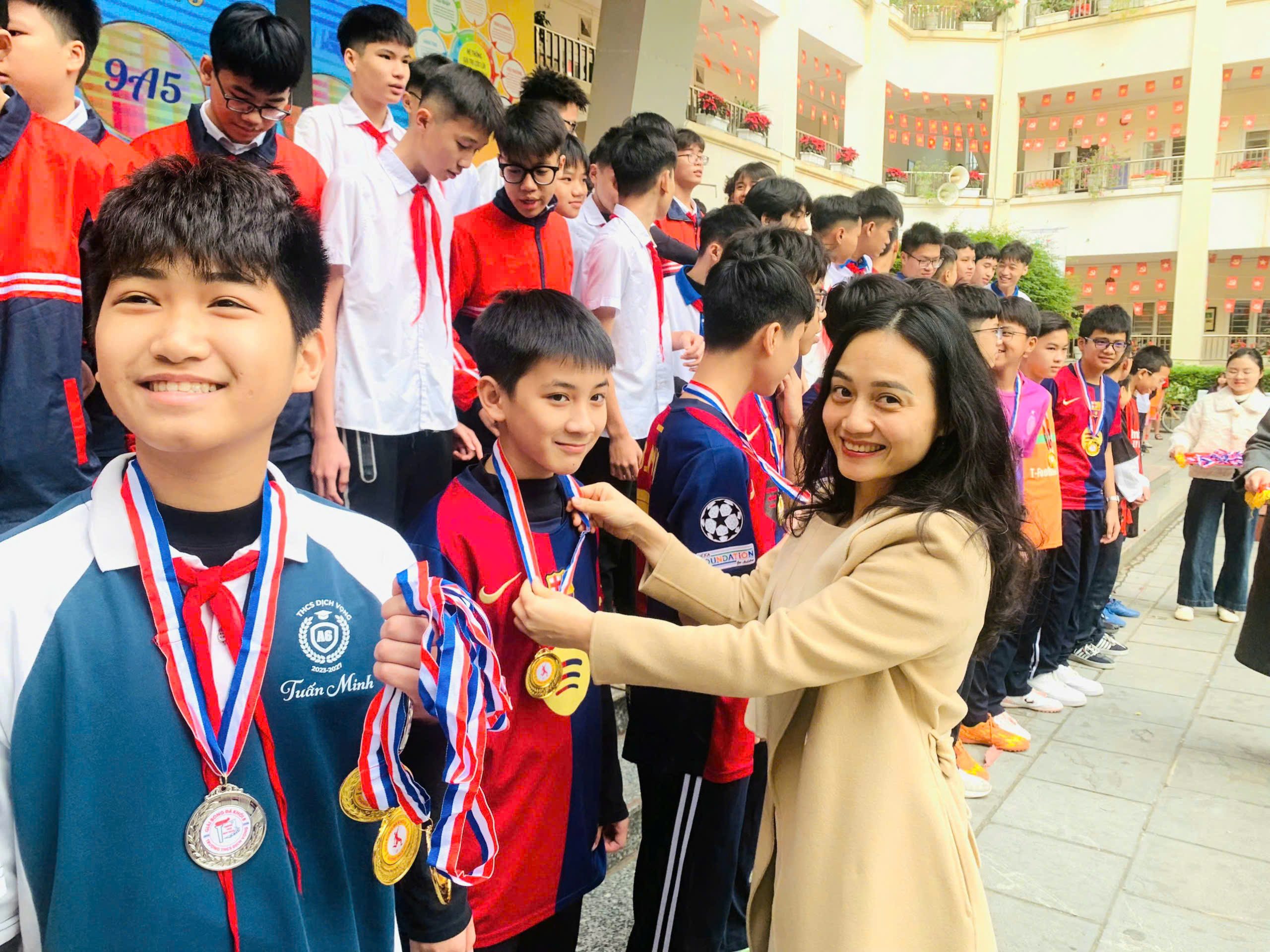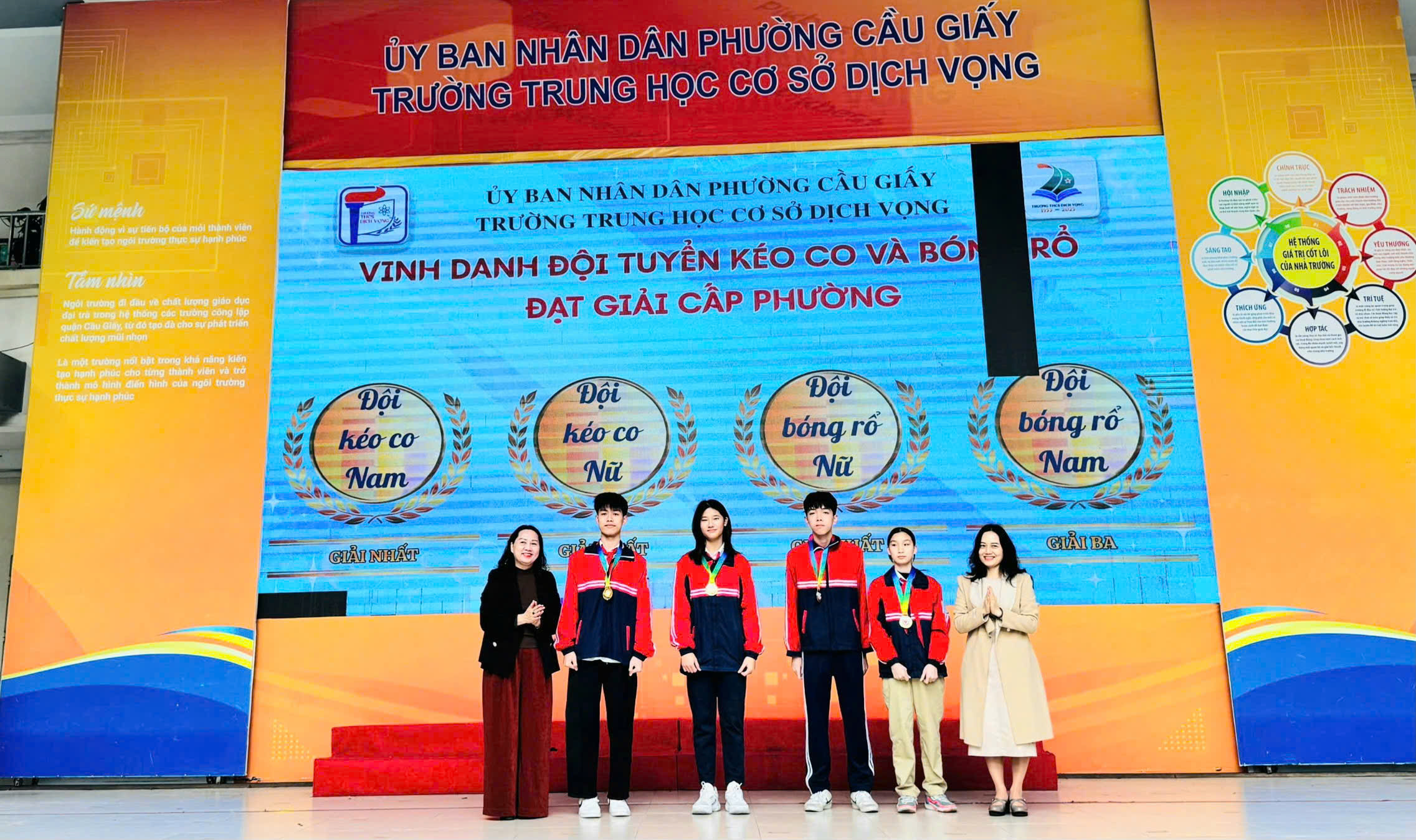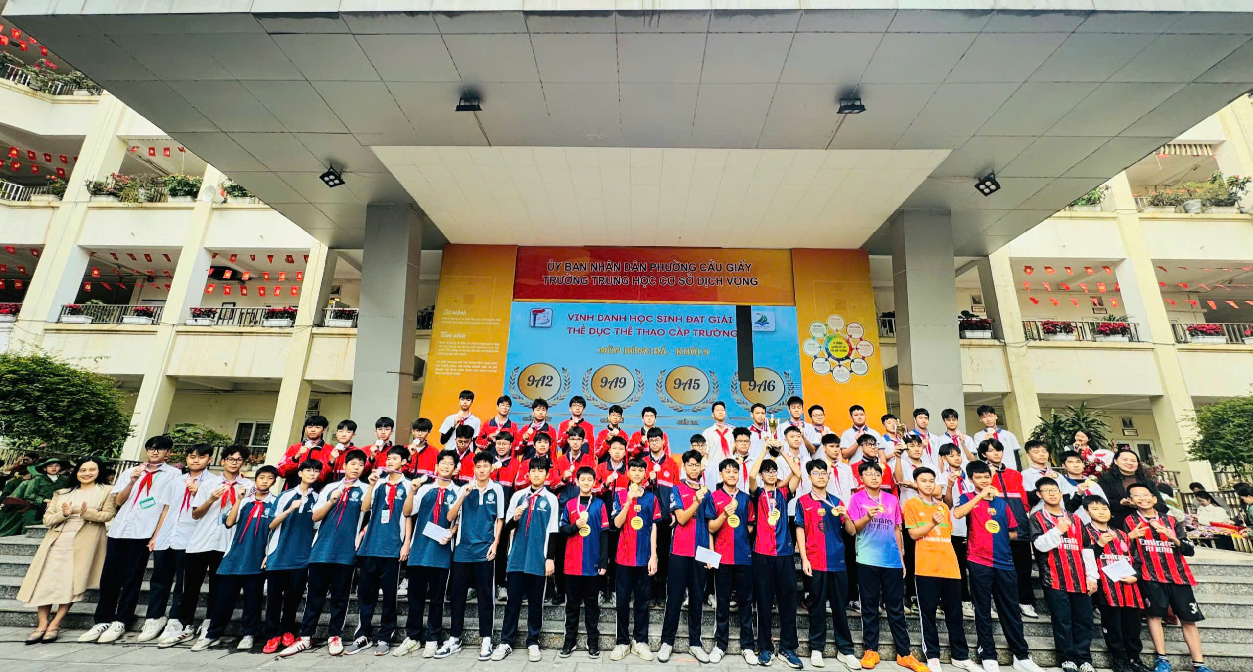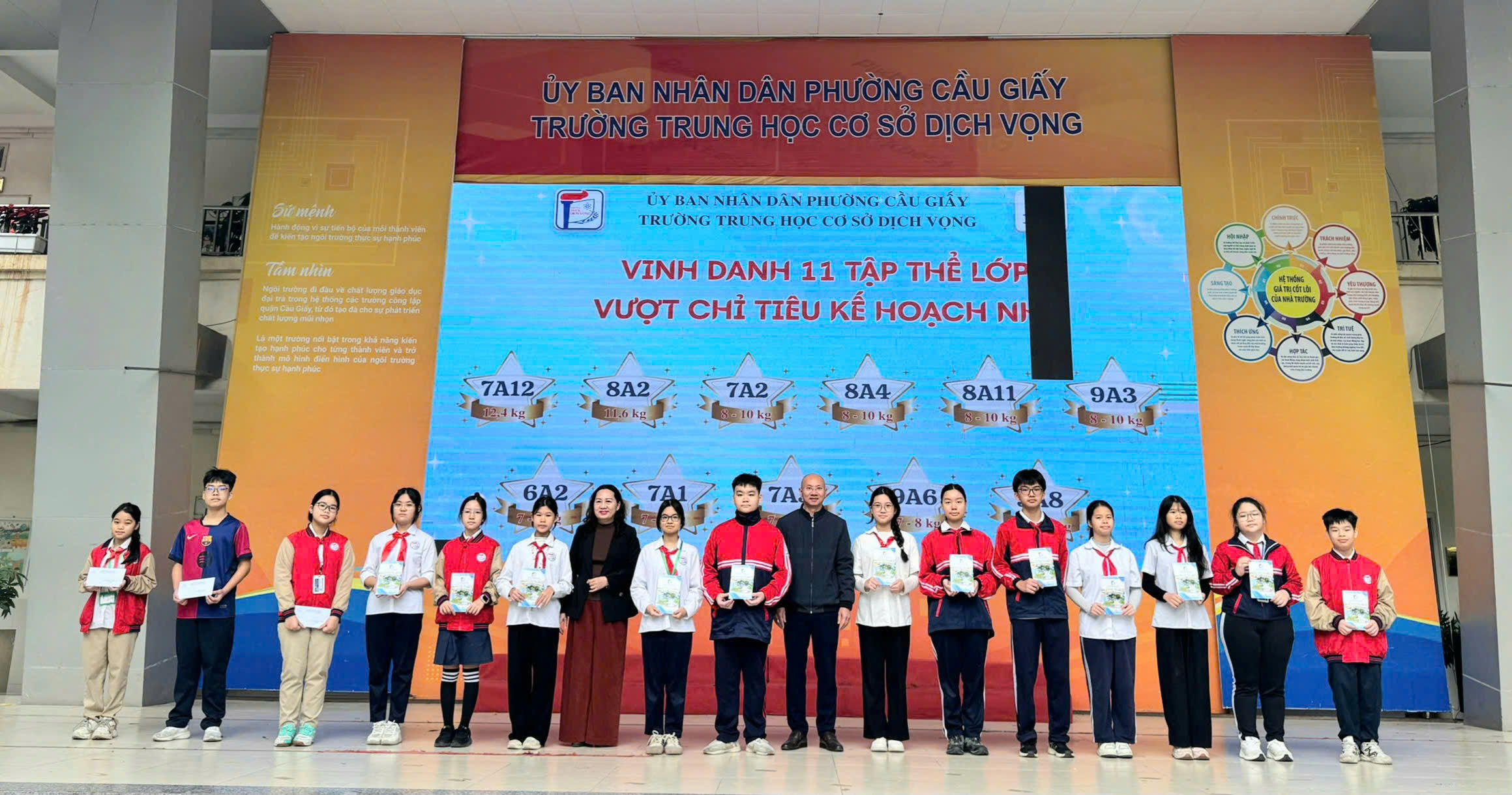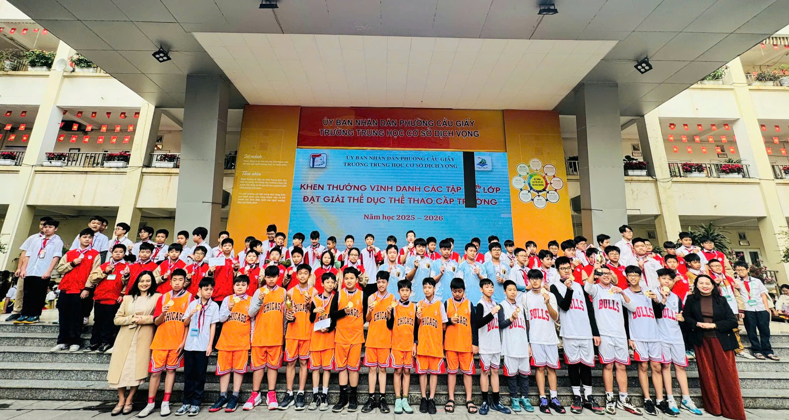 📅 Ngày 15/12/2025, Trường THCS Dịch Vọng đã long trọng tổ chức Lễ khen thưởng vinh danh tập thể lớp, học sinh có thành tích trong thi đua đợt 2 năm học 2025 – 2026 nhằm biểu dương, tôn vinh các tập thể và cá nhân học sinh đạt thành tích xuất sắc trong các lĩnh vực văn hóa, thể dục thể thao, nghệ thuật và hoạt động phong trào. Đây là hoạt động ý nghĩa, góp phần động viên, khích lệ tinh thần học tập, rèn luyện của học sinh, đồng thời khẳng định hiệu quả của công tác giáo dục toàn diện trong năm học 2025 – 2026.
