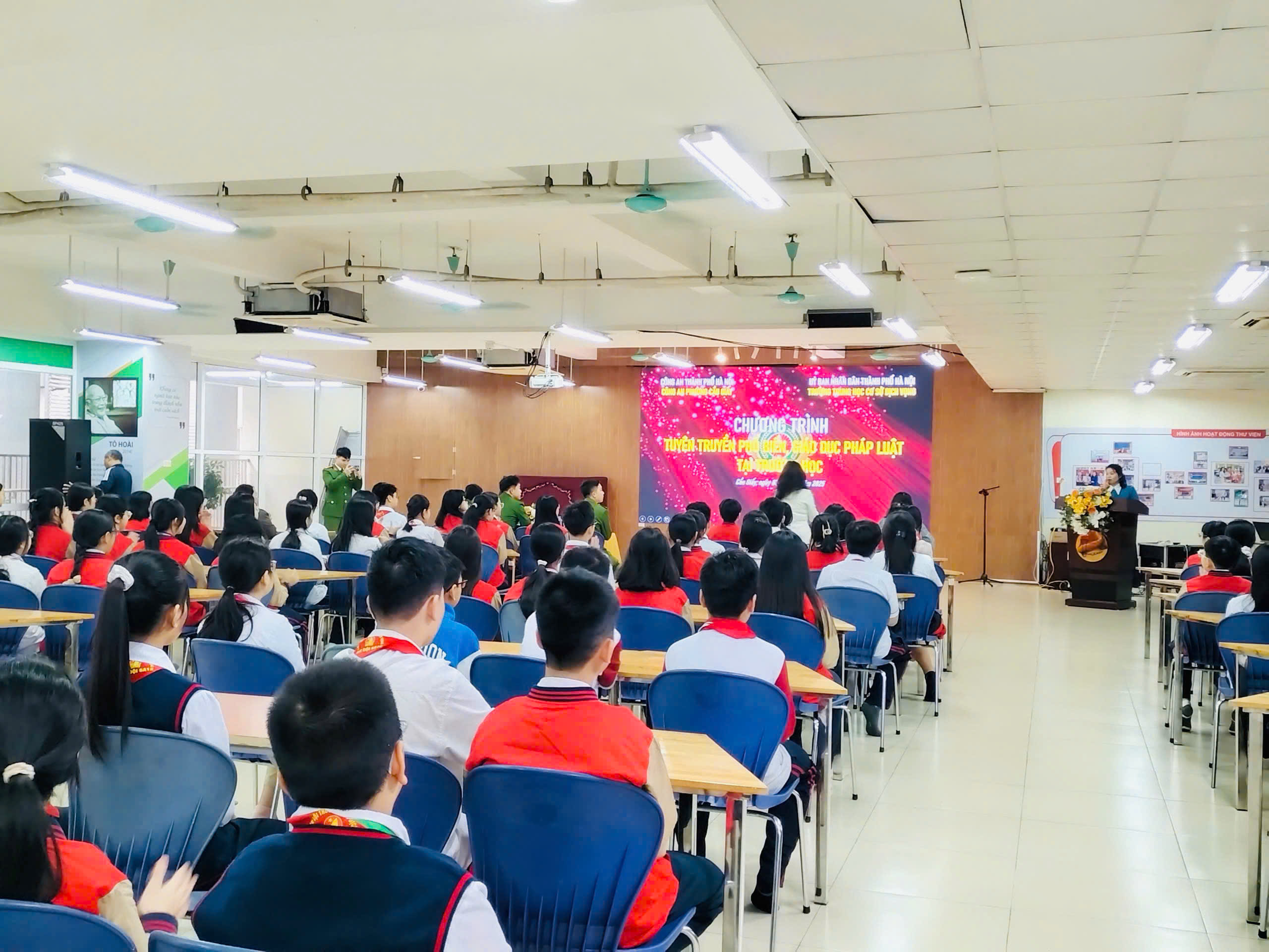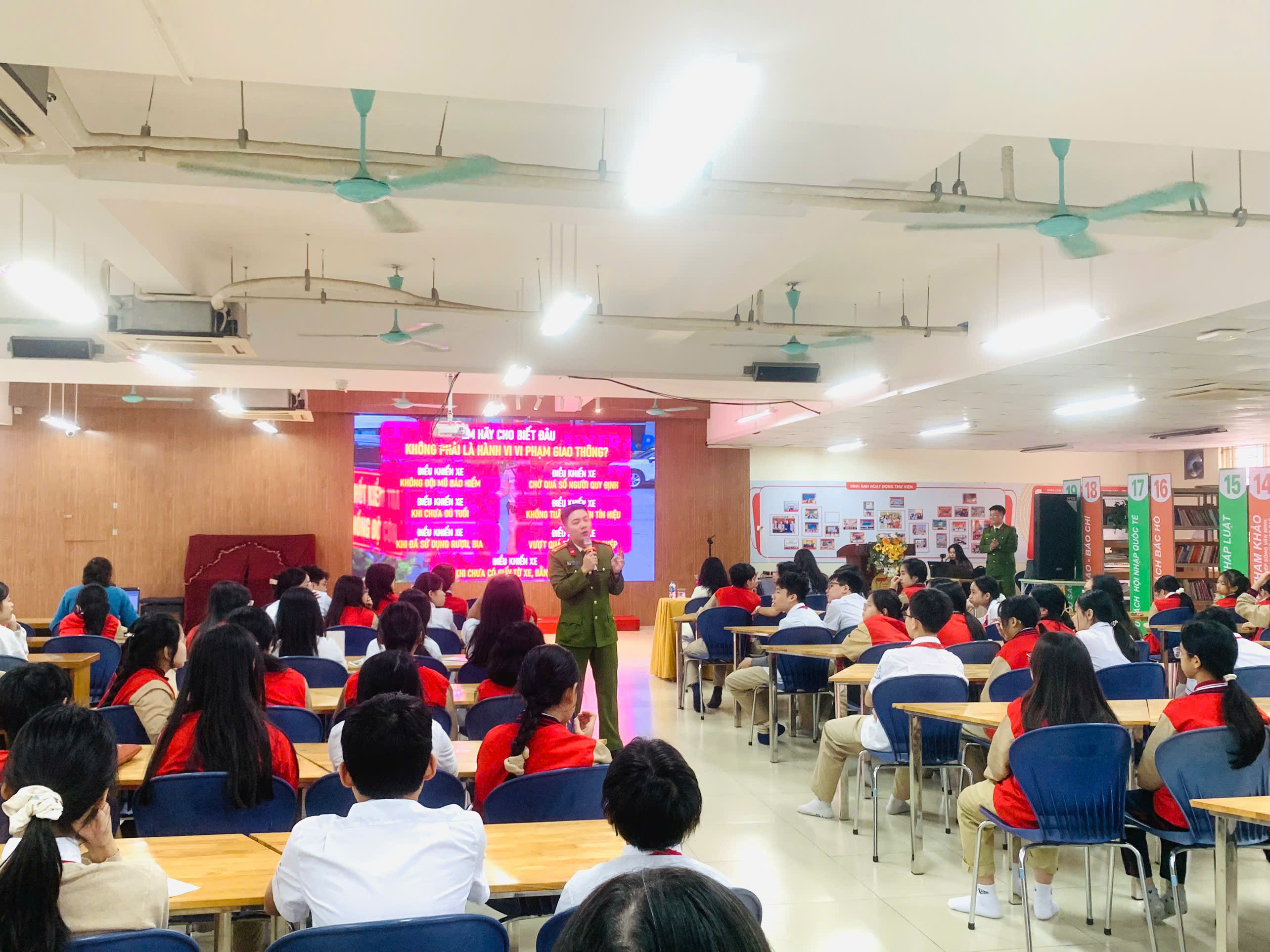 Tại buổi tuyên truyền, cán bộ giáo viên và các em học sinh đã được nghe đồng chí Trung uý Nguyễn Thành Đạt thông tin về tình hình trật tự an toàn giao thông trên địa bàn thành phố Hà Nội, chỉ ra những lỗi vi phạm phổ biến của học sinh hiện nay, phổ biến những nội dung cơ bản của Luật Giao thông đường bộ, các quy tắc bắt buộc khi tham gia giao thông như: quy định về độ tuổi điều khiển xe mô tô, việc đội mũ bảo hiểm đạt chuẩn khi ngồi trên xe mô tô, xe máy, xe đạp điện và ứng xử văn hóa khi tham gia giao thông.