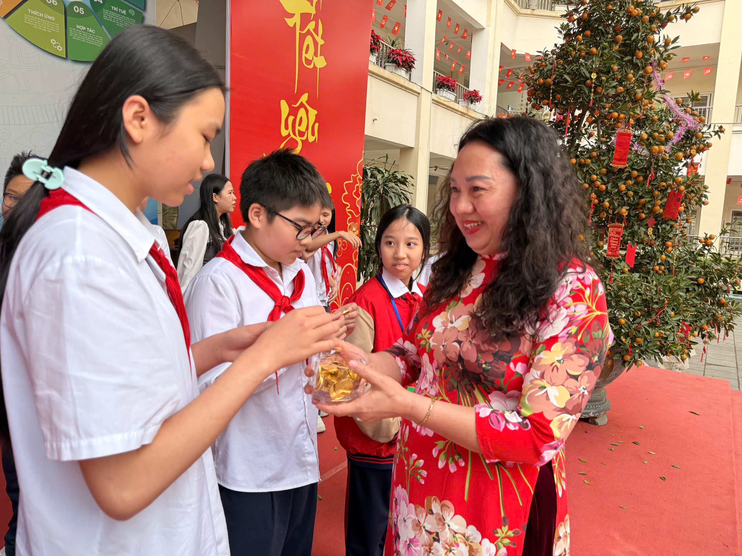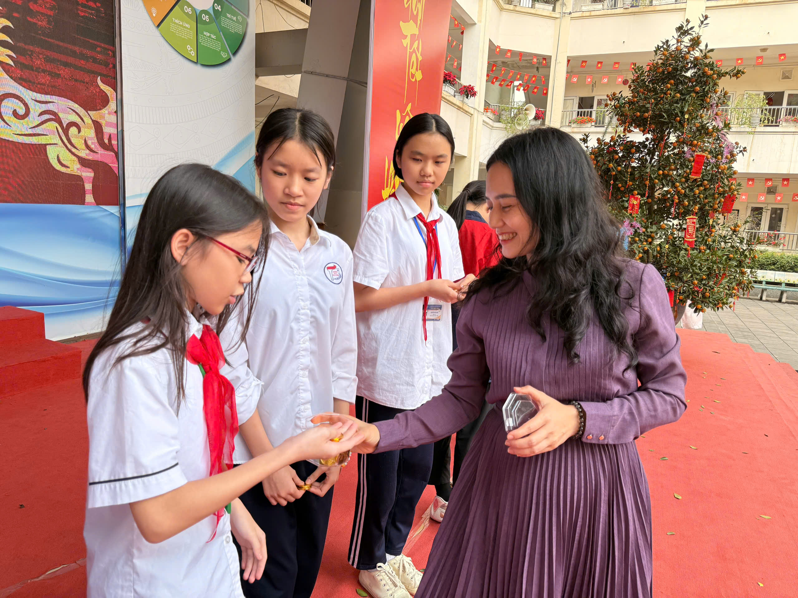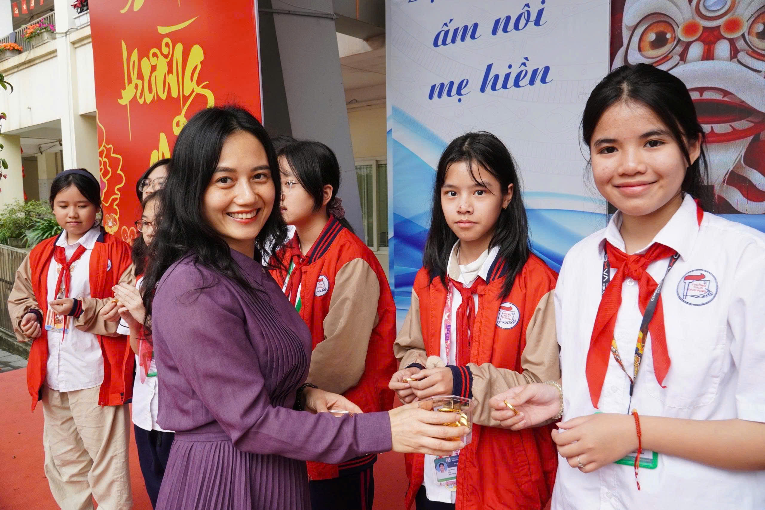 🌟 Buổi chiều, học sinh khối 6, 7, 8 hào hứng nhận lì xì trong không khí vui tươi, sôi động, tràn đầy tiếng cười.