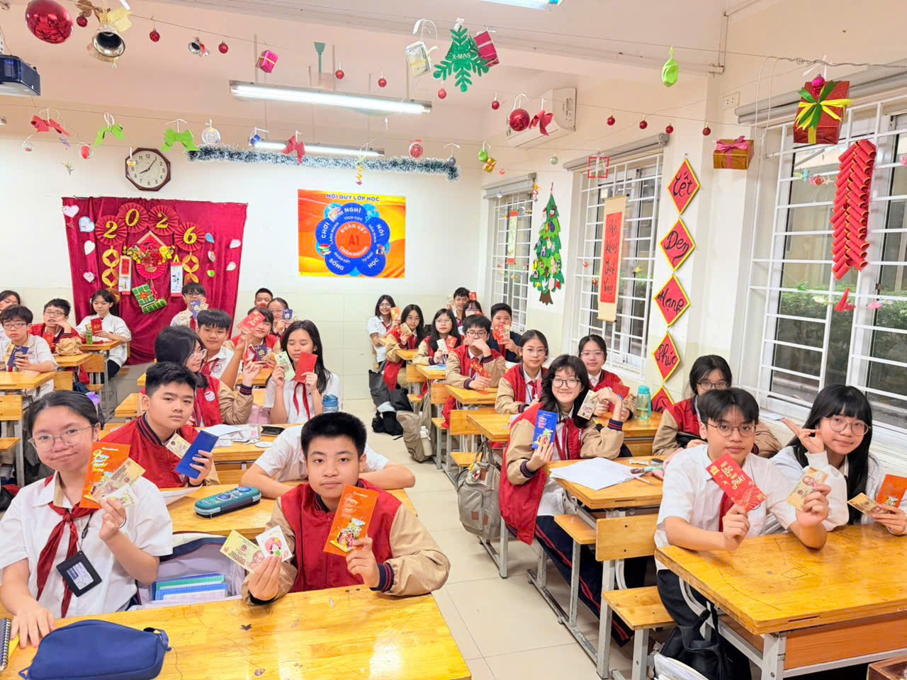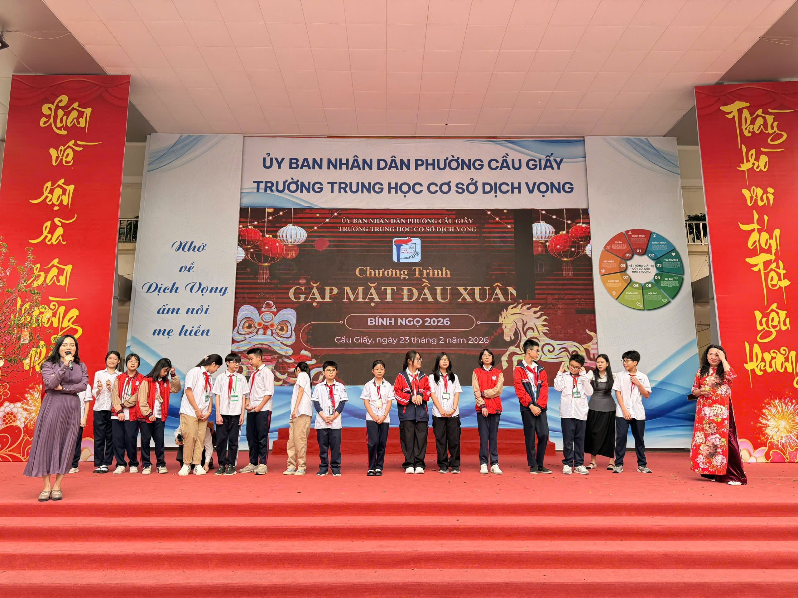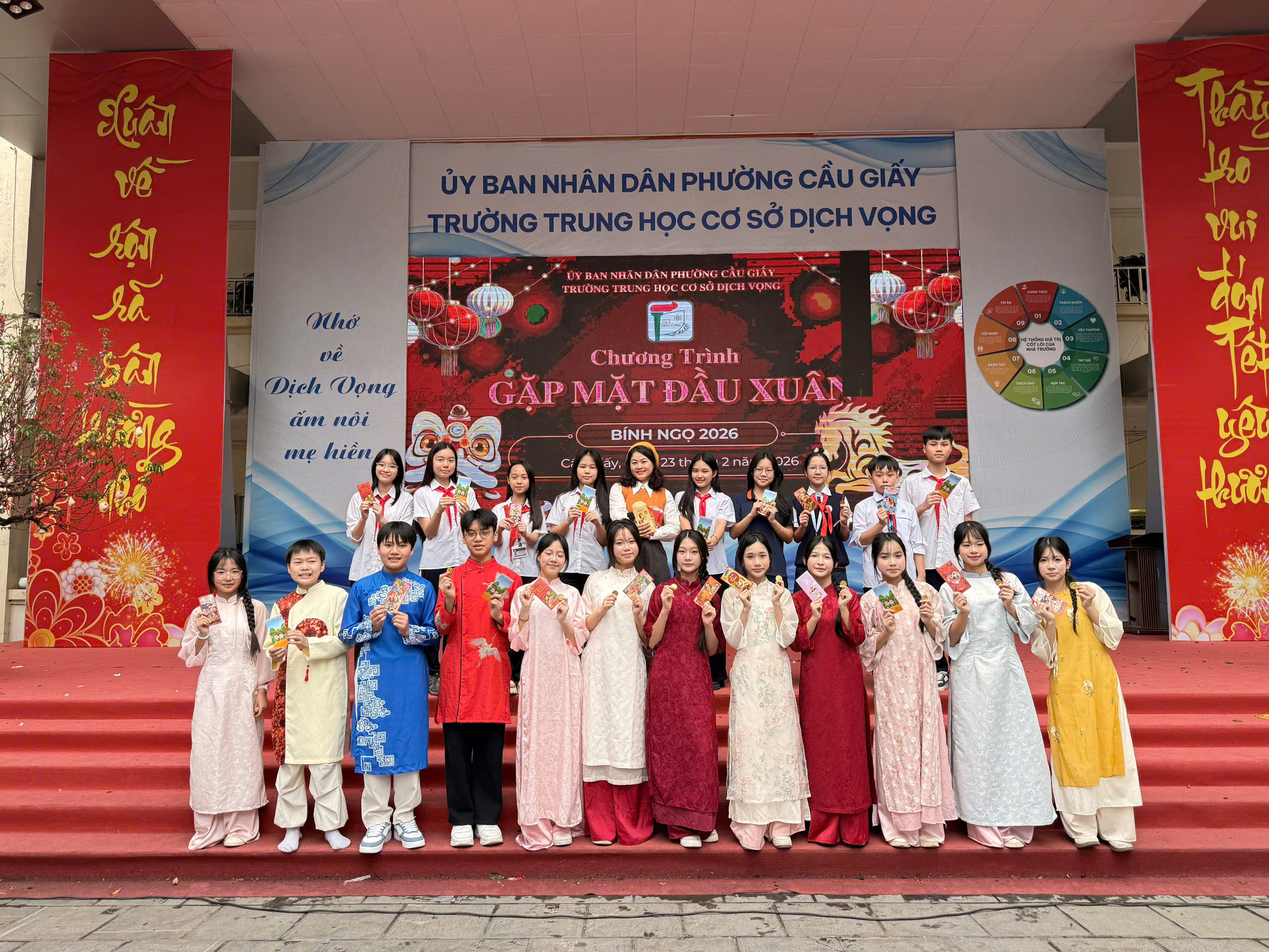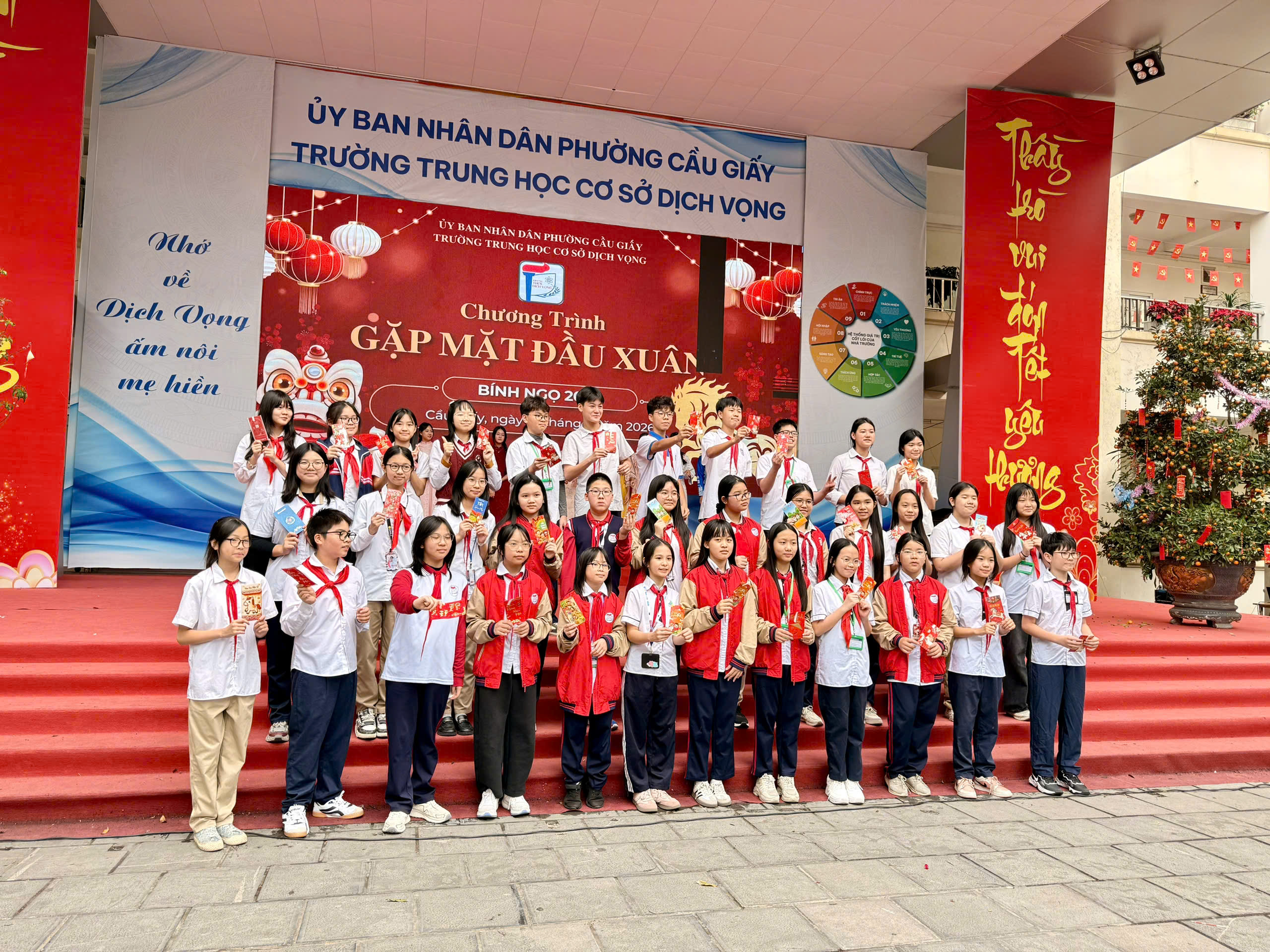 Một khởi đầu rộn ràng với những phong bao đỏ thắm, những lời chúc tốt đẹp và tinh thần sẵn sàng bứt phá cho năm 2026 của thầy và trò THCS Dịch Vọng.